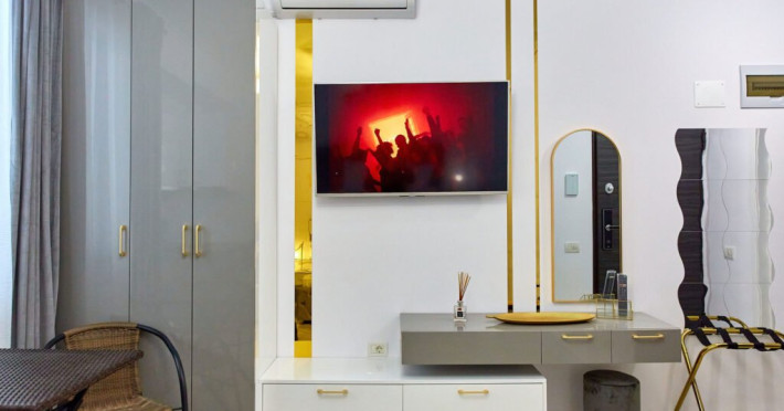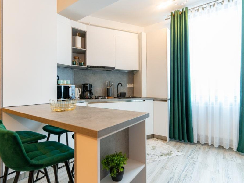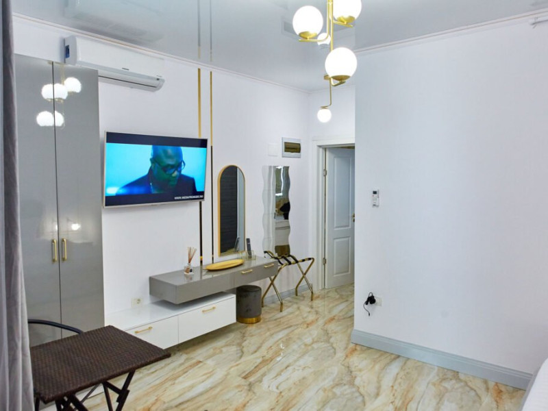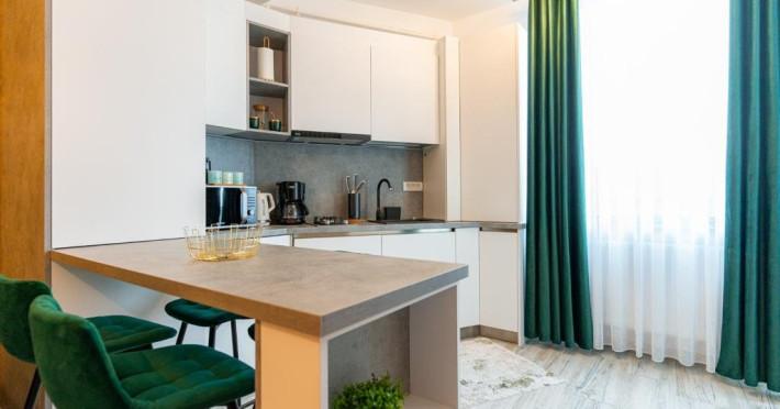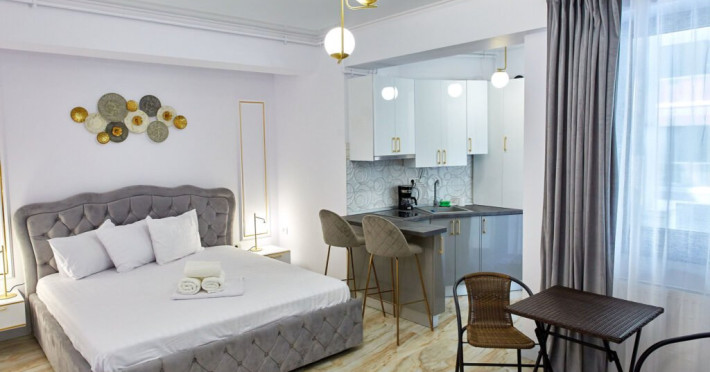 Capacitatea maxima de cazare in apartamente este de 4 adulti si un copil intre 0-9.99 ani, iar in studio este de 3 adulti.