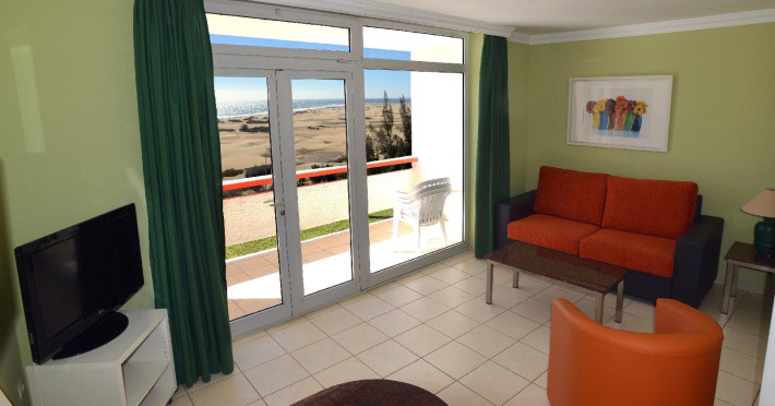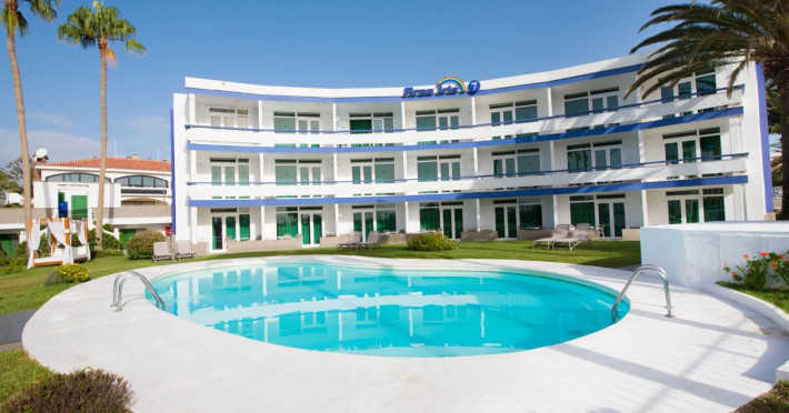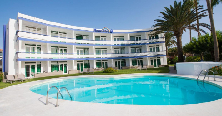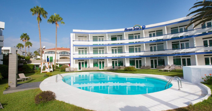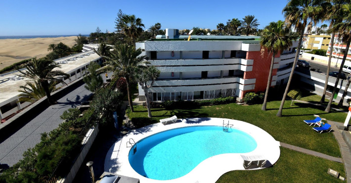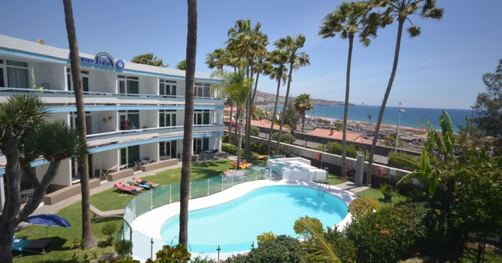 This friendly family- oriented apart-hotel enjoys an enviable seafront location at Playa del Ingles, one of the best beaches on Gran Canaria. Guests can enjoy unsurpassable views over the dunes and out to sea. The beach itself offers a wide range of water sports and is also a perfect place for sunbathing for those looking for something more sedate. The apartments are perfectly situated in a quiet location, close to public transport and within easy reach of the numerous attractions of this fun-packed family resort. The famed commercial area of Playa Ingles is just a short walk away as is the well-known Jumbo entertainment complex. The comfortable, well-appointed self-catering apartments feature all essential amenities including free Wi-Fi and a terrace or balcony with sea or pool views. Families with children will enjoy the two outdoor swimming pools and the lush semi-tropical gardens.