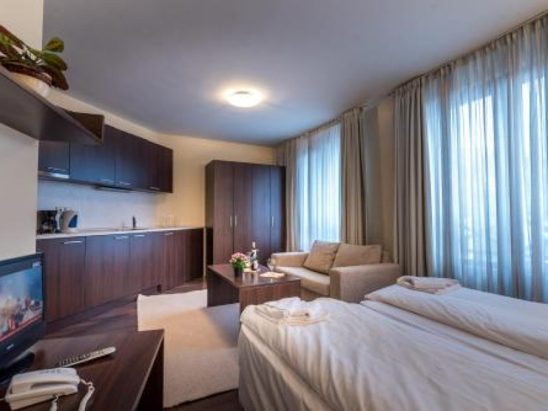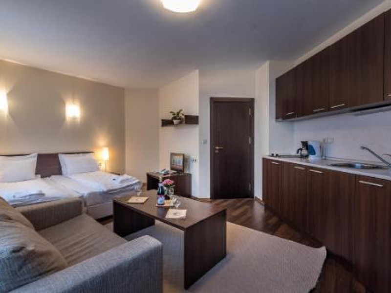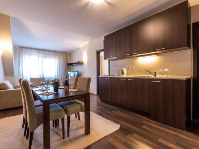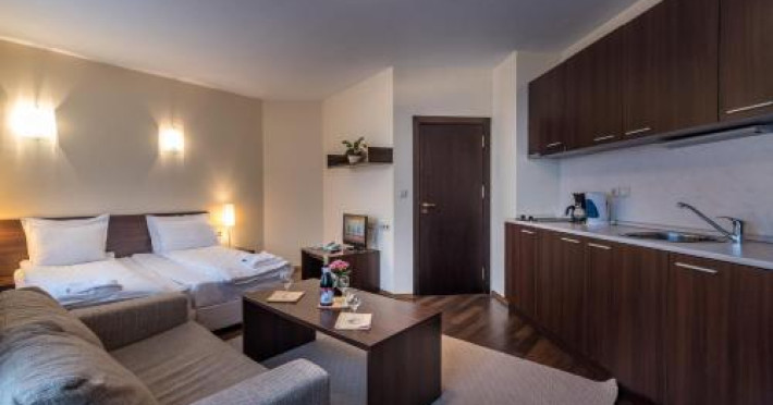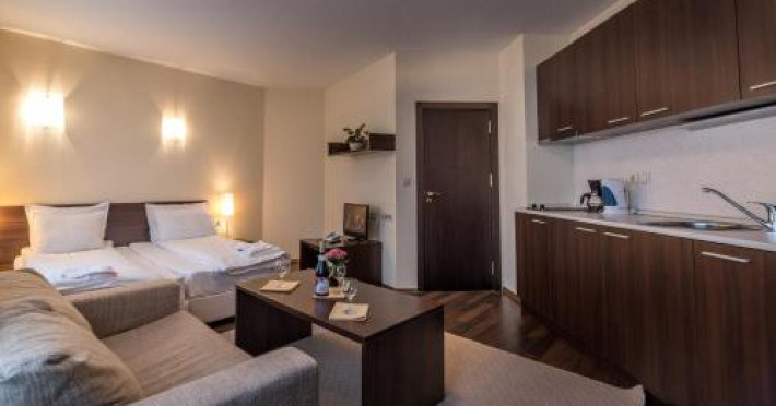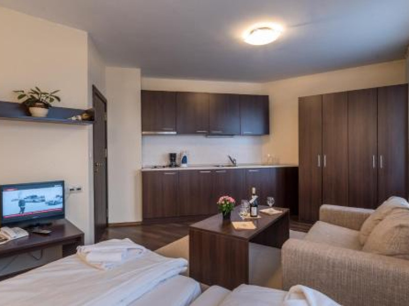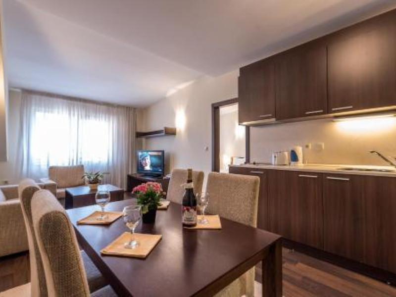 The Aparthotel Aspen is located about a 2-minute walk from the main ski elevator in Bansko. It offers elegant apartments with mountain views and free access to its spa facilities. The cozy restaurant serves skillfully prepared local and international dishes. Aparthotel Aspen features a modernly appointed spa center with a sauna, steam bath and a massage room. The indoor pool is available SEASONAL and it is closed in the period otcober and november 2023y.WiFi is available in all areas and is free of charge. Public parking is available at a location nearby (reservation is not possible) and charges may apply. Pets are not allowed. Children of all ages are allowed.Children 4 and under stay for free when using an existing bed.People 12 and up stay for € 59 per person, per night when using an available extra bed.You haven't added any cribs.Any type of extra bed or crib is upon request and needs to be confirmed by management.Additional fees are not calculated automatically in the total cost and will have to be paid for separately during your stay. Checkin Time: 15:00 Checkin End Time: 22:00 Checkout From: 07:00 Checkout End Time: 11:00