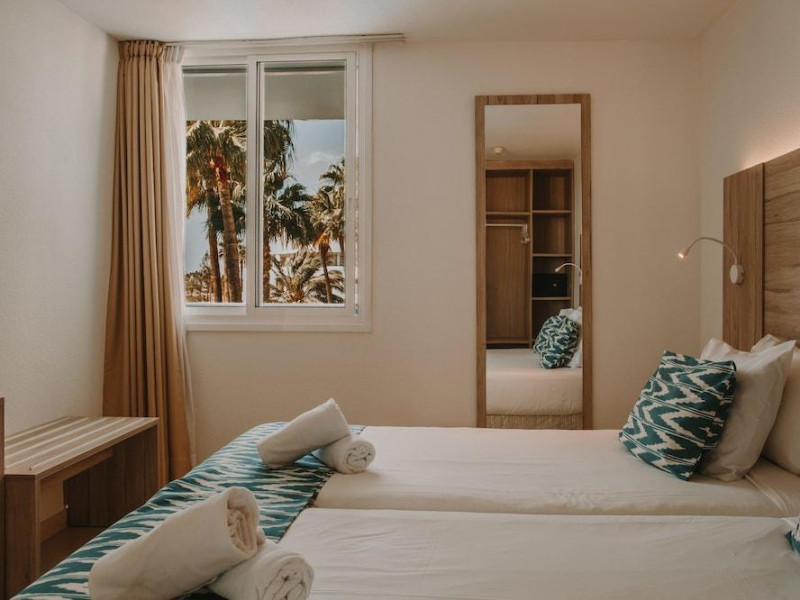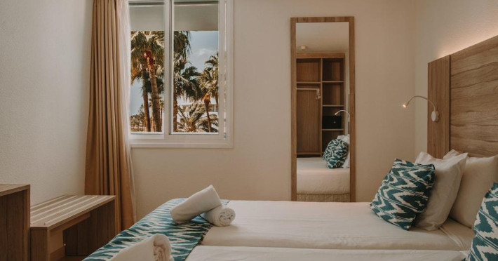 Located in the heart of the popular resort of Playa del Inglés, this hotel is just 1. 5 km walk from the beach. Its guests will enjoy direct access to the Yumbo shopping centre, which offers a range of restaurants, bars and nightlife options, perfect for anyone who is looking towards an exciting vacation in Gran Canaria. The famous sand dunes are just a 500 m drive away and reaching the airport will take another 2 km, but guests will be well-served by the public transport that stops in the immediate vicinity. The complex itself boasts a set of modern apartments opening to balconies overlooking either the pool or the well-maintained gardens. Guests can relax by the side of the outdoor pool and those looking for little extra pampering can treat themselves to a massage or an aqua gym session.It has a large swimming pool and a jacuzzi in the middle of the main garden surrounded by big palm trees, in an exotic and tropical atmosphere, pool-bar and restaurants. On the top floor of the hotel is a nudist Solarium, ideal for experiencing a complete sense of freedom. There is free WIFI throughout the complex.
