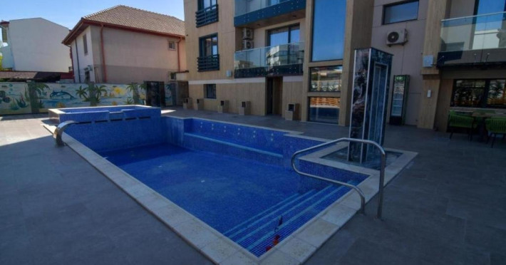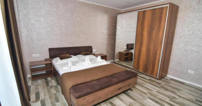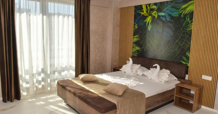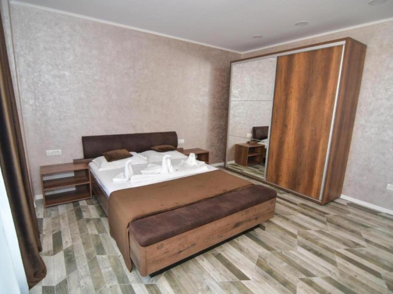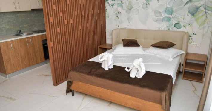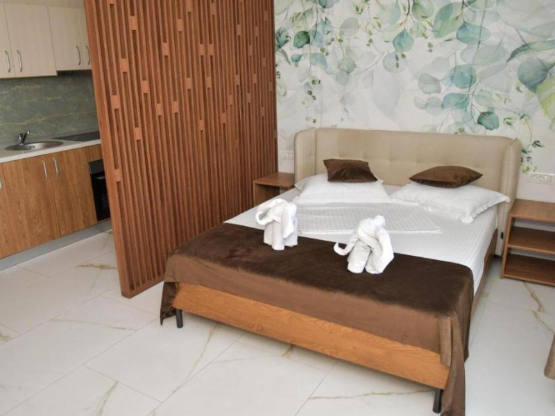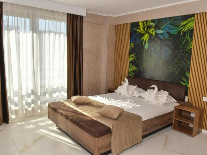 Dotari camere Studio deluxe are in dotare pat matrimonial,TV, aer conditionat, baie cu dus/cada, articole de toaleta gratuite, uscator de par, bucataria complet utilata ce include plita, frigider, cuptor si balcon mobilat cu vedere la piscina. Suprafata 42 mp. Se pot caza 2 adulti si un copil. Studio dublu Deluxe are in dotare pat matrimonial si o canapea extensibila, TV, aer conditionat, baie cu dus/cada, articole de toaleta gratuite, uscator de par, bucataria complet utilata ce include plita, frigider, cuptor si balcon mobilat cu vedere la piscin. Suprafata 42 mp. Se pot caza 2 adulti si 2 copii, sau 3 adulti. Apartament Deluxe este compus din living cu canapea extensibila si un dormitor cu pat matrimonial, baie cu dus tip walk-in, articole de toaleta gratuite, uscator de par, bucataria complet utilata ce include plita, frigider, cuptor , masina de spalat, aparat de ceai si cafea, balcon mobilat cu vedere la piscin. Suprafata 102 mp. Se pot caza 4 adulti.