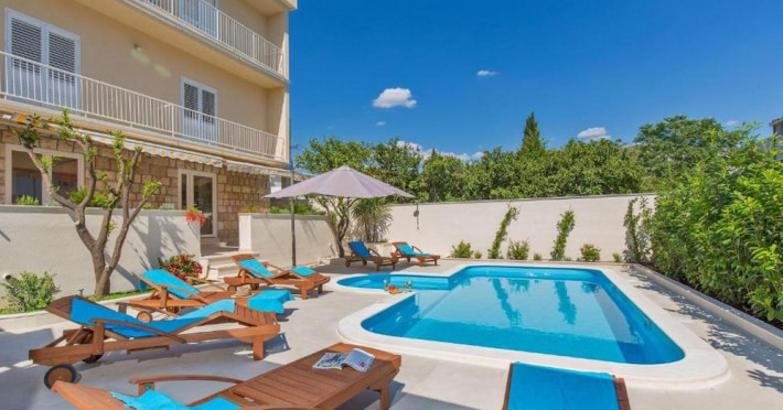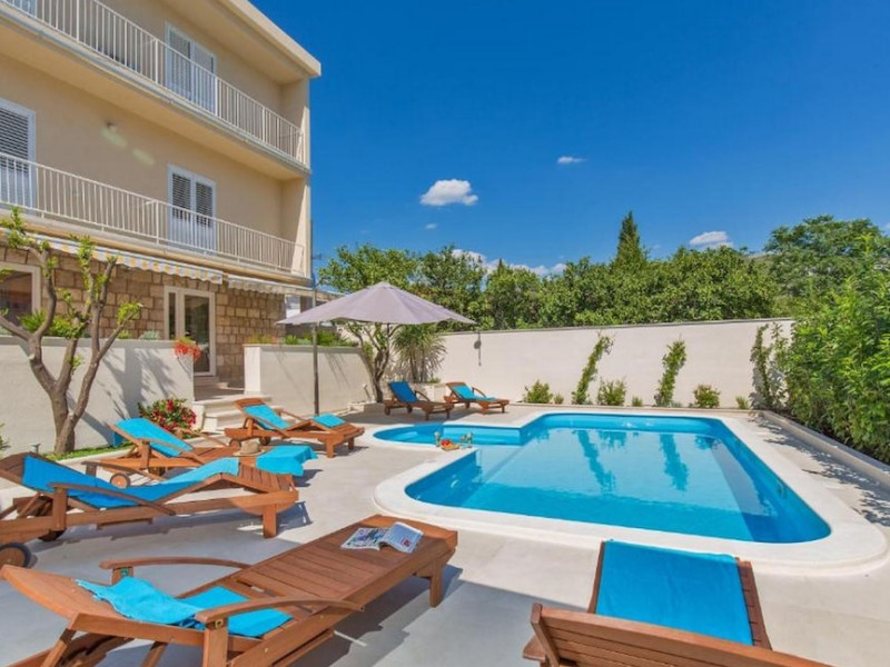 Hotel characteristics: ; 6 rooms Location: A perfect fit for a big group of travellers: apartment «Apartments St Thomas» is located in Dubrovnik. This apartment is located minutes away from the city center. You can take a walk and explore the neighbourhood area of the apartment. Places nearby: Mandrac Beach, Ponat Beach and Lapad Beach At the apartment: Free Wi-Fi is available on the territory. Ask for more information when checking in. If you travel by car, you can park in a parking zone. Tourists who canât live without swimming will appreciate a pool and an outdoor pool. For the free movement around the city, the apartment offers a transfer for you; Additional services that the apartment offers to its guests: a laundry and ironing. The staff of the apartment will be happy to talk to you in English