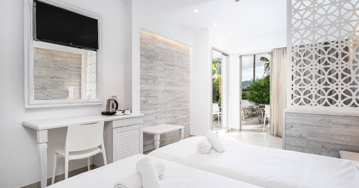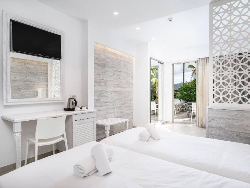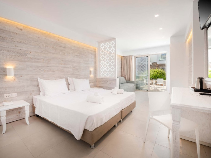 Dotari camera: Hotelul pune la dispozitie 8 tipuri diferite de camere si suite, concepute pentru a gazdui intre 2 si 4 persoane. Toate unitatile de cazare sunt dotate cu aer conditionat, Wi-Fi gratuit, televizor, seif si balcon sau terasa cu vedere spre piscina sau gradina. Baia privata este echipata cu dus sau cada, uscator de par si articole de toaleta, asigurand confortul necesar unui sejur placut.