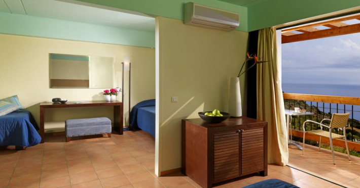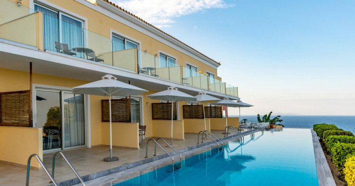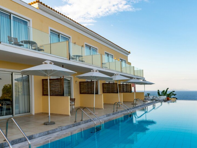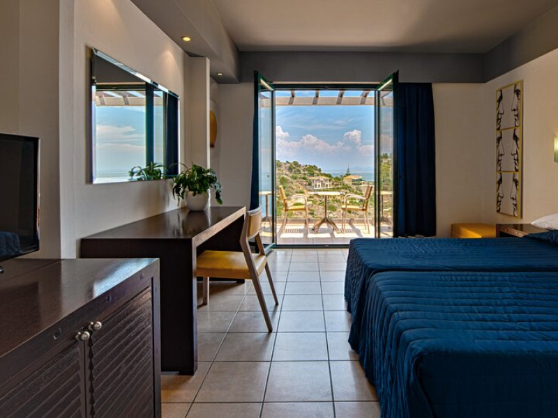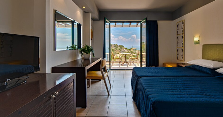 The hotel, which is situated on the South-East coast of the island of Kefalonia, is set on a hillside which slopes gently to the sea, offering breathtaking panoramic views. The resort is within short distance of all the attractions and points of interest. It is situated just 4 km away from the charming resort of Skala, where long sandy beaches can be found, and only 7 km away from the picturesque village of Poros. A complimentary shuttle bus service to both places is offered.