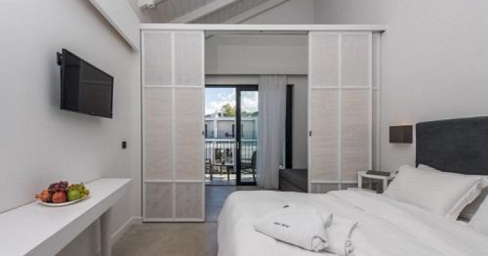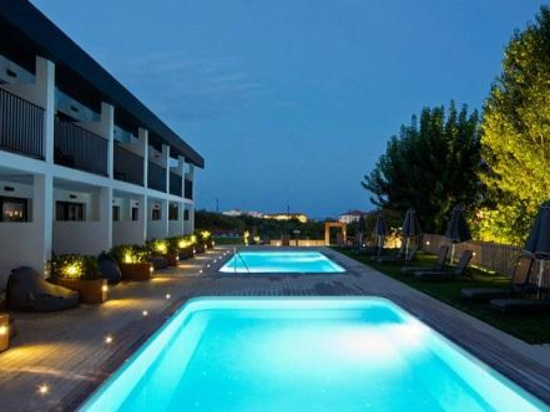The hotel Aqua Bay Hotel is located in the vicinity of a beach. The nearest town is Zakynthos. Amenities: The 2-storey resort has 144 rooms, and spread over one main building and 3 adjoining buildings. It is equipped with a 24h reception, a lobby with bar, 7 lifts as well as a parking area (for free). For the meals, there are three restaurants (air-conditioned) and a snack bar. You will be warmly welcomed in both the hotel’s bars. WiFi is available for free. Room cleaning is free of charge. Room service, laundry / ironing service and medical service are available for a fee. Pool: In the outdoor area of the hotel you will find 9 fresh water pools with a children´s pool. Here, there are sun loungers and sun umbrellas for free available. A bar at the pool offers guests refreshing beverages. Meals: Breakfast (from 08:00 - 10:00) from the buffet. All inclusive: breakfast, lunch and dinner. Sport and Leisure: Sports and entertainment: Billiards (where applicable, for a fee), darts (where applicable, for a fee), table tennis (where applicable, for a fee) and fitness. Sun terrace and massages available (where applicable for a fee). Entertainment for adults: evening shows and live music. For the entertainment of young guests there is a children´s play area. Child supervision: activity programme for children (from 5 - 12 years). Additional information: Additional fees may apply for certain facilities, amenities or activities. Some services depend on the local climatic conditions and the season. Languages spoken: English. Accepted methods of payment: American Express. Some services and facilities might be closed or offered with restrictions due to COVID19 Prevention measurement. Changes can be applied without previous notice. Standard FamilyRoom: With extra bed, baby cot (for a fee), balcony or terrace, internet (where applicable, for a fee), safe (where applicable, for a fee) and sat TV as well as centrally controlled air conditioning. Standard Room: With extra bed, baby cot (for a fee), balcony or terrace, internet (where applicable, for a fee), safe (where applicable, for a fee) and sat TV as well as centrally controlled air conditioning.