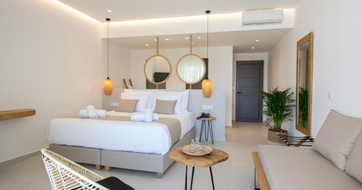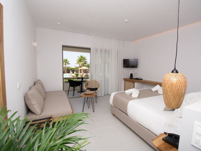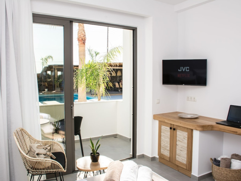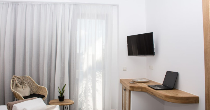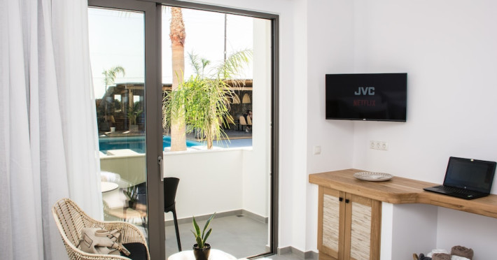 The facilities and services include WiFi in public areas, internet access, safe box in reception, free car parking, bar and swimming pool.The room amenities include air conditioning, free Wi-Fi, internet access, safe box, TV, balcony/terrace, fridge, mini bar, coffee/tea maker, hairdryer and telephone.The cleaning, change of linen and towels is 3 times per week.Please note that some of the above facilities may be closed due to weather / seasonal conditionsAddress: Annisaras, 70014, Chersonissos, Greece.