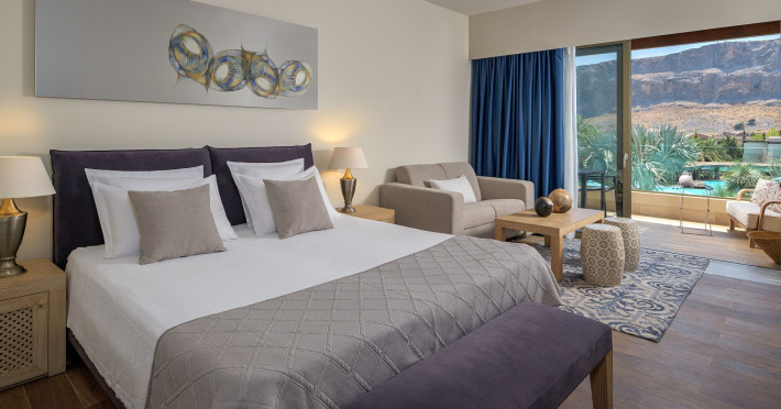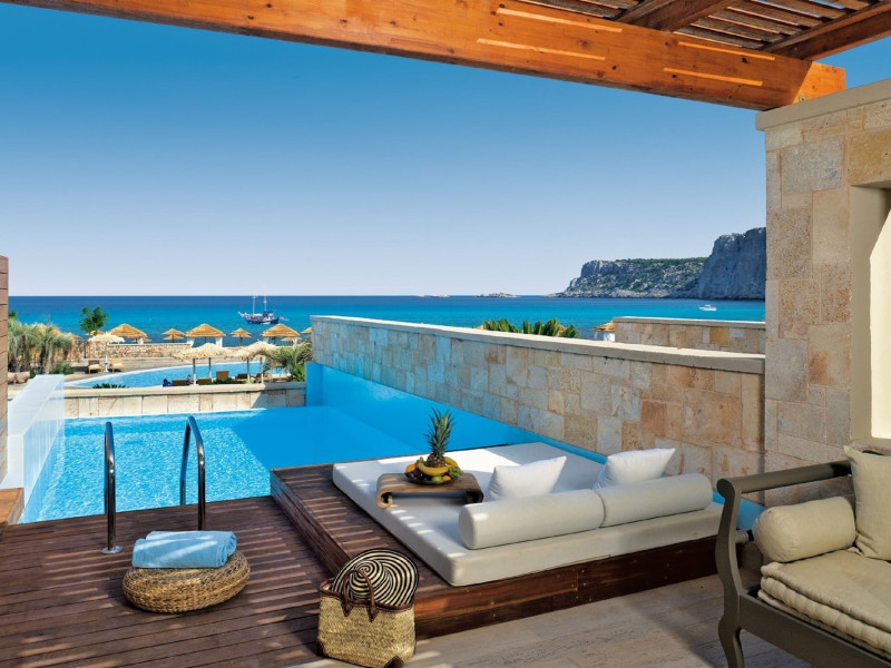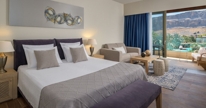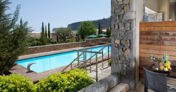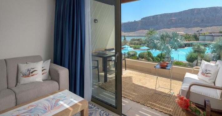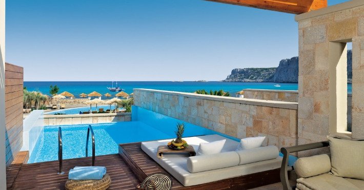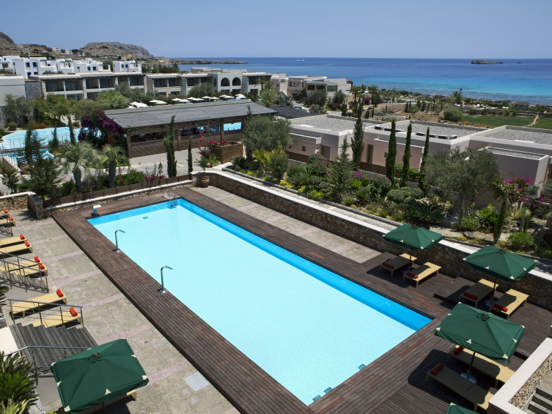 Located on the beachfront, 1.5 km from Lindos, the adults-only Aquagrand Exclusive Deluxe Resort offers Aegean Sea views. It features a private beach, 3 swimming pools, and a wellness centre. The resort offers 136 guestrooms with private balconies. Dining options include 3 restaurants, 3 bars/lounges, a beach bar, a poolside bar, and 2 coffee shops/cafes. A complimentary buffet breakfast is provided, and 24-hour room service is available. The Aquasenses Spa offers a range of treatments, including massages and facials, and includes 3 massage rooms, 2 saunas and a hot tub. Complimentary wireless internet access and free self-parking are available. Additional amenities include concierge services, gift shops/newsstands, a computer station, and a 24-hour front desk. The resort is closed between November 1 and April 30. Diagoras Airport (RHO) is approximately 50 km away. The Aquagrand Exclusive Deluxe Resort - Adults Only is a Tourist hotel. The nightlife/restaurants are easily accessible by taxi or bus from the hotel.