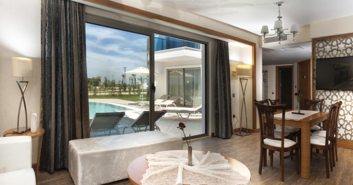 Aquasis De Luxe Resort & SPA - Ultra All Inclusive se află în staţiunea Didim, la 5 km de staţiunea Altinkum, şi oferă camere cu aer condiţionat şi acces gratuit la internet WiFi în întreaga proprietate. Hotelul are o piscină în aer liber, un loc de joacă pentru copii şi o terasă, iar oaspeţii pot lua masa la restaurant. Parcarea privată a proprietăţii este gratuită.