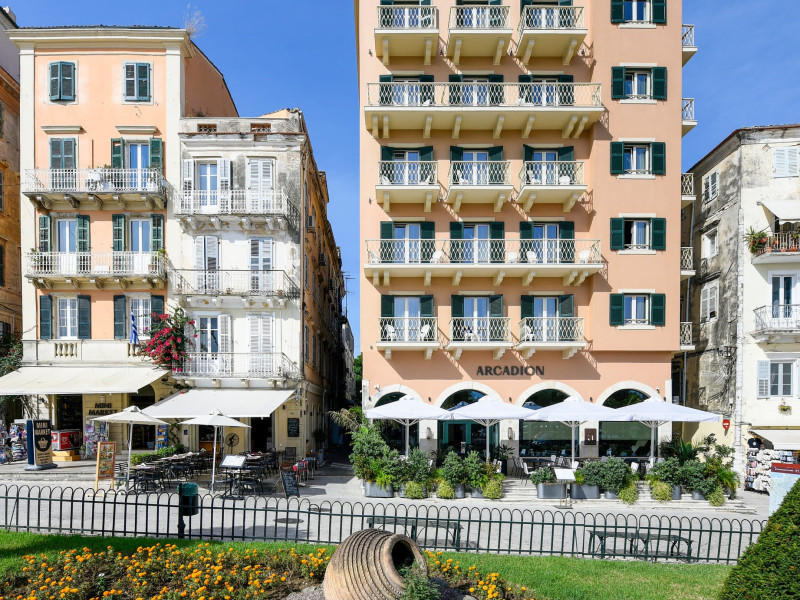 An exclusive hotel in the heart of the old Venetian town, overlooking the arcades of Liston and the main square Esplanade, dedicated to guest’s pleasure and full satisfaction. Located near Liston, the most central spot in town, the Arcadion Hotel is only a few steps away from the conference meeting rooms in Old Fortress. Its dominant position in combination with the luxury and the traditional Corfiot hospitality, promises to satisfy your expectations for an unforgettable stay in our island.