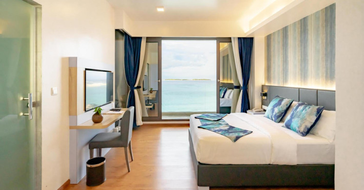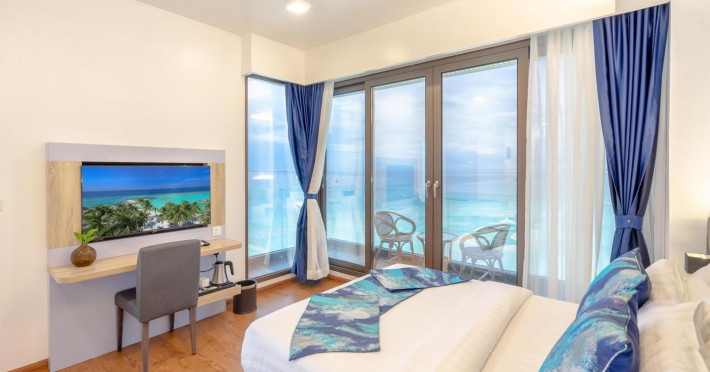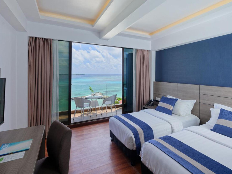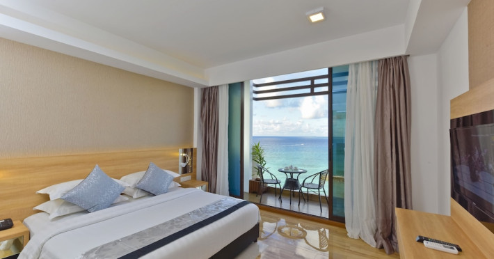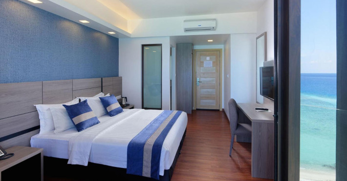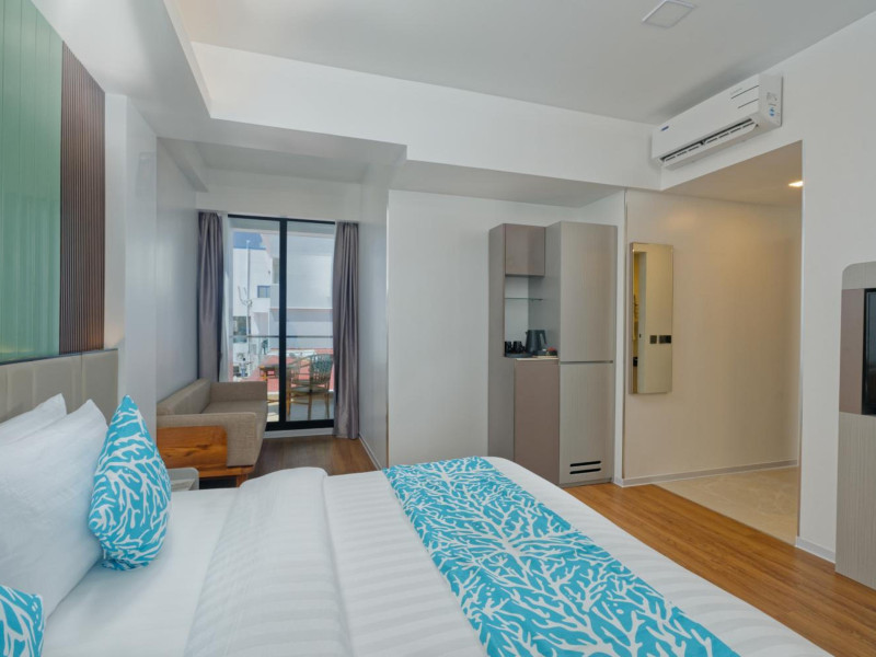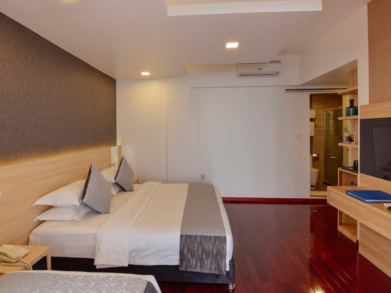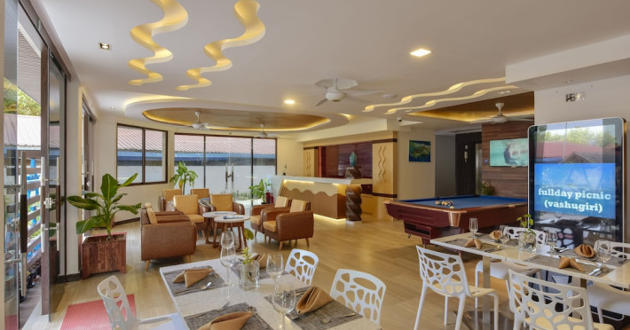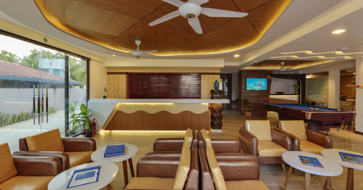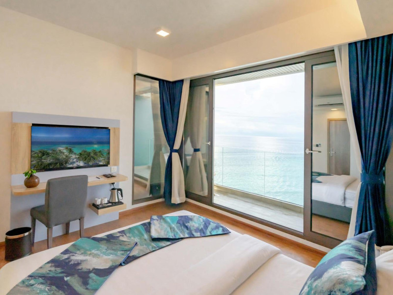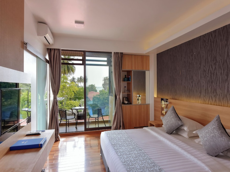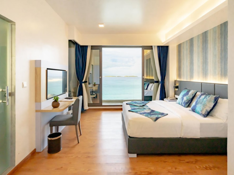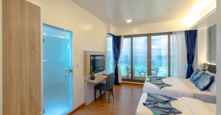 Arena Beach Hotel offers modern, tranquil accommodations on the Maafushi coastline, featuring free Wi-Fi throughout. Elegantly furnished, air-conditioned rooms include a personal safe, electric kettle, wardrobe, flat-screen TV with cable/satellite channels, and a private bathroom with shower, hairdryer, and free toiletries. On-site amenities include a beachfront restaurant serving local and Western cuisine with lagoon views, a rooftop hot tub and sun lounges, an indoor pool, a beach bar, and a 24-hour front desk offering concierge services, luggage storage, tour arrangements, and airport shuttle (surcharge). Guests can enjoy water sports (diving, snorkeling, windsurfing), a private beach, and free parking. The hotel is conveniently located near Maafushi Reef, Maafushi Mosque, Rihiveli Beach, and Rannalhi Beach. Room service is available during limited hours. The Arena Beach Hotel is a hotel.