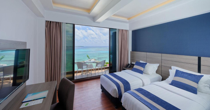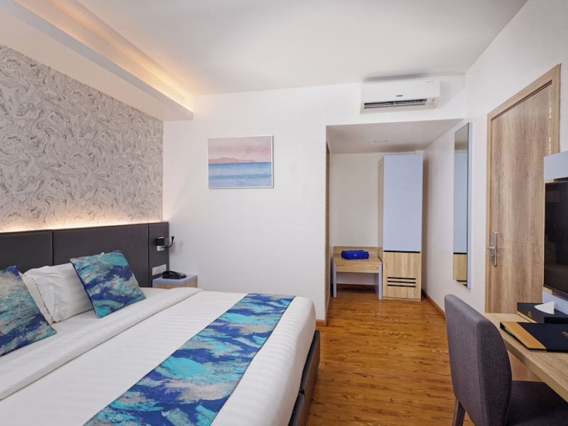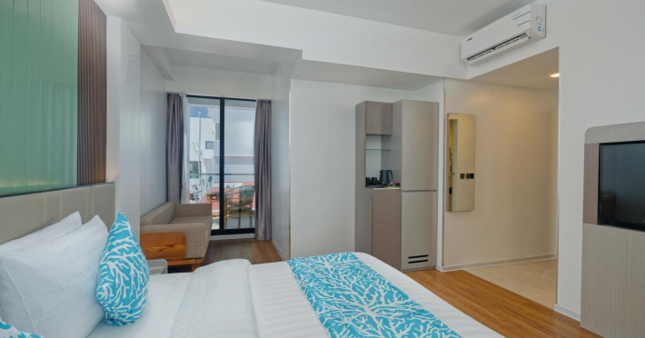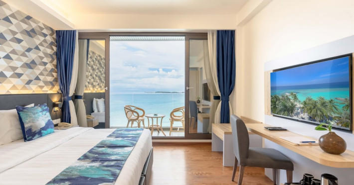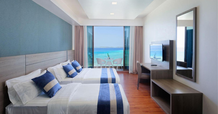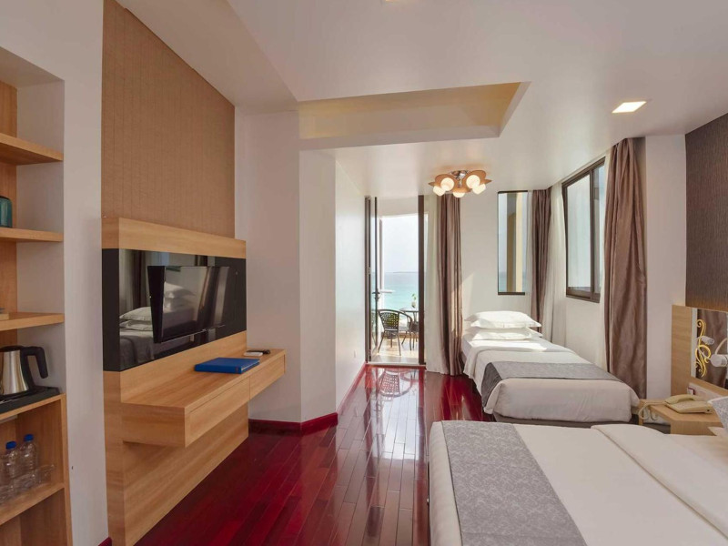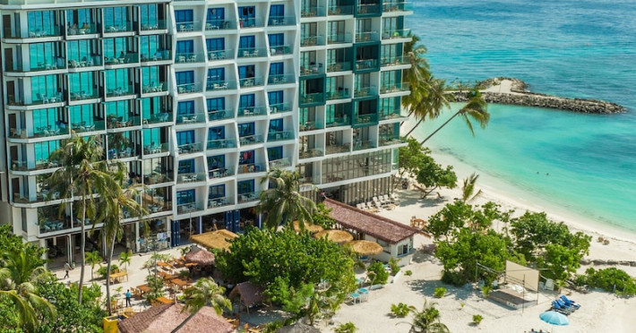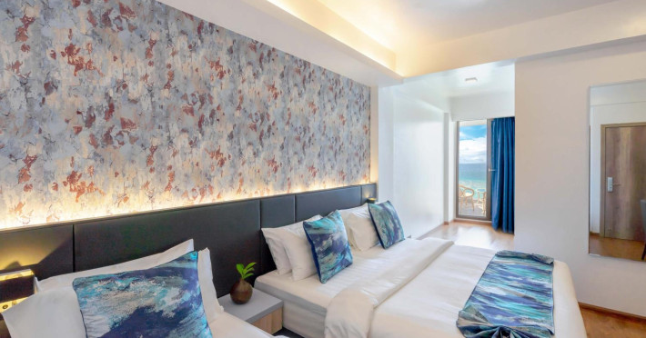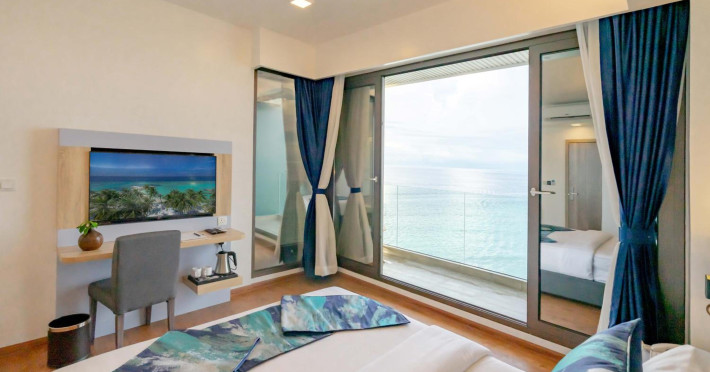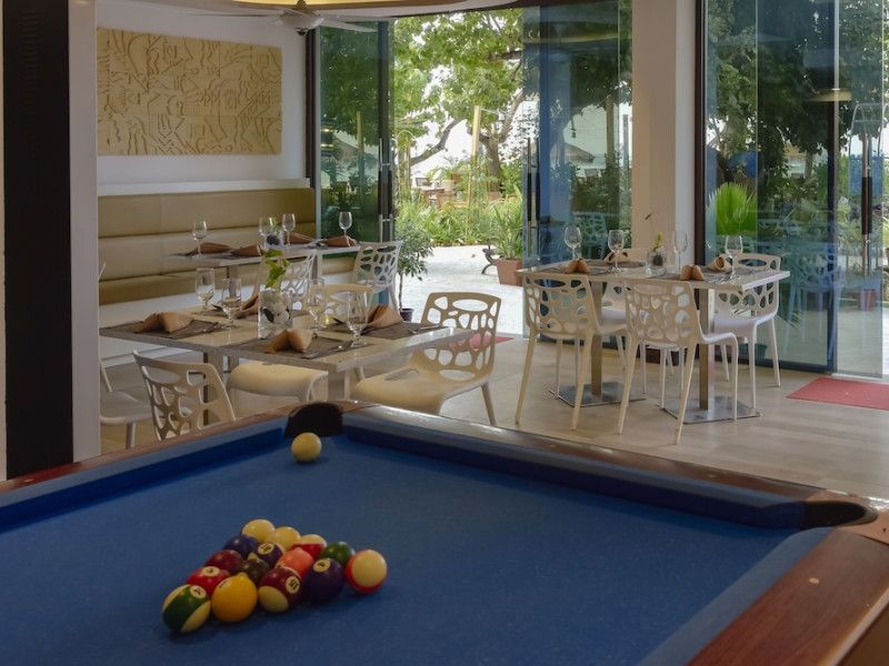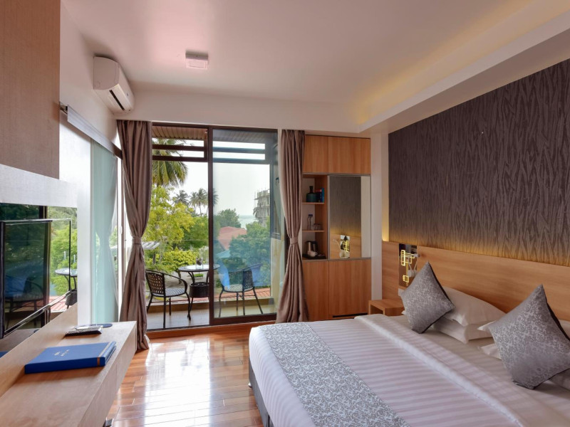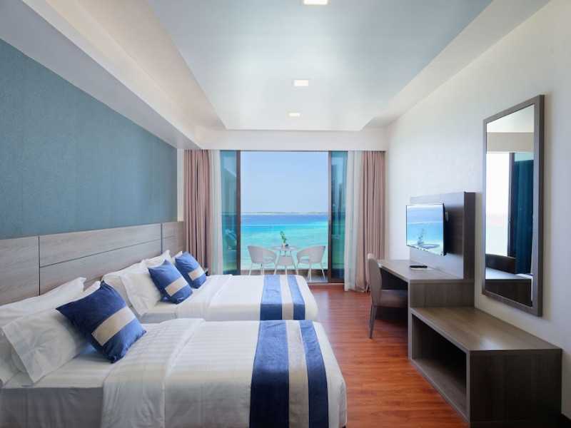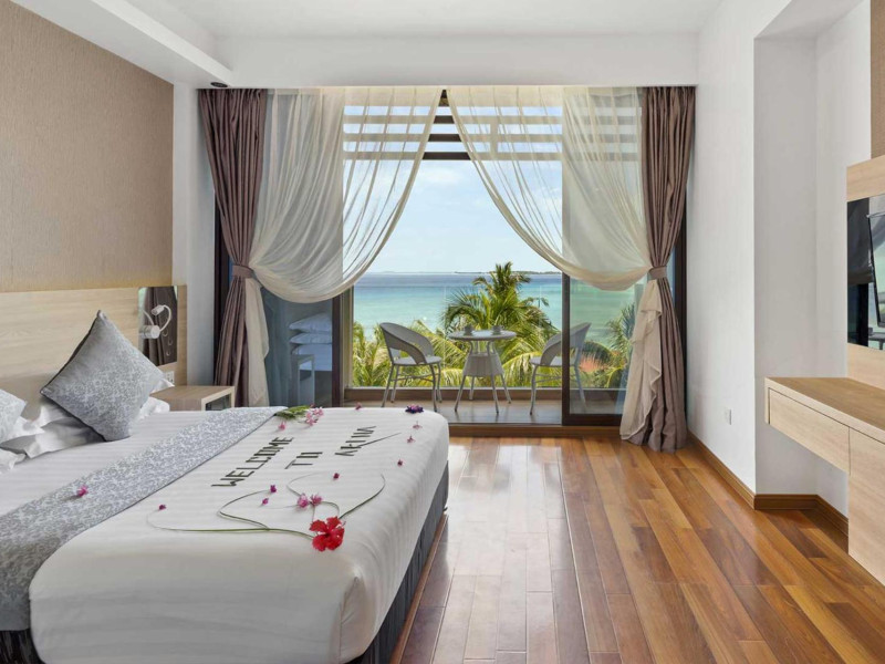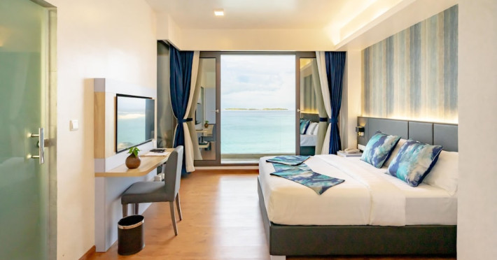 Arena Beach Hotel offers modern, tranquil accommodations on the Maafushi coastline, featuring free Wi-Fi throughout. Elegantly furnished, air-conditioned rooms include a personal safe, electric kettle, wardrobe, flat-screen TV with cable/satellite channels, and a private bathroom with shower, hairdryer, and free toiletries. On-site amenities include a beachfront restaurant serving local and Western cuisine with lagoon views, a rooftop hot tub and sun lounges, an indoor pool, a beach bar, and a 24-hour front desk offering concierge services, luggage storage, tour arrangements, and airport shuttle (surcharge). Guests can enjoy water sports (diving, snorkeling, windsurfing), a private beach, and free parking. The hotel is conveniently located near Maafushi Reef, Maafushi Mosque, Rihiveli Beach, and Rannalhi Beach. Room service is available during limited hours. The Arena Beach Hotel is a hotel.