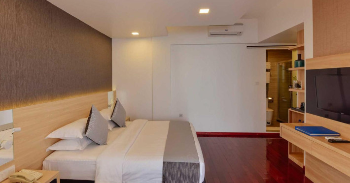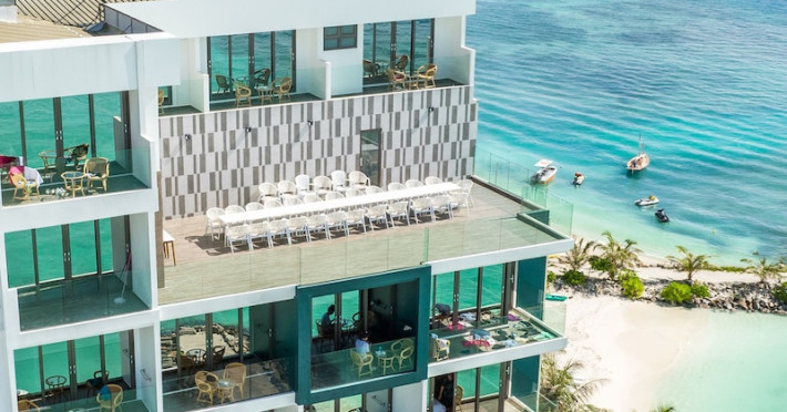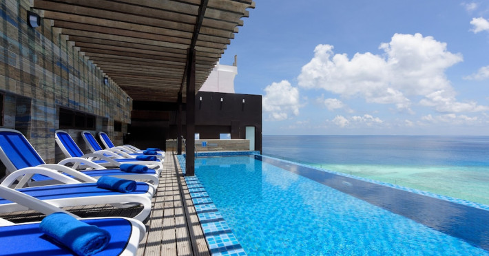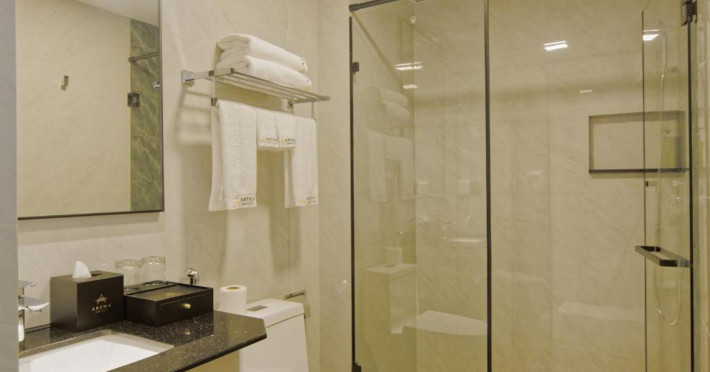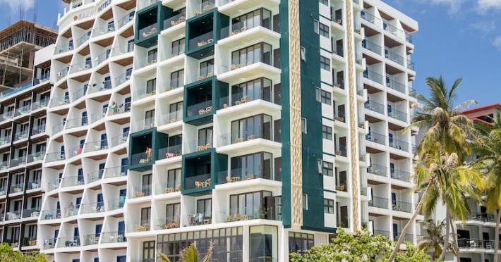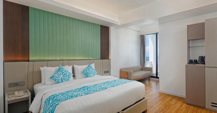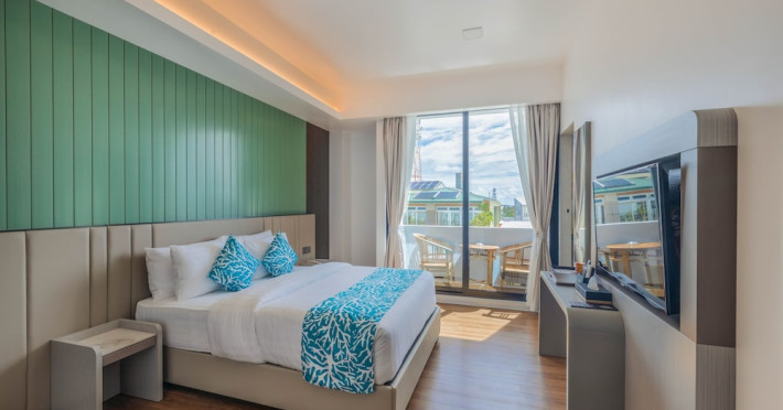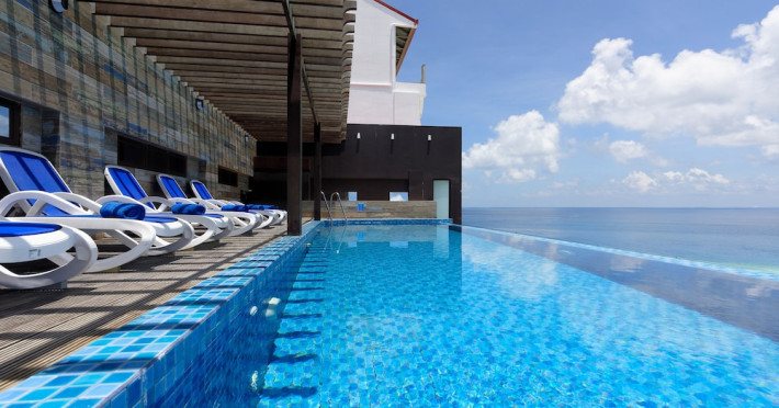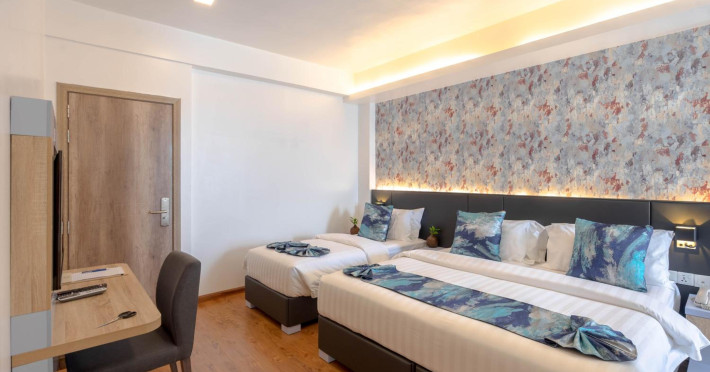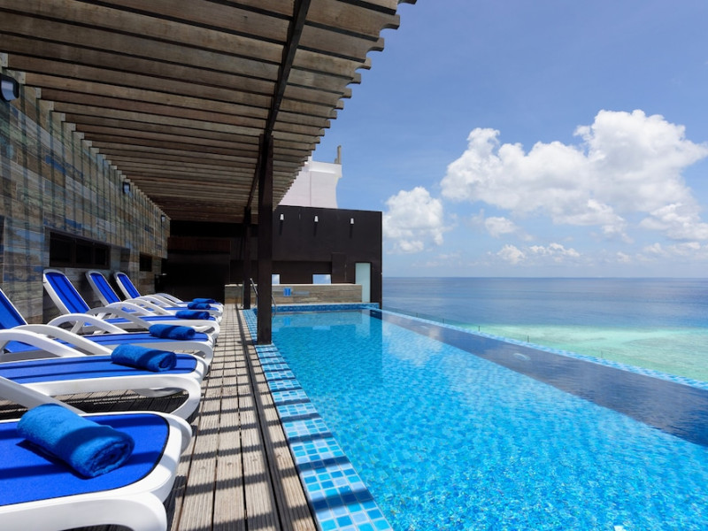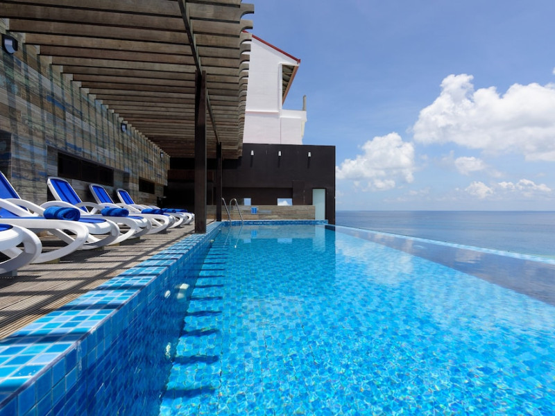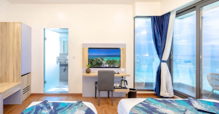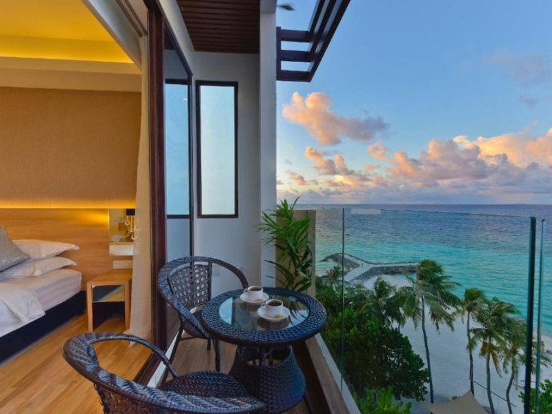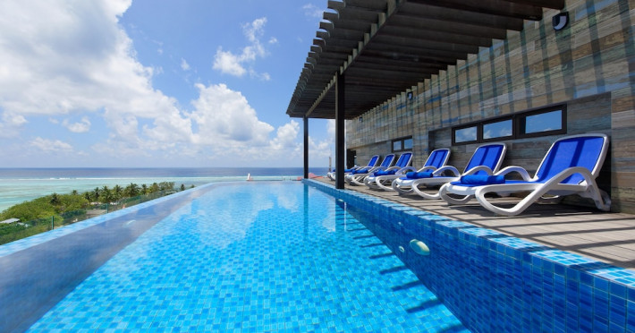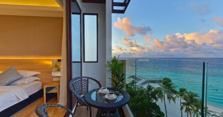 Arena Beach Hotel offers modern, tranquil accommodations on the Maafushi coastline, featuring free Wi-Fi throughout. Elegantly furnished, air-conditioned rooms include a personal safe, electric kettle, wardrobe, flat-screen TV with cable/satellite channels, and a private bathroom with shower, hairdryer, and free toiletries. On-site amenities include a beachfront restaurant serving local and Western cuisine with lagoon views, a rooftop hot tub and sun lounges, an indoor pool, a beach bar, and a 24-hour front desk offering concierge services, luggage storage, tour arrangements, and airport shuttle (surcharge). Guests can enjoy water sports (diving, snorkeling, windsurfing), a private beach, and free parking. The hotel is conveniently located near Maafushi Reef, Maafushi Mosque, Rihiveli Beach, and Rannalhi Beach. Room service is available during limited hours. The Arena Beach Hotel is a hotel.