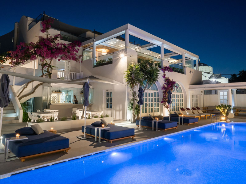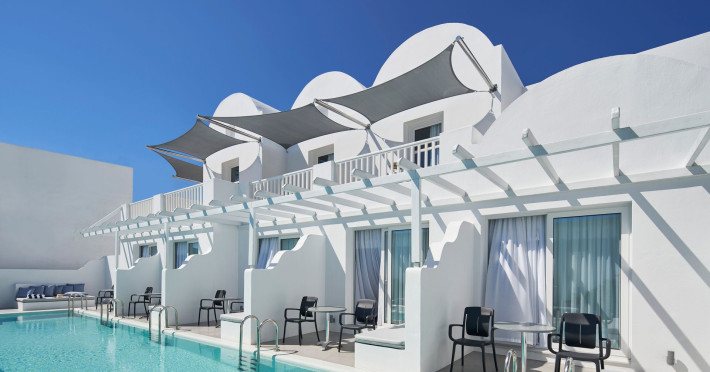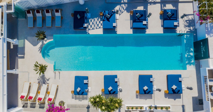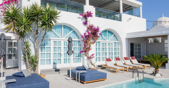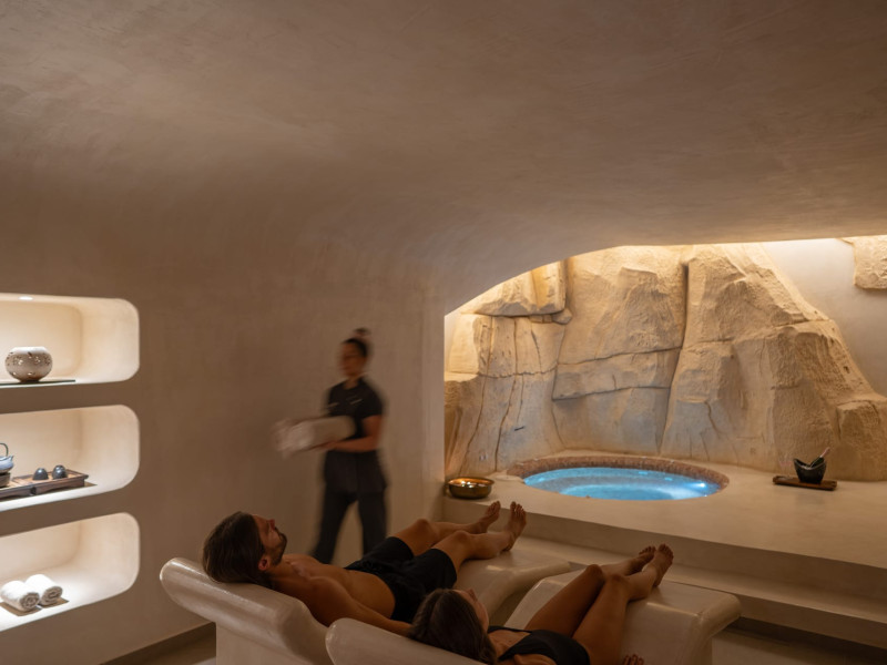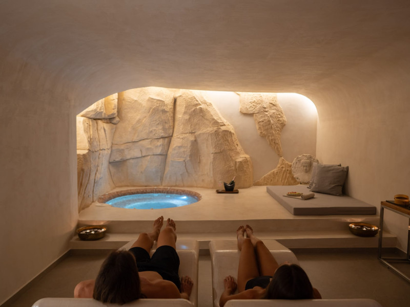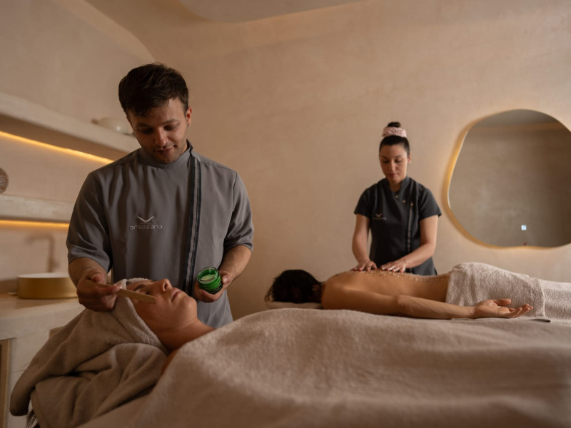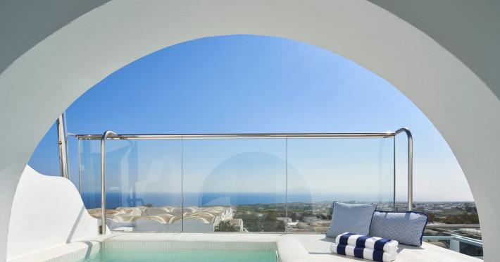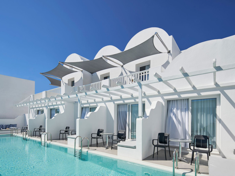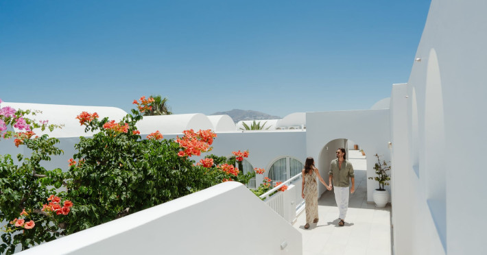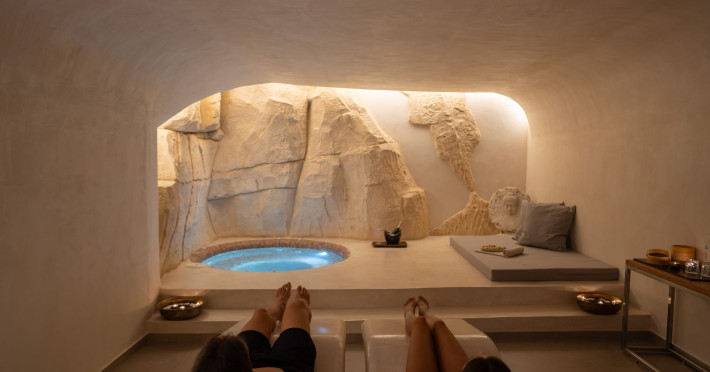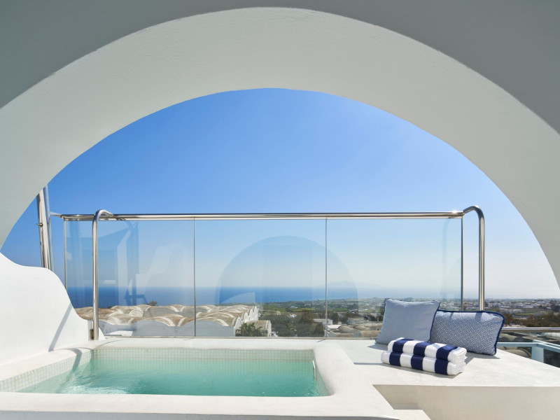 Aressana Spa Hotel & SuitesA proud member of Small Luxury Hotels of the WorldAressana seamlessly blends Santorinian tradition with modern sophistication, offering the warmth of family hospitality alongside professional, attentive service — ensuring an exceptional stay for even the most discerning guests. Every detail at Aressana has been thoughtfully curated to meet the standards of a Deluxe Category hotel. The unique eclectic minimalism of the design creates a soothing atmosphere that promotes relaxation and well-being. With a variety of geometric forms and subtle architectural levels, the property offers quiet corners and stylish spaces ideal for reading, writing, unwinding with friends, or simply soaking in the culture and charm of Santorini.Facilities & ExperiencesGuests can indulge in a wide array of upscale amenities, including:The serene Tefsion Kallos Spa, the award-winning Ifestioni Restaurant, a refreshing outdoor summer swimming pool, a relaxed Pool Bar, a well-equipped Fitness RoomLocationAressana enjoys a central yet peaceful setting in the historic heart of Fira, Santorini’s capital. Located next to the Greek Orthodox Cathedral and the Museum of Prehistoric Thera, the hotel offers easy access to the vibrant energy of the town while remaining a calm retreat. Guests are within walking distance of restaurants, boutiques, art galleries, and Santorini’s lively nightlife. The central bus and taxi station is just moments away, offering convenient transport across the island. Just a few steps from the hotel entrance lies the stunning Caldera rim, with panoramic views of the cliffs and volcano — especially breathtaking at sunset.Tefsion Kallos Spa Where Greek elegance meets holistic wellness in the heart of Fira Indulge in the ultimate relaxation experience at the newly renovated Tefsion Kallos Spa. A serene sanctuary of calm and rejuvenation, the spa offers a harmonious blend of modern luxury and traditional Greek wellness.Featuring three luxurious treatment cabins — including a dedicated couples’ room — and a tranquil private Spa Lounge, Tefsion Kallos Spa is designed to elevate your senses. Guests can unwind with a curated selection of treatments, including soothing massages, revitalizing facials, and bespoke body therapies — all performed with Apivita’s natural cosmetics for enhanced wellness benefits. The exclusive Spa Lounge is your personal oasis, complete with: a cave-style hot tub, a Sunlighten™ infrared sauna, a steam room and heated loungers. Ifestioni Restaurant ExperienceStart your day at a relaxed pace with breakfast served until 11:00 AM daily.Savor our award-winning Greek buffet breakfast, featuring homemade Santorinian specialties, served poolside from 8:00 to 11:00 AM. The serene open-air Pool Deck, dressed in calming white and turquoise hues and furnished with canopy beds and sun loungers, provides the perfect backdrop for a leisurely morning.Throughout the day, indulge in the Mediterranean-Greek flavors of Ifestioni Restaurant, where our award-winning chefs infuse every dish with “Meraki” — passion and love. Enjoy lunch by the expansive freshwater pool, delighting in traditional Greek dishes with creative, healthy twists, complemented by refreshing signature cocktails.As evening falls, dine under the stars on Ifestioni’s upper floor veranda, offering stunning east-facing sea views. Explore a curated selection of Greek and local wines as you experience elegant Greek and Mediterranean cuisine in a magical setting. Every meal at Ifestioni is a heartfelt celebration of Greek culinary tradition, inviting you on an authentic journey that honors the island’s rich culture.Swimming Pool & Snack Pool Bar The beautifully designed freshwater swimming pool, located at the heart of the Lower Level, is continuously refreshed by a gentle cascade of flowing water. Comfortable loungers and curtained divans line the sun-drenched poolside, creating the perfect spot to soak up the daytime warmth. As night falls, the pool’s shifting colors transform the area into a mesmerizing, almost magical setting.Room FacilitiesOur 48 elegantly appointed guest rooms and suites, adorned in tranquil island-white tones, provide every comfort expected from a sophisticated hotel. Choose from rooms featuring a king-size bed or twin beds, each with a private balcony or patio. For a more luxurious stay, select one of our sea view suites complete with a private hot tub on the balcony, or junior suites offering access to a shared pool.Additional amenities include air conditioning, an electronic safe, direct-dial telephone, and complimentary bottled water alongside tea and coffee facilities. Secure double-glass windows and terrace doors can be partially or fully opened to ensure your comfort and tranquility.Bathrooms have been carefully renovated and feature spacious showers with rain-shower heads, modern washbasins, Hansgrohe fittings, a Valera hairdryer, and shaver sockets. Luxurious bathrobes, slippers, and premium toiletries complete the indulgent experience.Guest ServicesOur dedicated team is available 24 hours at the front desk to assist with travel information, bellboy and luggage service, and personalized concierge support. Additional services include minivan transportation, room service, daily housekeeping with turndown service ( upon request), and laundry and ironing facilities. Stay connected with free Wi-Fi throughout the property. For families, babysitting services are available upon request, along with complimentary baby cots and high chairs.How to Reach UsWe offer convenient arrival and departure transfers from the port or airport, delivering you directly to the hotel entrance. If you plan to use your own transportation, please contact us for detailed directions. Please note that the hotel is located within a restricted pedestrian area where cars are not permitted. Aressana is 6 km from Santorini Airport (JTR) and 13 km from Athinios Port.Contact Aressana HotelE