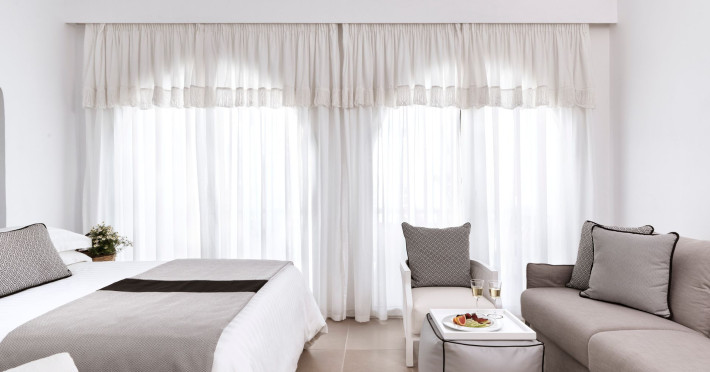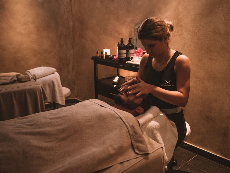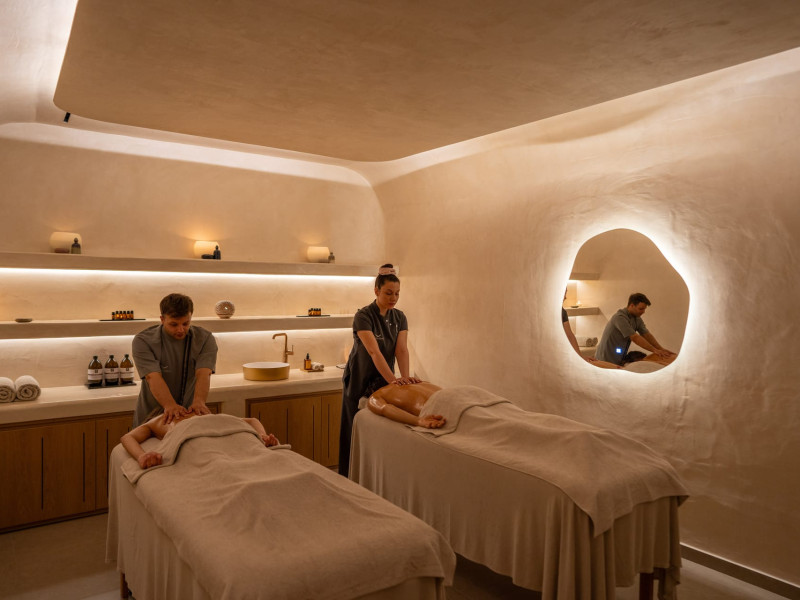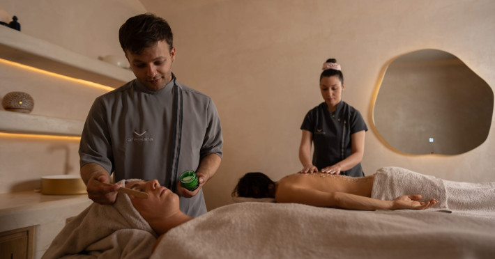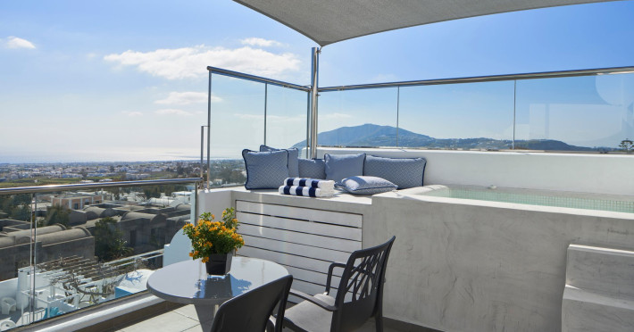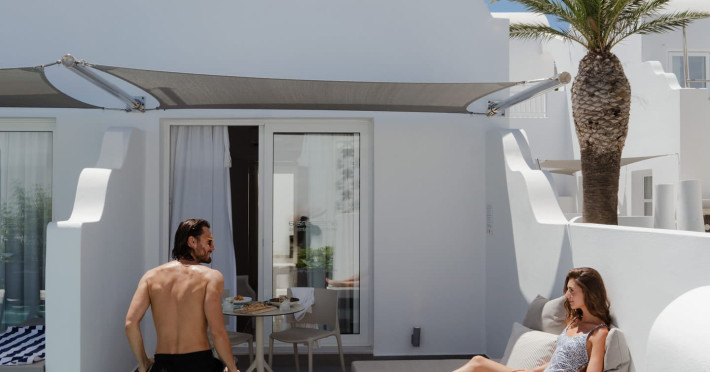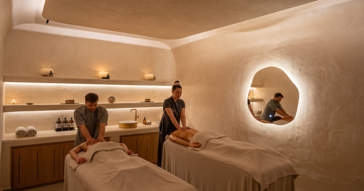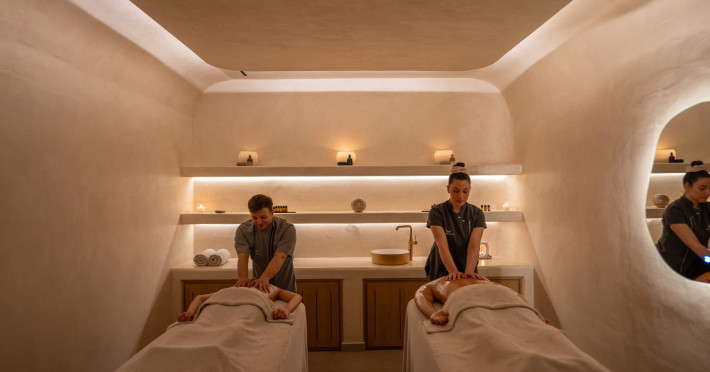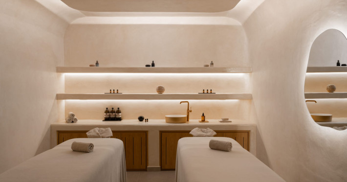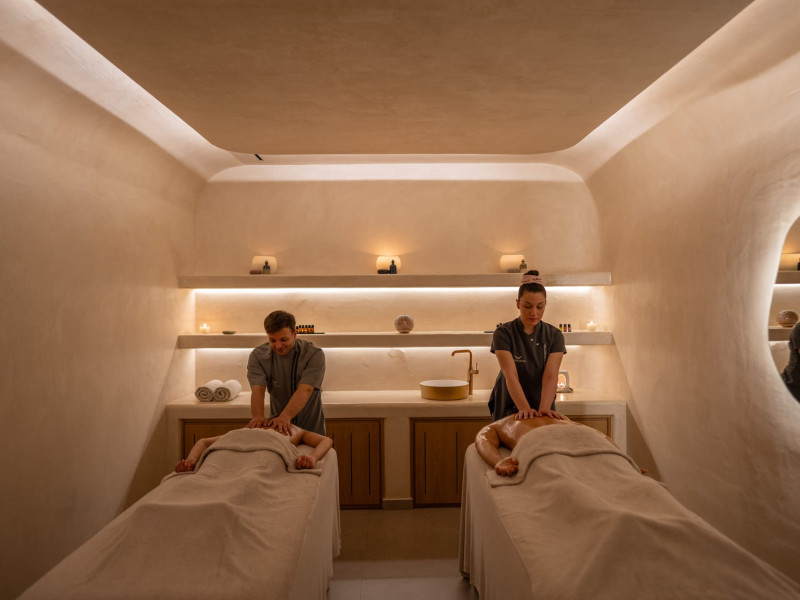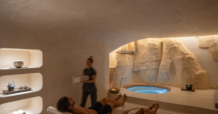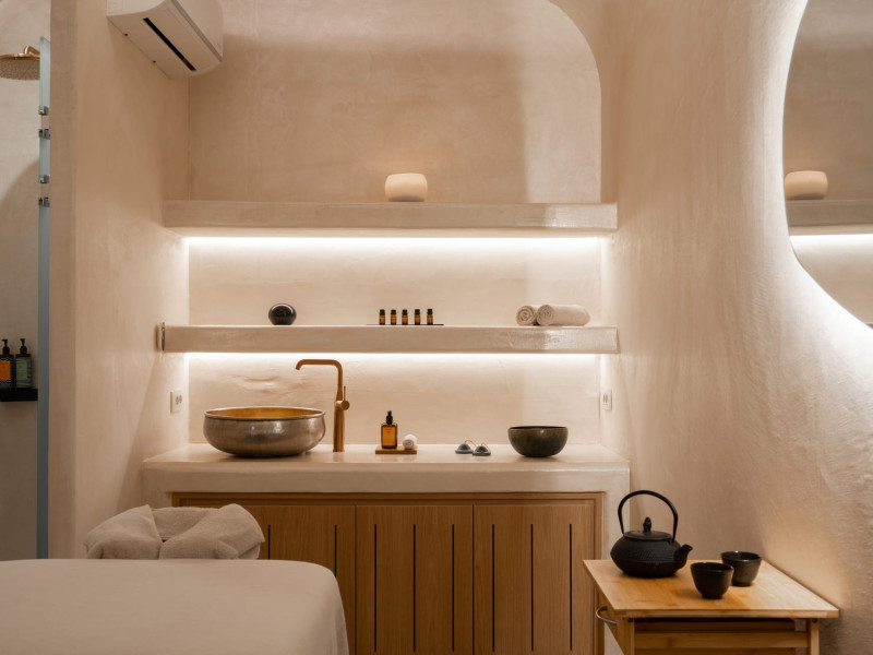 Aressana Spa Hotel & SuitesA proud member of Small Luxury Hotels of the WorldAressana seamlessly blends Santorinian tradition with modern sophistication, offering the warmth of family hospitality alongside professional, attentive service — ensuring an exceptional stay for even the most discerning guests. Every detail at Aressana has been thoughtfully curated to meet the standards of a Deluxe Category hotel. The unique eclectic minimalism of the design creates a soothing atmosphere that promotes relaxation and well-being. With a variety of geometric forms and subtle architectural levels, the property offers quiet corners and stylish spaces ideal for reading, writing, unwinding with friends, or simply soaking in the culture and charm of Santorini.Facilities & ExperiencesGuests can indulge in a wide array of upscale amenities, including:The serene Tefsion Kallos Spa, the award-winning Ifestioni Restaurant, a refreshing outdoor summer swimming pool, a relaxed Pool Bar, a well-equipped Fitness RoomLocationAressana enjoys a central yet peaceful setting in the historic heart of Fira, Santorini’s capital. Located next to the Greek Orthodox Cathedral and the Museum of Prehistoric Thera, the hotel offers easy access to the vibrant energy of the town while remaining a calm retreat. Guests are within walking distance of restaurants, boutiques, art galleries, and Santorini’s lively nightlife. The central bus and taxi station is just moments away, offering convenient transport across the island. Just a few steps from the hotel entrance lies the stunning Caldera rim, with panoramic views of the cliffs and volcano — especially breathtaking at sunset.Tefsion Kallos Spa Where Greek elegance meets holistic wellness in the heart of Fira Indulge in the ultimate relaxation experience at the newly renovated Tefsion Kallos Spa. A serene sanctuary of calm and rejuvenation, the spa offers a harmonious blend of modern luxury and traditional Greek wellness.Featuring three luxurious treatment cabins — including a dedicated couples’ room — and a tranquil private Spa Lounge, Tefsion Kallos Spa is designed to elevate your senses. Guests can unwind with a curated selection of treatments, including soothing massages, revitalizing facials, and bespoke body therapies — all performed with Apivita’s natural cosmetics for enhanced wellness benefits. The exclusive Spa Lounge is your personal oasis, complete with: a cave-style hot tub, a Sunlighten™ infrared sauna, a steam room and heated loungers. Ifestioni Restaurant ExperienceStart your day at a relaxed pace with breakfast served until 11:00 AM daily.Savor our award-winning Greek buffet breakfast, featuring homemade Santorinian specialties, served poolside from 8:00 to 11:00 AM. The serene open-air Pool Deck, dressed in calming white and turquoise hues and furnished with canopy beds and sun loungers, provides the perfect backdrop for a leisurely morning.Throughout the day, indulge in the Mediterranean-Greek flavors of Ifestioni Restaurant, where our award-winning chefs infuse every dish with “Meraki” — passion and love. Enjoy lunch by the expansive freshwater pool, delighting in traditional Greek dishes with creative, healthy twists, complemented by refreshing signature cocktails.As evening falls, dine under the stars on Ifestioni’s upper floor veranda, offering stunning east-facing sea views. Explore a curated selection of Greek and local wines as you experience elegant Greek and Mediterranean cuisine in a magical setting. Every meal at Ifestioni is a heartfelt celebration of Greek culinary tradition, inviting you on an authentic journey that honors the island’s rich culture.Swimming Pool & Snack Pool Bar The beautifully designed freshwater swimming pool, located at the heart of the Lower Level, is continuously refreshed by a gentle cascade of flowing water. Comfortable loungers and curtained divans line the sun-drenched poolside, creating the perfect spot to soak up the daytime warmth. As night falls, the pool’s shifting colors transform the area into a mesmerizing, almost magical setting.Room FacilitiesOur 48 elegantly appointed guest rooms and suites, adorned in tranquil island-white tones, provide every comfort expected from a sophisticated hotel. Choose from rooms featuring a king-size bed or twin beds, each with a private balcony or patio. For a more luxurious stay, select one of our sea view suites complete with a private hot tub on the balcony, or junior suites offering access to a shared pool.Additional amenities include air conditioning, an electronic safe, direct-dial telephone, and complimentary bottled water alongside tea and coffee facilities. Secure double-glass windows and terrace doors can be partially or fully opened to ensure your comfort and tranquility.Bathrooms have been carefully renovated and feature spacious showers with rain-shower heads, modern washbasins, Hansgrohe fittings, a Valera hairdryer, and shaver sockets. Luxurious bathrobes, slippers, and premium toiletries complete the indulgent experience.Guest ServicesOur dedicated team is available 24 hours at the front desk to assist with travel information, bellboy and luggage service, and personalized concierge support. Additional services include minivan transportation, room service, daily housekeeping with turndown service ( upon request), and laundry and ironing facilities. Stay connected with free Wi-Fi throughout the property. For families, babysitting services are available upon request, along with complimentary baby cots and high chairs.How to Reach UsWe offer convenient arrival and departure transfers from the port or airport, delivering you directly to the hotel entrance. If you plan to use your own transportation, please contact us for detailed directions. Please note that the hotel is located within a restricted pedestrian area where cars are not permitted. Aressana is 6 km from Santorini Airport (JTR) and 13 km from Athinios Port.Contact Aressana HotelE