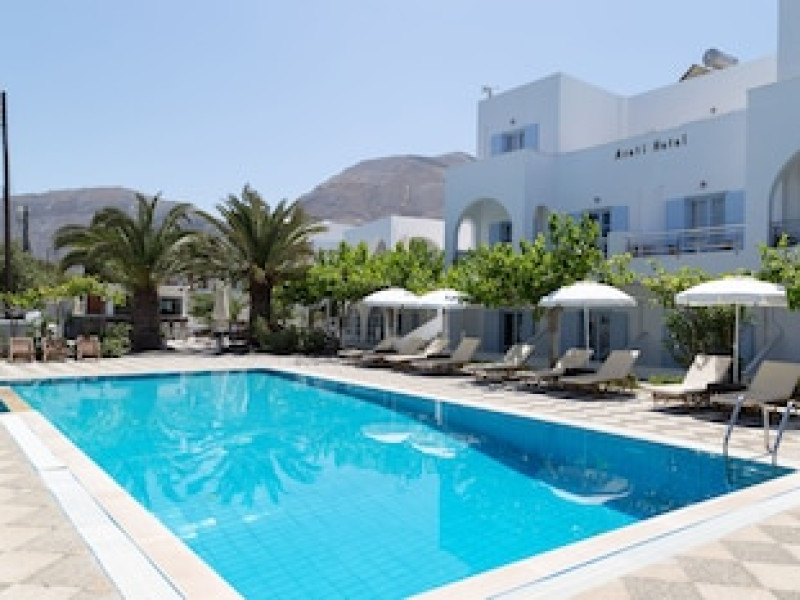 Property Location When you stay at Areti Hotel (under renovation - Opening May 2026) in Santorini, you'll be by the sea, a 1-minute drive from Kamari Beach and 7 minutes from Ancient Thira. This family-friendly hotel is 5.7 mi (9.2 km) from Athinios Port and 4.6 mi (7.4 km) from Santorini Caldera.
