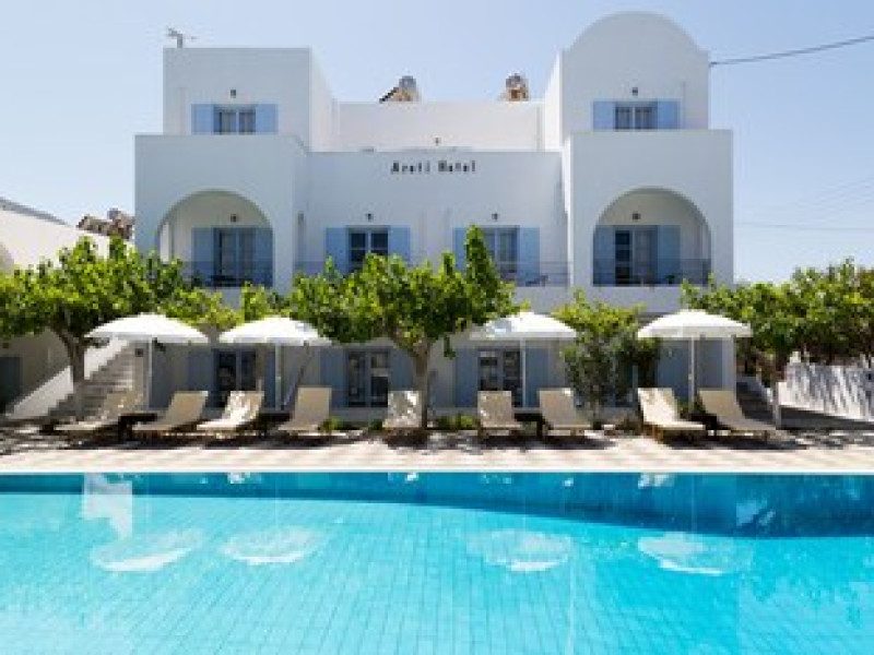 The preferred airport for Areti Hotel (under renovation - Opening May 2026) is Santorini National Airport (JTR) - 5.4 km / 3.3 mi