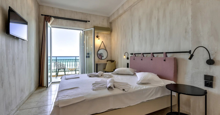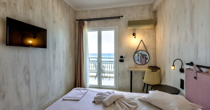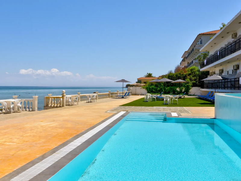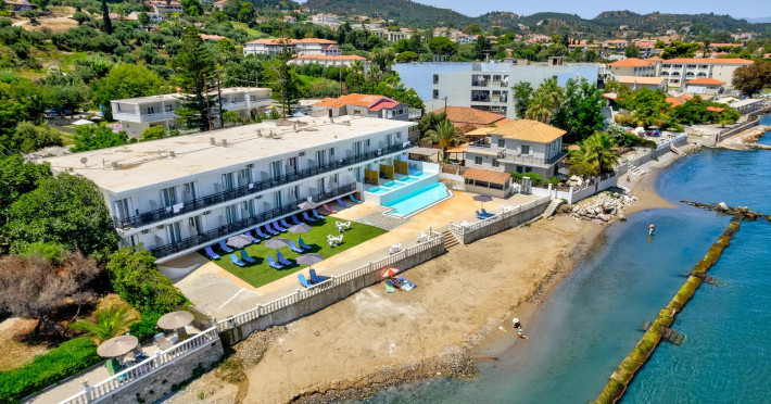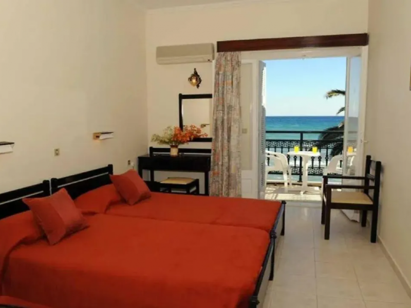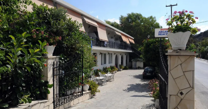Located on the beachfront in Argassi, Zakynthos, the 4-star Argassi Beach Hotel offers a seasonal outdoor swimming pool, garden, private beach area, and terrace with sea views. Guests can enjoy a meal at the restaurant or a drink at the bar. The hotel features a shared lounge, 24-hour reception, and offers air-conditioned rooms with a balcony and TV. A buffet breakfast is available. Internet access, a snack bar, daily maid service, safety deposit box, sun loungers/parasols, and linen are provided. The hotel is close to the center and offers a paid airport shuttle service. The Argassi Beach Hotel is a hotel.
