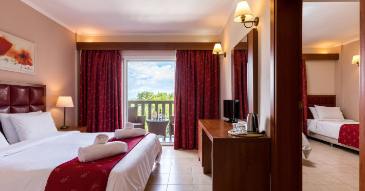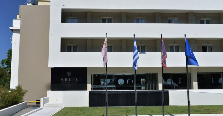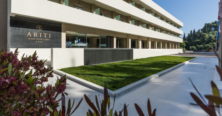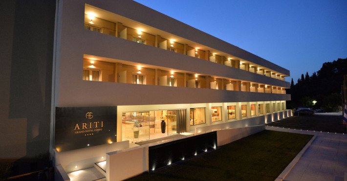 The sparkling Greek Island of Corfu is home to the 4-star Ariti Grand Hotel, a cliff-side location at Kanoni, 4km from Corfu town. Welcoming business and leisure visitors to its contemporary city facilities, the 4-star Ariti Grand Hotel has 156 inviting rooms and suites over 6 floors, set in landscaped gardens. You can enjoy restaurant dining, bars, lounge and panoramic terrace; soak-up the rays at the pool (open from May to October with separate children's pool), or in the gardens and relax or workout at the nearby fitness, spa and tennis courts availability. With Concierge services and friendly hospitality, the 4-star Ariti Grand Hotel is a fine option to book into and experience the beauty of Corfu Island, Greece.