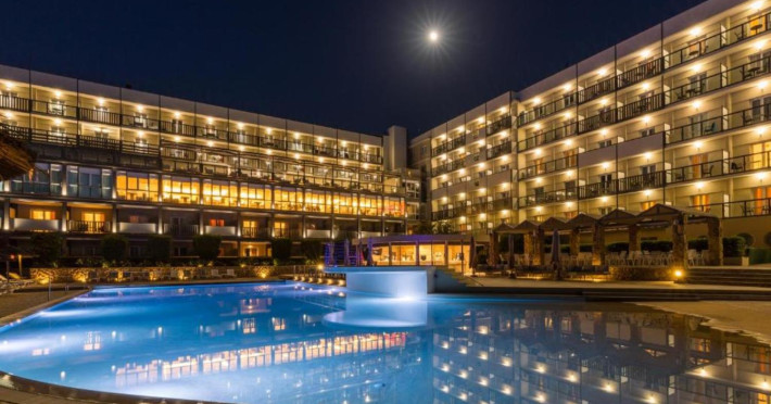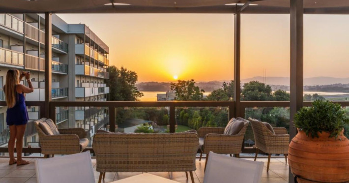 The sparkling Greek Island of Corfu is home to the 4-star Ariti Grand Hotel, a cliff-side location at Kanoni, 4km from Corfu town. Welcoming business and leisure visitors to its contemporary city facilities, the 4-star Ariti Grand Hotel has 156 inviting rooms and suites over 6 floors, set in landscaped gardens. You can enjoy restaurant dining, bars, lounge and panoramic terrace; soak-up the rays at the pool (open from May to October with separate children's pool), or in the gardens and relax or workout at the nearby fitness, spa and tennis courts availability. With Concierge services and friendly hospitality, the 4-star Ariti Grand Hotel is a fine option to book into and experience the beauty of Corfu Island, Greece.