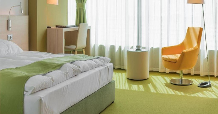 Camerastandard matrimoniala Camera dubla (20 m2), camera cu decorelegant, TV cu ecran plat cu canale prin cablu, aer conditionat cu 4 trepte deturatie, WiFi gratuit, aparat espresso, aparat de ceai, seif in camera, birou,minibar, articole de toaleta gratuite, uscator de par, fier de calcat cu masade calcat, camera de nefumatori.