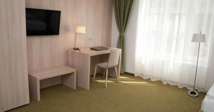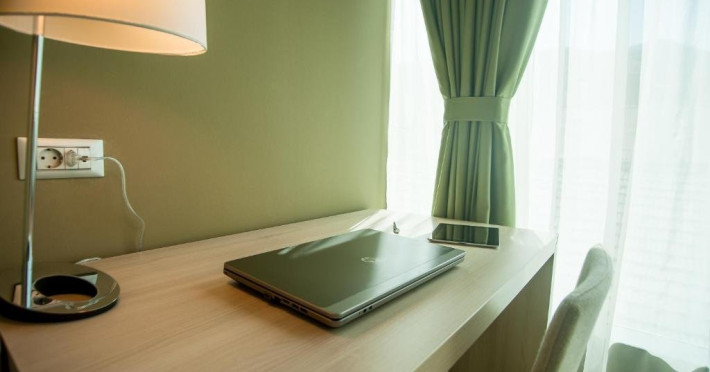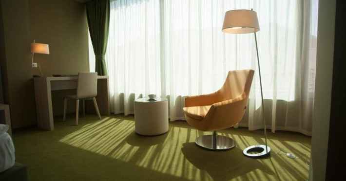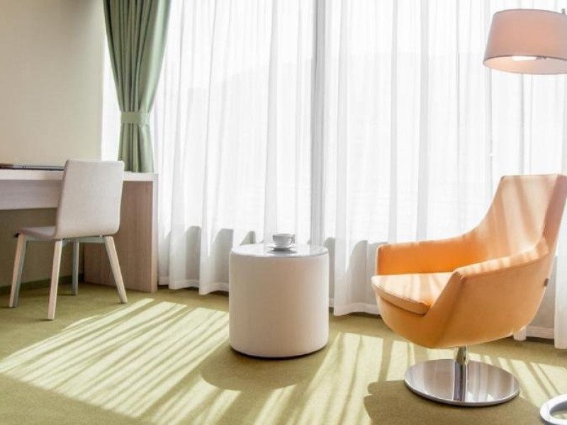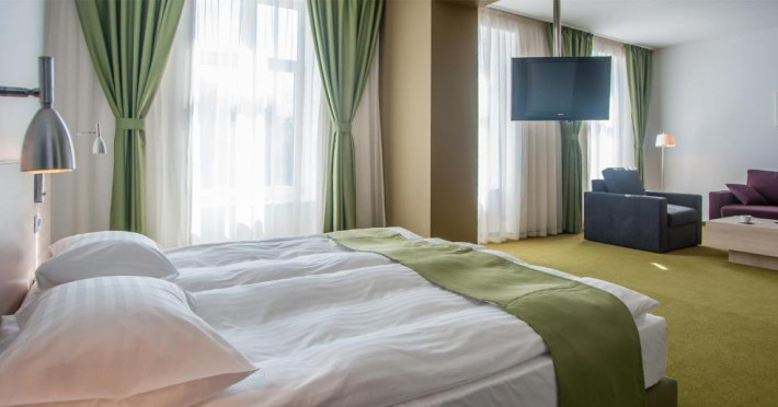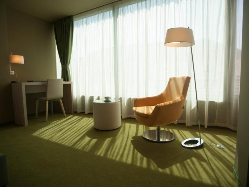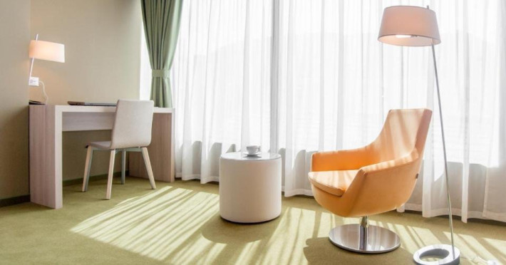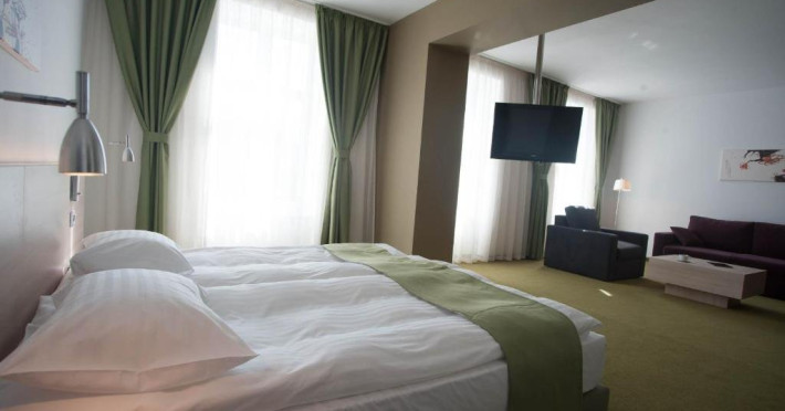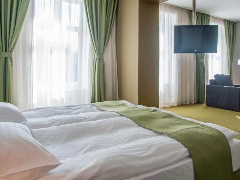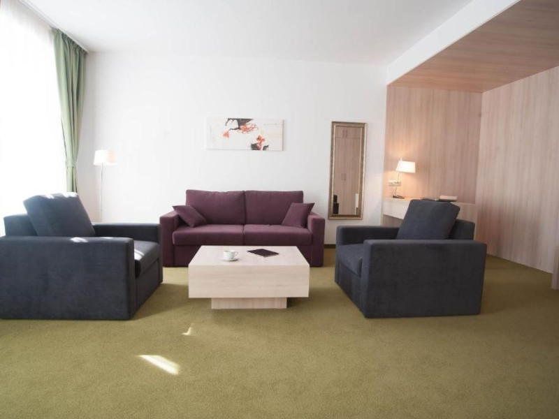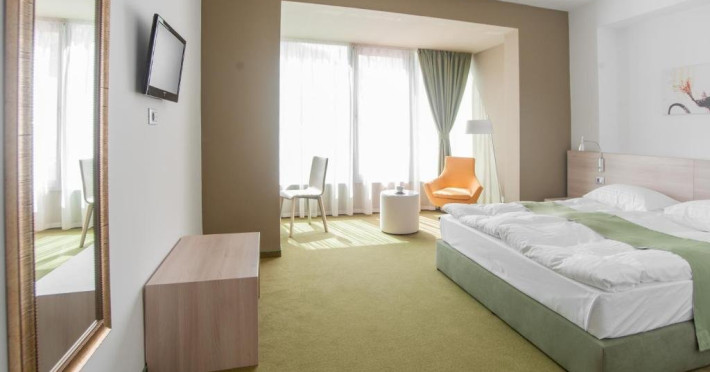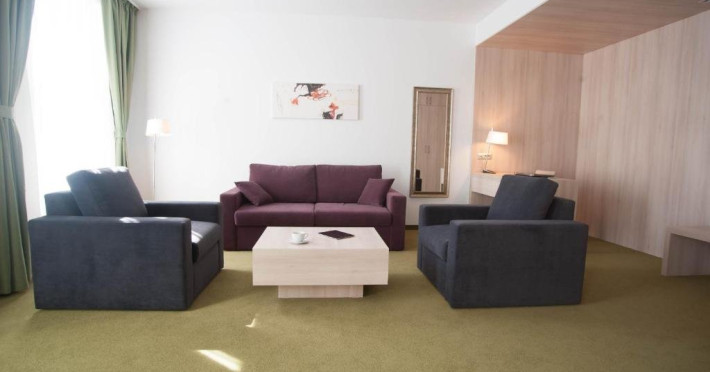 Junior suite Camera spatioasa (40m2), vedere la oras, zona de relaxare, canapea extensibila, TV cu ecran platprin cablu, WiFi gratuit, aparat de ceai, aparat expresso, fier de calcat cumasa de calcat, birou, minibar, uscator de par, seif in camera, articole detoaleta gratuite, aer conditionat cu 4 trepte de turatie, camera de nefumatori