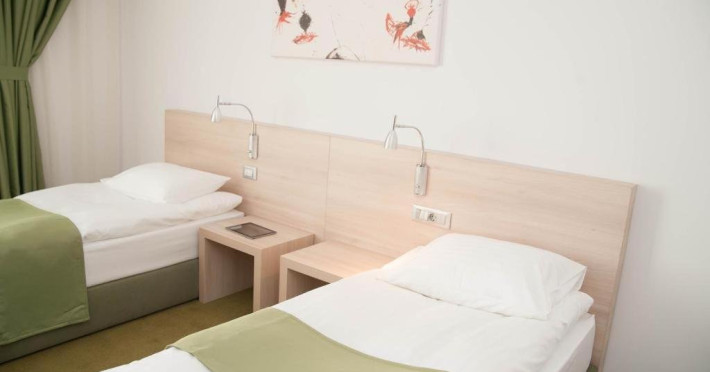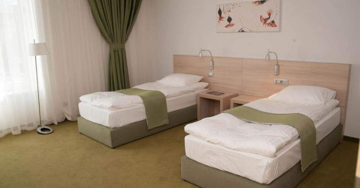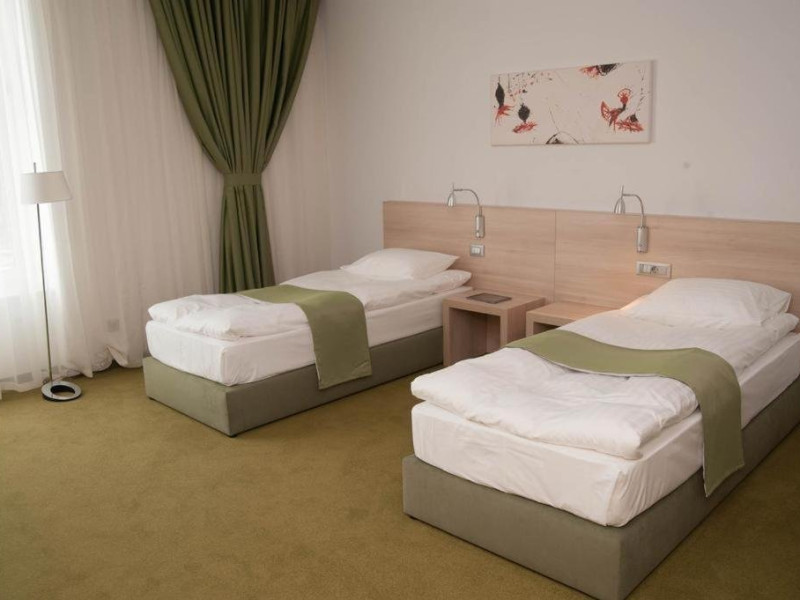 Camera superioara twin Camera twin (25m2), cameracu decor elegant, vedere la munte, zona de relaxare, TV cu ecran plat cu canaleprin cablu, WiFi gratuit, birou, minibar, aparat de ceai, aparat expresso,articole de toaleta gratuite, uscator de par, fier de calcat si masa de calcat,minibar, seif in camera, aer conditionat cu 4 treptede turatie, camera de nefumatori