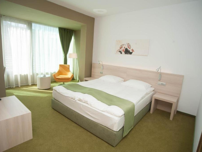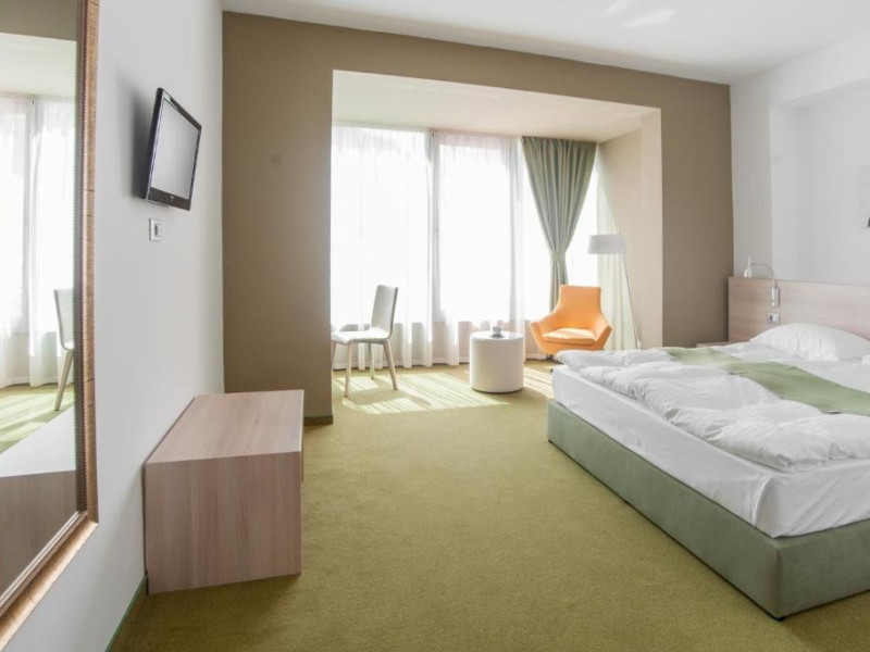 Camerasuperioara matrimoniala Camera dubla (25 m2), camera cu decorelegant, vedere la munte, zona de relaxare, TV cu ecran plat cu canale princablu, WiFi gratuit, birou, minibar, articole de toaleta gratuite, aparat deceai, aparat expresso, fier de calcat cu masa de calcat, uscator de par, seifin camera, aer conditionat cu 4 trepte de turatie, camera de nefumatori