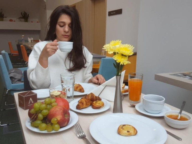 In restaurantul nostru, miculdejun este pregatit i servit in concordana cu cele mai inalte standardeinternaionale de calitate i igiena. Micul dejun (bufet suedez) se servete inSalonul de Mic Dejun aflat la etajul al treilea al hotelului, intre orele 07:00 - 10:00 a.m., in timpul saptamanii i 08:00 a.m. - 11.00 a.m., sambata iduminica.