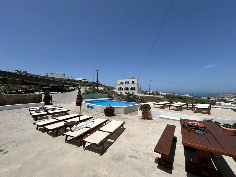 Guests can also enjoy a shared swimming pool with stunning views, perfect for lounging during the day or enjoying a magical Santorini evening. The property includes private parking for added convenience.