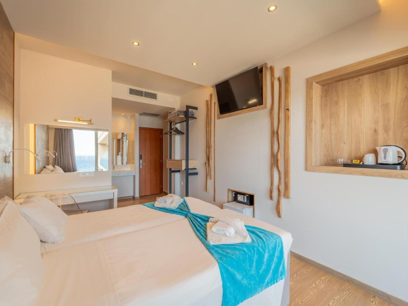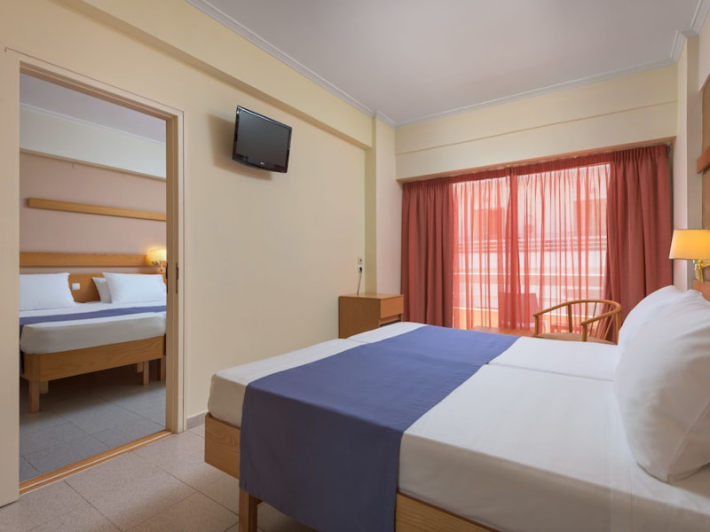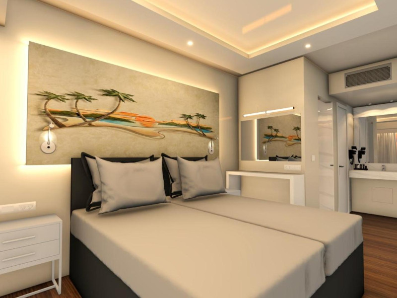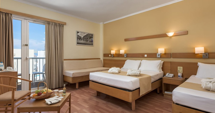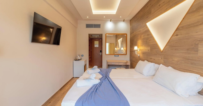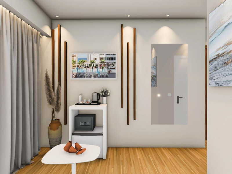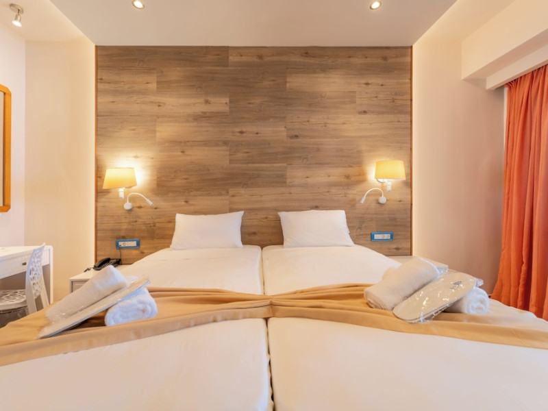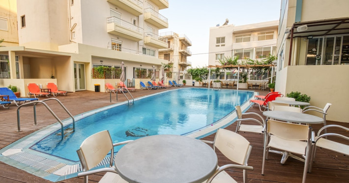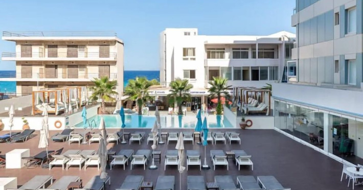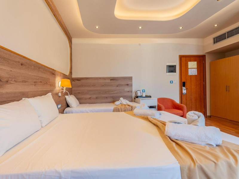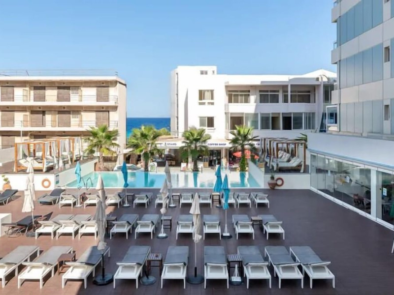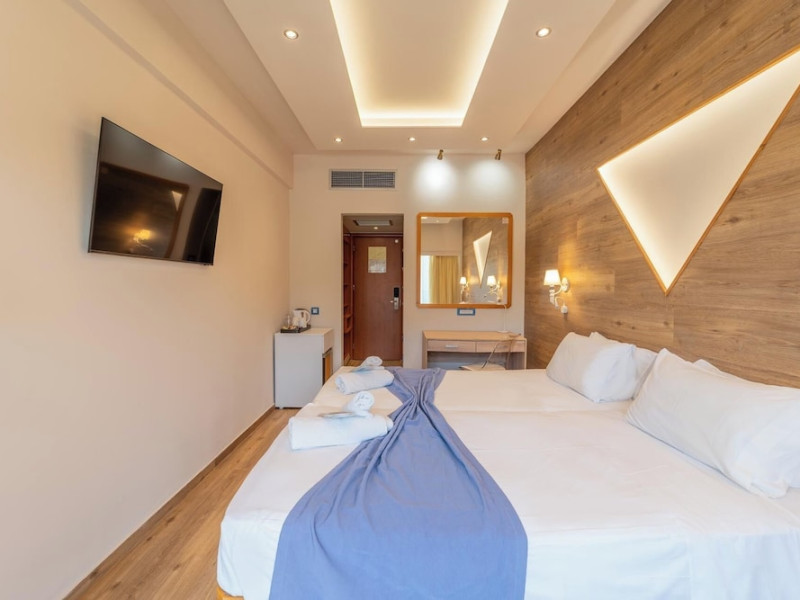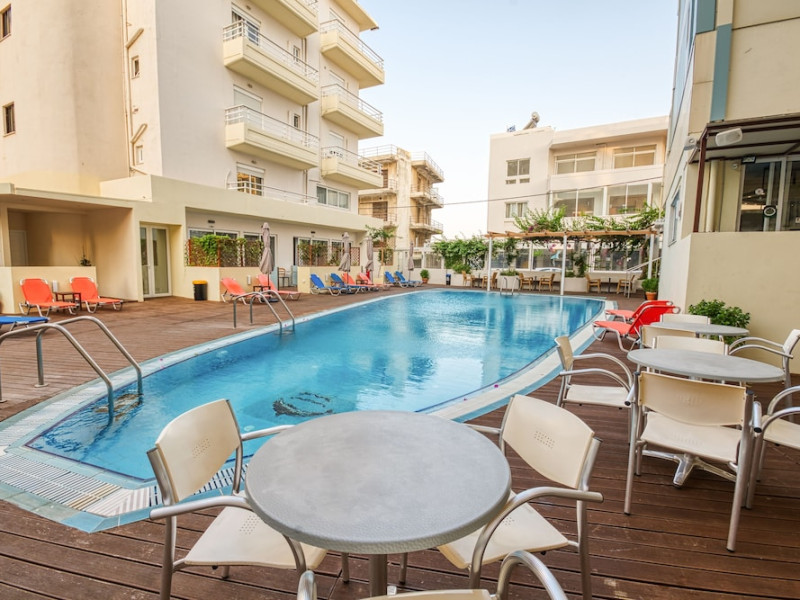 [Located in a quiet area of Rhodes, Arte Hotel is 50 meters from the beach and within walking distance of Rhodes town center. It offers air-conditioned rooms with balconies, satellite TV, refrigerators, complimentary wireless internet access, and private bathrooms with showers, complimentary toiletries, and hair dryers. Guests can enjoy a seasonal outdoor pool, a wood-decked terrace, a main restaurant serving Greek and international dishes, a bar/lounge, and a poolside bar. The hotel provides concierge services, dry cleaning/laundry services, a 24-hour front desk, and multilingual staff. Nearby attractions include Psaropoula Beach, Akti Miaouli Beach, and Kýmata Beach.] The Arte Hotel is a Tourist hotel. The nightlife/restaurants are easily accessible by taxi or bus from the hotel.
