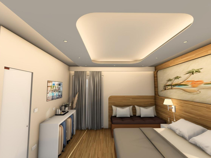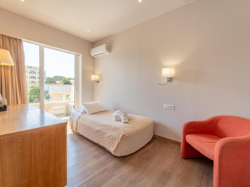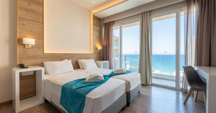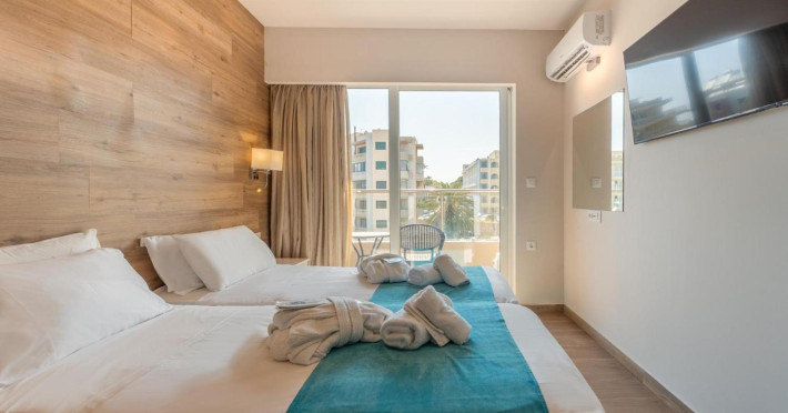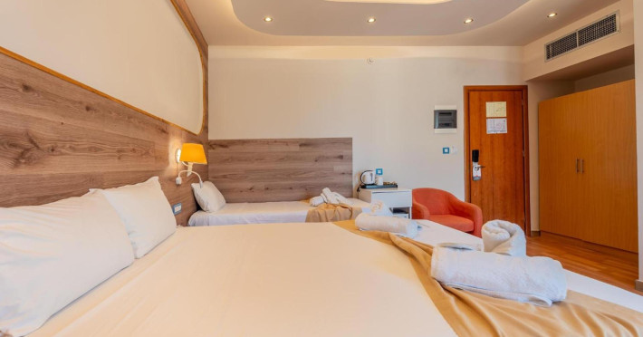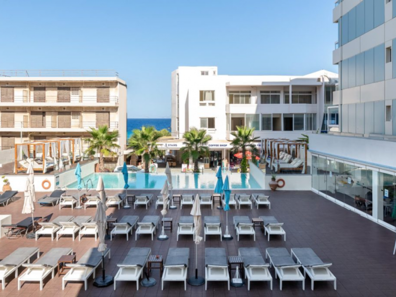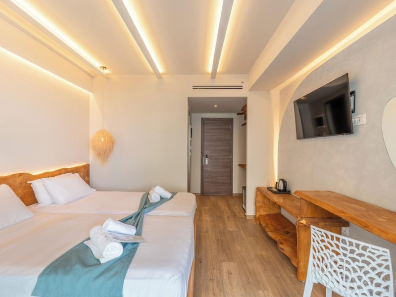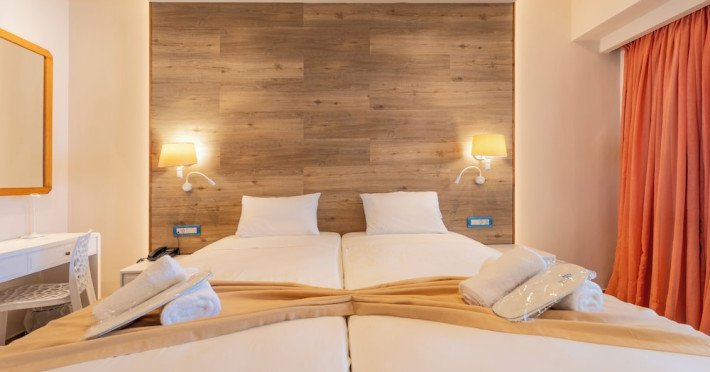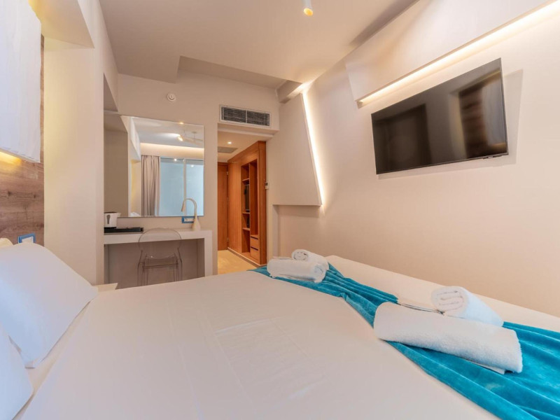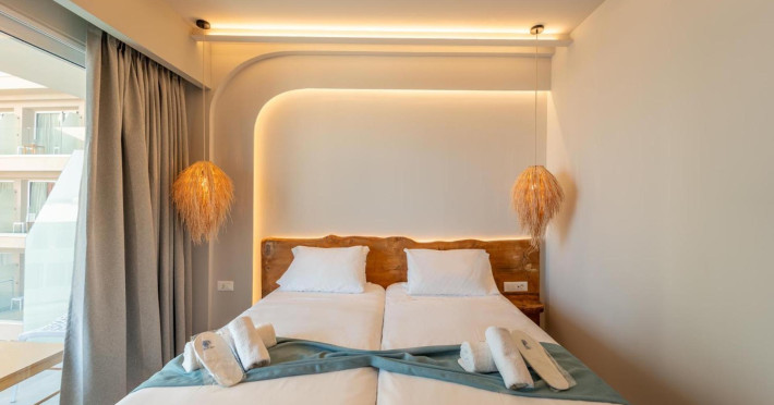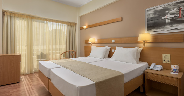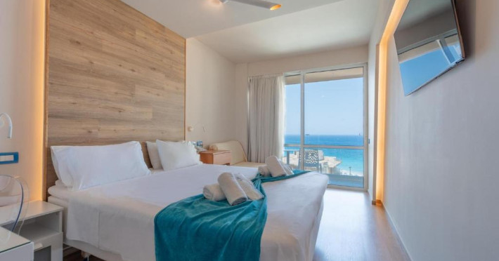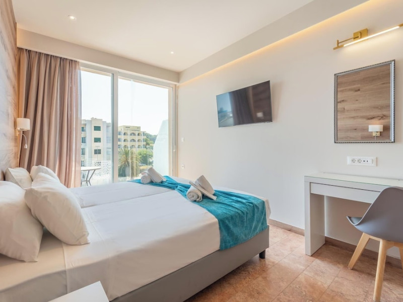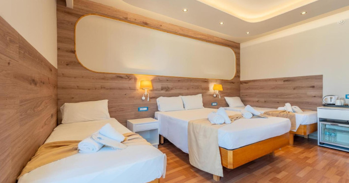 [Located in a quiet area of Rhodes, Arte Hotel is 50 meters from the beach and within walking distance of Rhodes town center. It offers air-conditioned rooms with balconies, satellite TV, refrigerators, complimentary wireless internet access, and private bathrooms with showers, complimentary toiletries, and hair dryers. Guests can enjoy a seasonal outdoor pool, a wood-decked terrace, a main restaurant serving Greek and international dishes, a bar/lounge, and a poolside bar. The hotel provides concierge services, dry cleaning/laundry services, a 24-hour front desk, and multilingual staff. Nearby attractions include Psaropoula Beach, Akti Miaouli Beach, and Kýmata Beach.] The Arte Hotel is a Tourist hotel. The nightlife/restaurants are easily accessible by taxi or bus from the hotel.