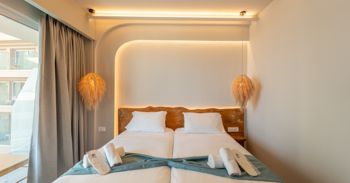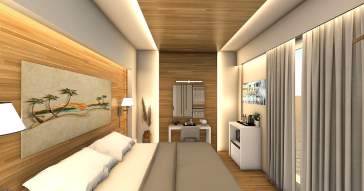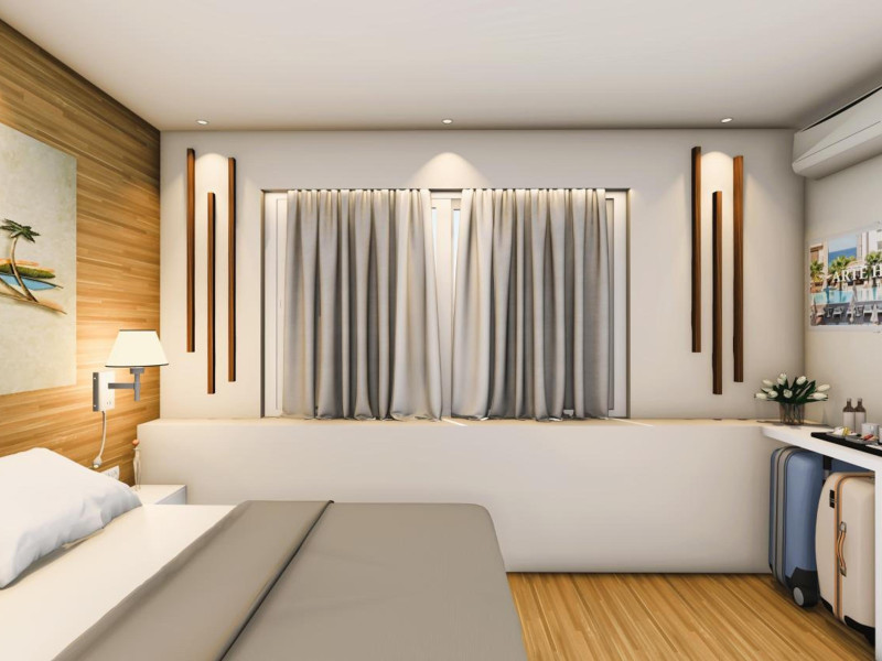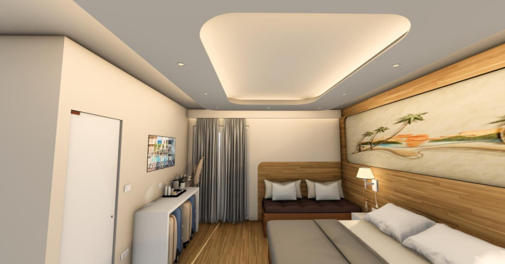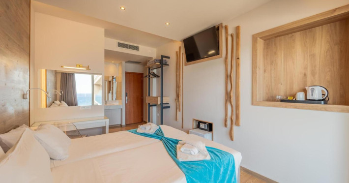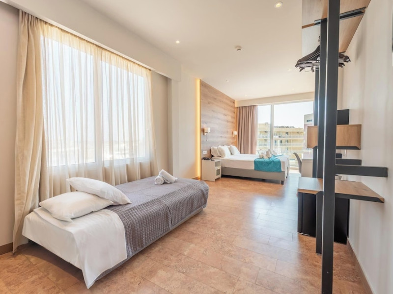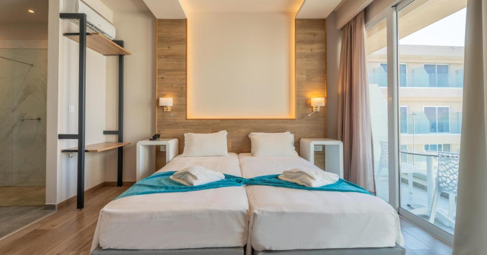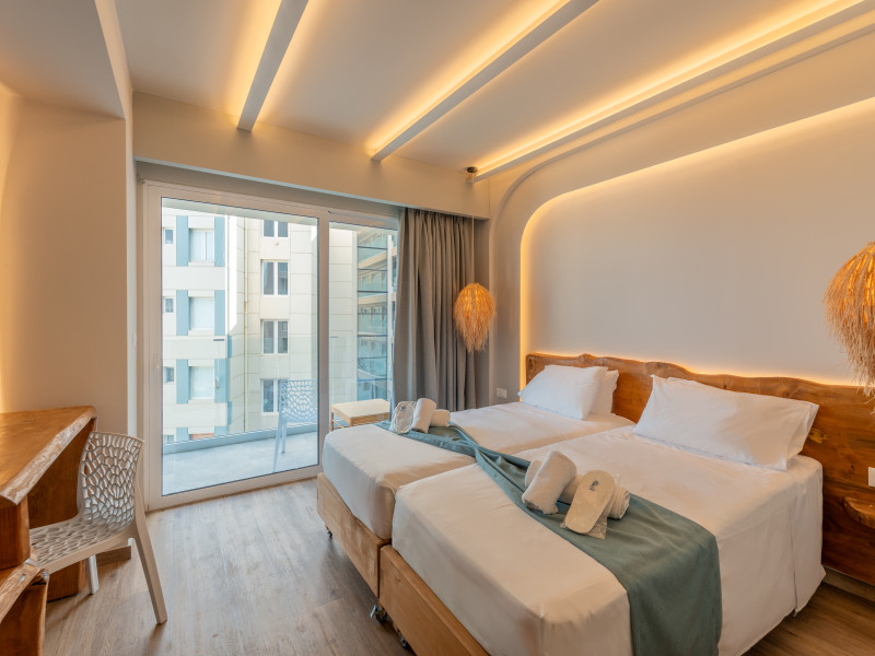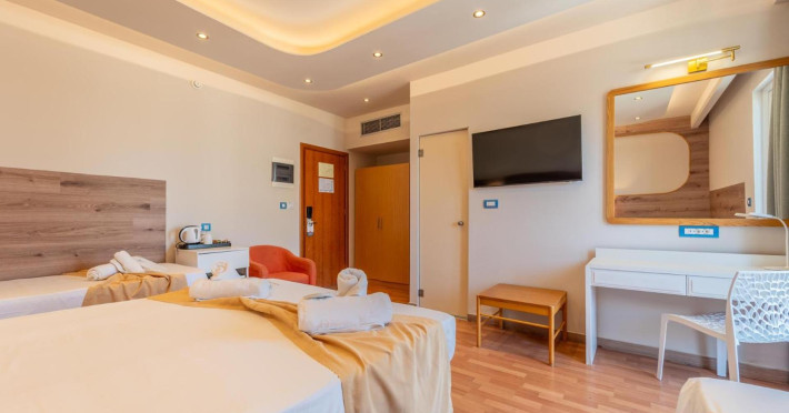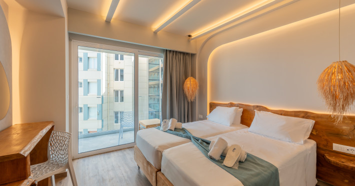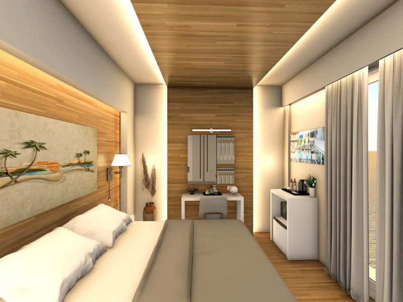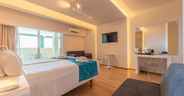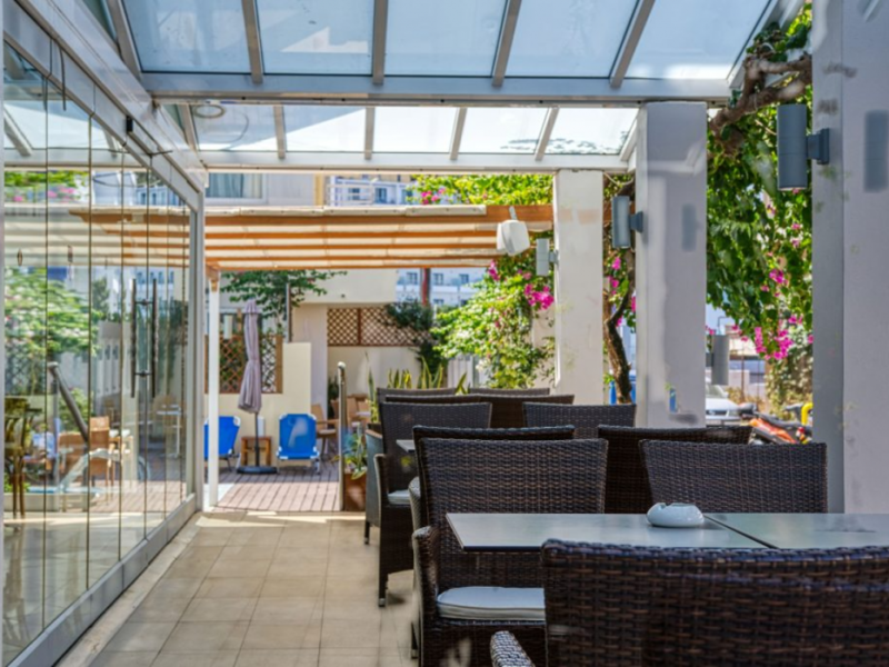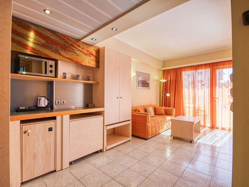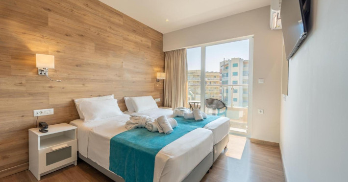 [Located in a quiet area of Rhodes, Arte Hotel is 50 meters from the beach and within walking distance of Rhodes town center. It offers air-conditioned rooms with balconies, satellite TV, refrigerators, complimentary wireless internet access, and private bathrooms with showers, complimentary toiletries, and hair dryers. Guests can enjoy a seasonal outdoor pool, a wood-decked terrace, a main restaurant serving Greek and international dishes, a bar/lounge, and a poolside bar. The hotel provides concierge services, dry cleaning/laundry services, a 24-hour front desk, and multilingual staff. Nearby attractions include Psaropoula Beach, Akti Miaouli Beach, and Kýmata Beach.] The Arte Hotel is a Tourist hotel. The nightlife/restaurants are easily accessible by taxi or bus from the hotel.