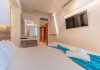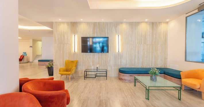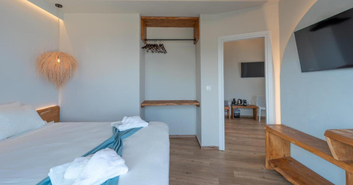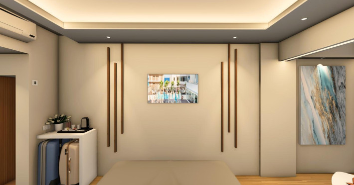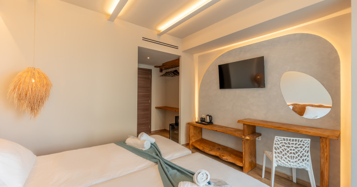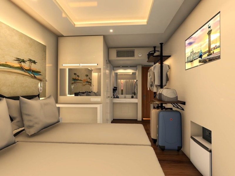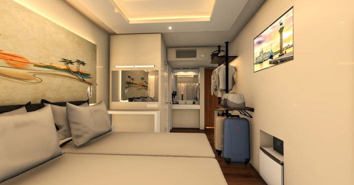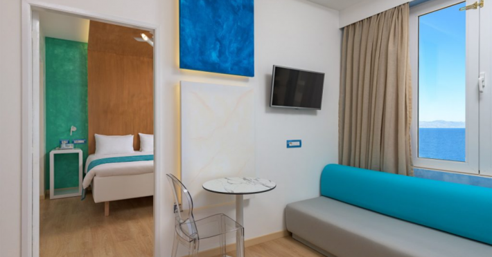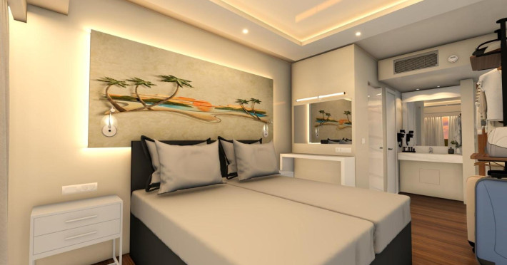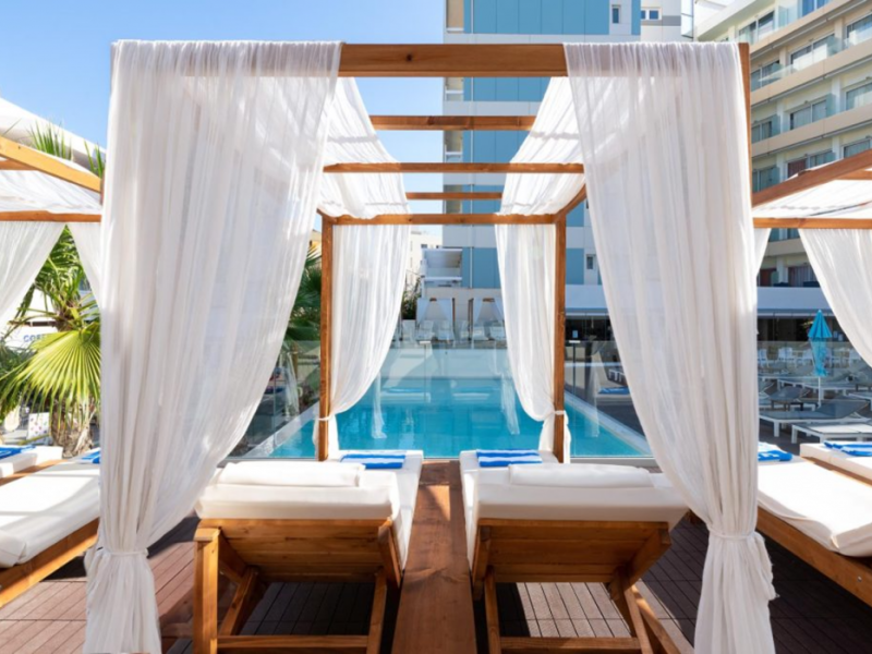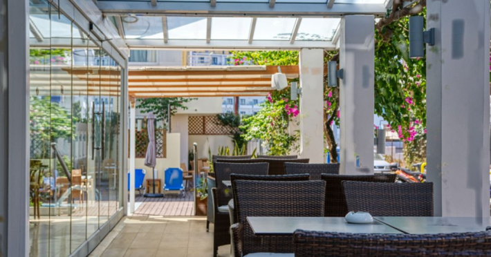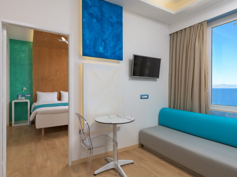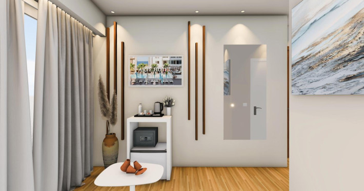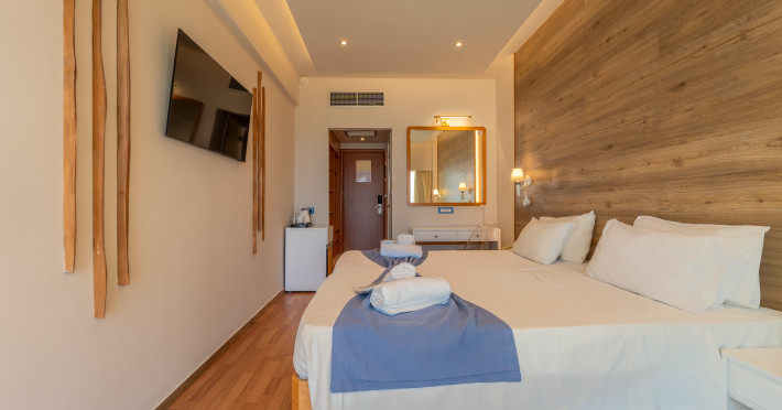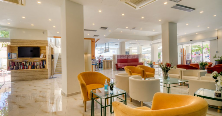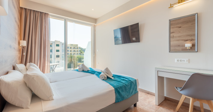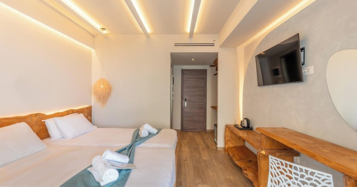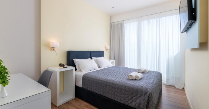 [Located in a quiet area of Rhodes, Arte Hotel is 50 meters from the beach and within walking distance of Rhodes town center. It offers air-conditioned rooms with balconies, satellite TV, refrigerators, complimentary wireless internet access, and private bathrooms with showers, complimentary toiletries, and hair dryers. Guests can enjoy a seasonal outdoor pool, a wood-decked terrace, a main restaurant serving Greek and international dishes, a bar/lounge, and a poolside bar. The hotel provides concierge services, dry cleaning/laundry services, a 24-hour front desk, and multilingual staff. Nearby attractions include Psaropoula Beach, Akti Miaouli Beach, and Kýmata Beach.] The Arte Hotel is a Tourist hotel. The nightlife/restaurants are easily accessible by taxi or bus from the hotel.