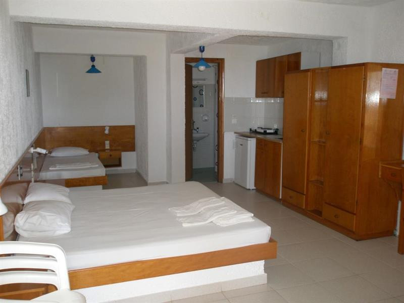 Artemis is a beautiful seaside hotel situated in the centre of Makry Gialos on the south east coast of Crete. It overlooks the gorgeous South Cretan Sea and has a private palm tree beach. Artemis Hotel is a traditional hotel which is found in a point of big natural beauty, in the south-east coast of Crete island. The hotel has built in a natural declivity, while the rooms are placed on hill stopping only in front of blue waters of Lybikos sea. The hotel also offers sunbeds and umbrellas on the beach and private parking for customers. There is a bar/restaurant which offers breakfast, meals, snacks, drinks and cocktails. The property is newly renovated and includes 35 spacious apartments with double rooms of 28 square metres, triple rooms of 35 square metres, or quadruple rooms of 40 square metres with two rooms. All apartments have a fully equipped kitchen with fridge, with TV and satellite TV, air conditioning and WiFi. All rooms are 15-30 metres from from the wonderful beach and have a stunning view towards the town and the South Cretan Sea. Location: Artemis is a beautiful seaside hotel situated in the centre of Makry Gialos on the south east coast of Crete. It overlooks the gorgeous South Cretan Sea and has a private palm tree beach. Your accommodation: Artemis Hotel is a traditional hotel which is found in a point of big natural beauty, in the south-east coast of Crete island. The hotel has built in a natural declivity, while the rooms are placed on hill stopping only in front of blue waters of Lybikos sea. The hotel also offers sunbeds and umbrellas on the beach and private parking for customers. There is a bar/restaurant which offers breakfast, meals, snacks, drinks and cocktails. Rooms: The property is newly renovated and includes 35 spacious apartments with double rooms of 28 square metres, triple rooms of 35 square metres, or quadruple rooms of 40 square metres with two rooms. All apartments have a fully equipped kitchen with fridge, with TV and satellite TV, air conditioning and WiFi. All rooms are 15-30 metres from from the wonderful beach and have a stunning view towards the town and the South Cretan Sea. Free sports and wellness: The beach is only 15 m and is ideal for swimming. Entertainment/Activities: There are many choices for swimming, restaurants, attractions and other activities in the nearby area. Meals/Drinks: The bar/restaurant offers breakfast, meals, snacks, drinks and cocktails. Official category: **CheckIn: 2.00 pm. CheckOut: 9.00 am