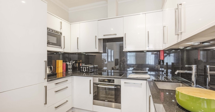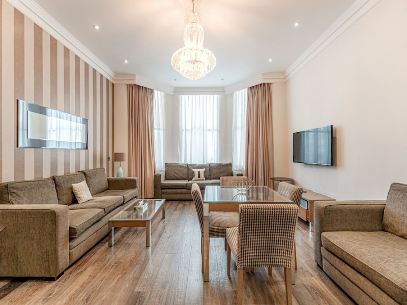 Ashburn Court Serviced Apartments, centrally located in Kensington, London, offer self-catering accommodation for business travelers and families. The apartments, ranging from studios to three-bedroom suites, are a short walk from Gloucester Road and within walking distance of museums and shops. All apartments feature complimentary Wi-Fi, air conditioning, a fully equipped kitchen with an oven, microwave, and dishwasher, and a bathroom with complimentary toiletries and a hairdryer. Additional amenities include a flat-screen TV, DVD player, direct-dial telephone, in-room safe, iron with ironing board, and a washer/dryer. A 24-hour reception/concierge service, lifts, maid service, a secure entry system, dry cleaning/laundry services, and multilingual staff are available. Baby cots and highchairs are available upon request. The Ashburn Court is a hotel.