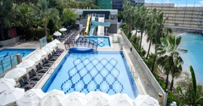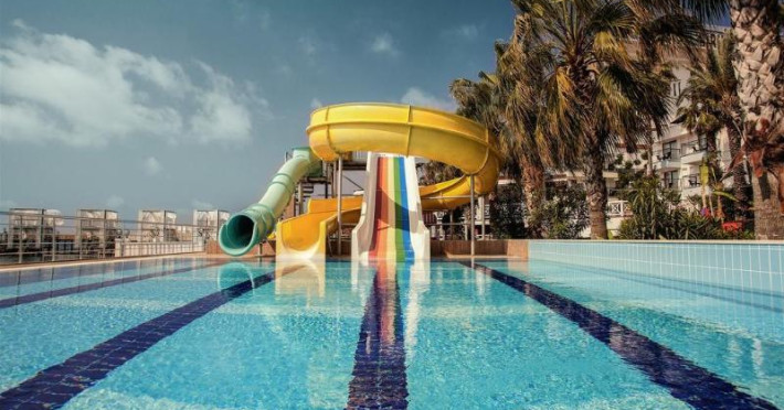 The hotel has 250 non-smoking rooms and includes a lift and a reception desk. A car hire service and medical assistance are available. Wireless internet access (for a fee) is provided to guests. Everyday necessities can be purchased at the supermarket. Children can enjoy the playground.