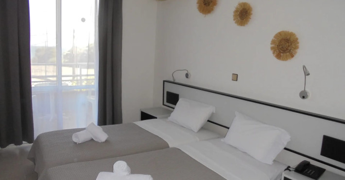 The Simply decorated 37 rooms of Asterias Bay Hotel aims to make your visit as relaxing and enjoyable as possible. The hotel is situated approximately 150 m from Theologos sandy-pebble Beach. The center of Theologos with many shopping and entertainment options is located about 800 m away.Asterias Bay Hotel features a lobby with reception, a pool, a snack bar and an on-site restaurant amidst its blossomed garden.Our hotel is ideal to guests looking for a relaxing peaceful holiday.The hotel provided accommodation in double rooms with private facilities (bathroom, toilet) and with possibility of extra beds. Equipped with air conditioning, TV, telephone and private balcony, allowing you to rest and refresh with ease.Free private parking is possible on site.Asterias Bay Hotel puts the best of Tholos at your fingertips, making your stay both relaxing and enjoyable.