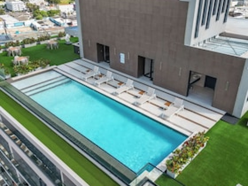 Enjoy recreation amenities such as an outdoor pool or take in the view from a rooftop terrace.