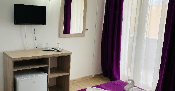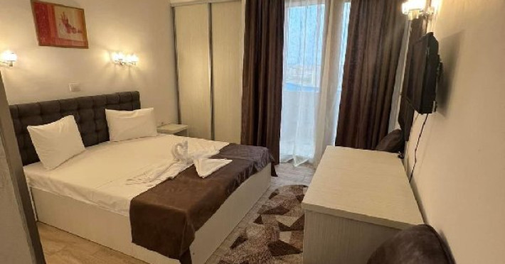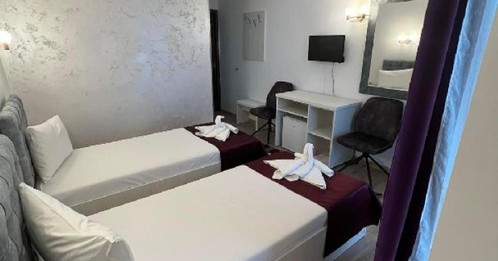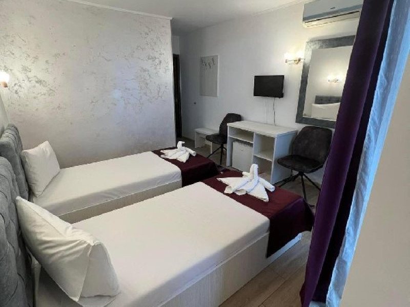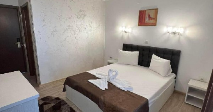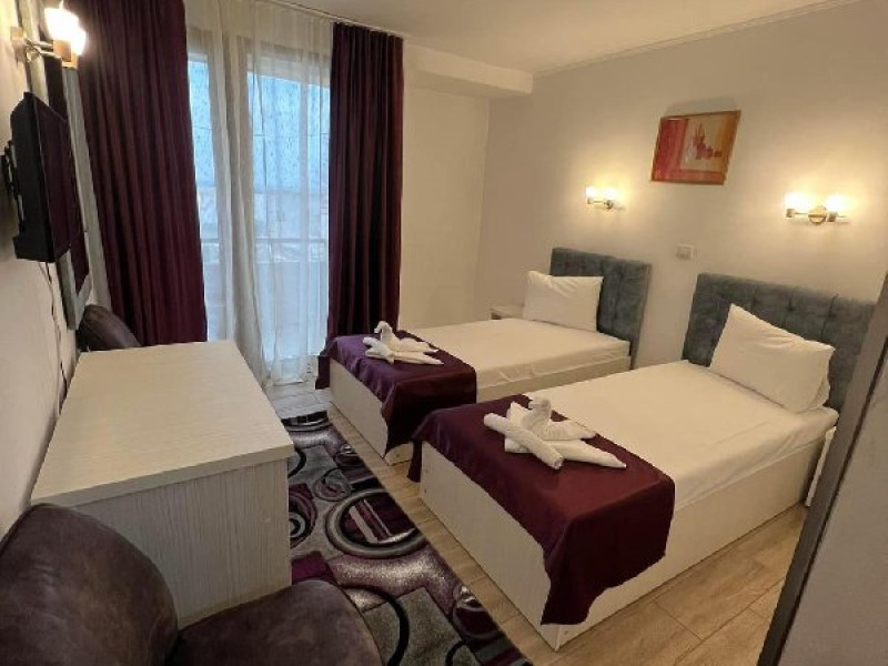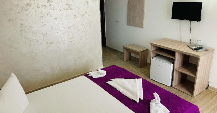 Dotari camere Camerele pot avea pat matrimonial (160x200) sau doua paturi twin (90x200). Camere duble de la parter - au TV, minibar, telefon aer conditionat si baie proprie. Acestea nu au balcon. Camerele duble de la etaj - au TV, minibar, aer conditionat, mobilier nou, mocheta, telefon, baie proprie si balcon.