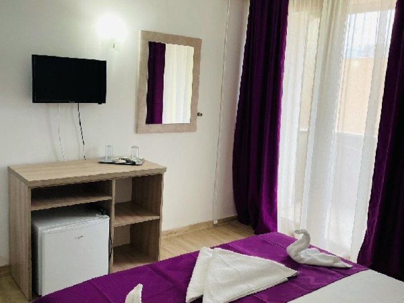 Dotari si servicii Hotelul are restaurant, bar de zi, parcare, seif la receptie. In camere accesul se face pe baza cartelelor magnetice, o parte din camere au mocheta si o parte gresie. Internetul este disponibil doar in spatiile publice. Parcare in limita disponibilitatii. Sezlonguri pe plaja privata din fata hotelului, plaja Porto Beach, 20 lei / sezlong. Sezlongurile se acorda incepand cu ziua urmatoare celei de check-in , inclusiv in ziua de check-out. Nu accepta animale de companie.