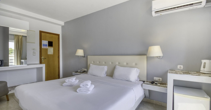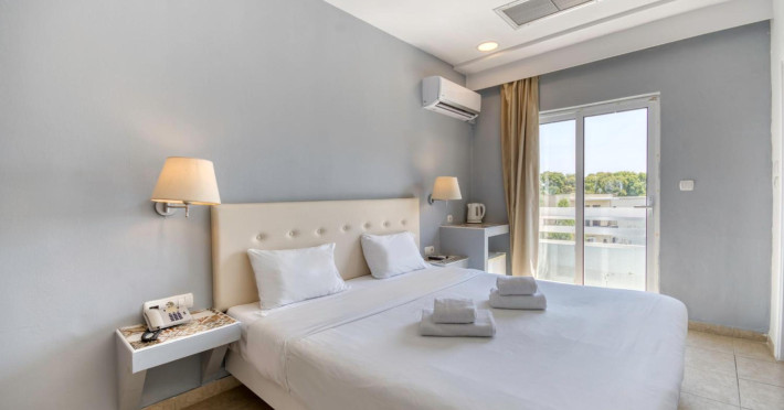Located in the heart of Rhodes Town, Astron Hotel offers air-conditioned rooms with complimentary Wi-Fi, flat-screen TVs with satellite programming, desks, safes, minibars, refrigerators, and private bathrooms with showers, complimentary toiletries, and hair dryers. Guests can enjoy a seasonal outdoor pool, sauna, fitness center, communal living room, terrace, bar, and a coffee shop/cafe, as well as a snack bar/deli. A complimentary continental breakfast is served daily. The hotel is situated close to Elli Beach and other popular attractions, including the Rhodes Casino and the medieval area. Amenities include a 24-hour front desk, luggage storage, and free self-parking. The hotel offers a paid airport shuttle service to Rhodes International Airport, which is 13 km away. The Astron Hotel is a hotel.