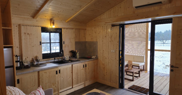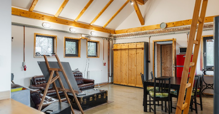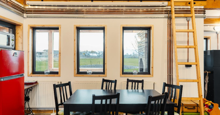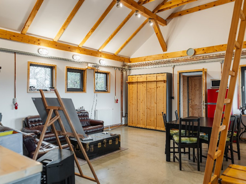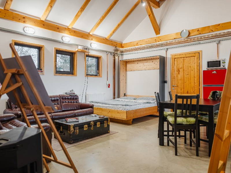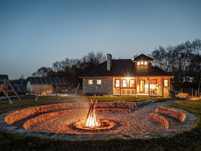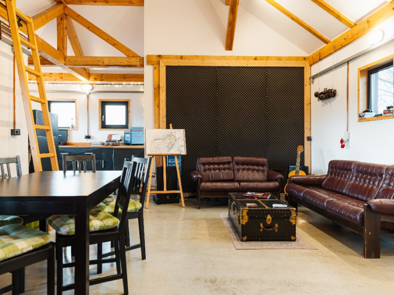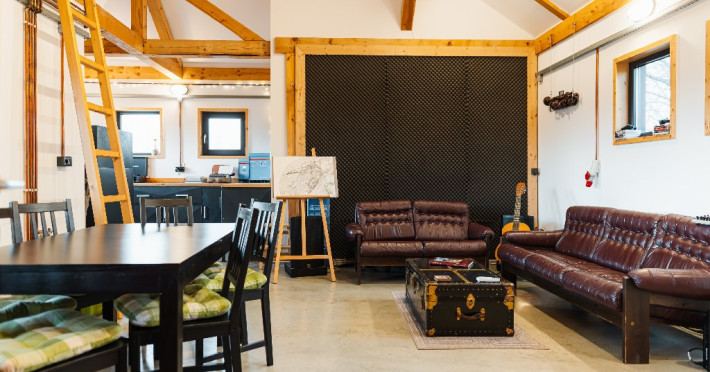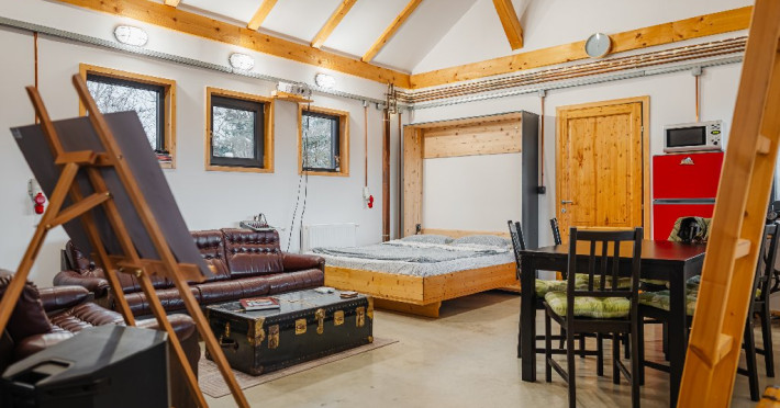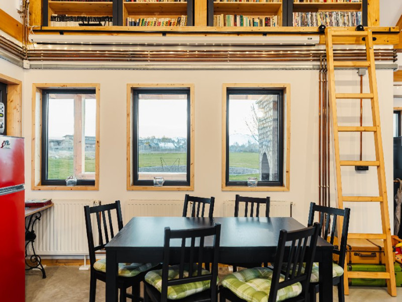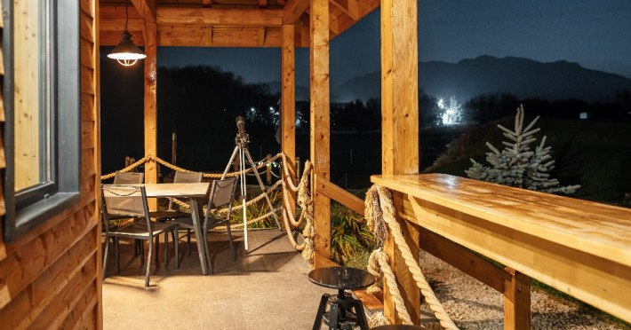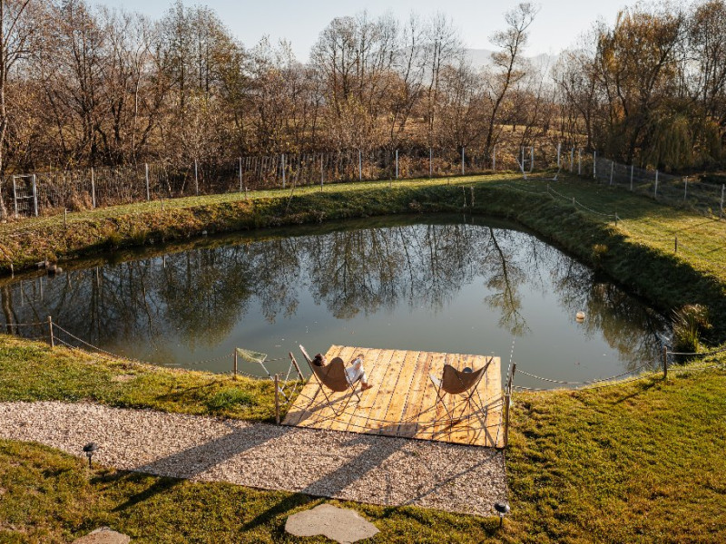Atelier ReCreation Village este situat intr-un peisaj pitoresc, oferind o evadare linistita departe de agitatia orasului. Aflat pe drumul DN73, intre Rasnov si Bran, acest refugiu fermecator este baza ideala pentru a explora atractiile si frumusetea naturala a zonei. Relaxare in aer liber In fata cladirii principale, Casuta cu Atelier, veti descoperi o terasa spatioasa deasupra unui iaz cu pesti koi. Aceasta oaza in aer liber include un bar acoperit si o zona pentru gratar, fiind locul perfect pentru a va relaxa admirand privelistile impresionante ale lacului din apropiere si ale muntilor Bucegi si Piatra Craiului. Oaspetii pot folosi gratuit doua biciclete pentru a explora imprejurimile pitoresti. Seara, va puteti bucura de un foc de tabara in zona special amenajata sau de o baie relaxanta in ciubarul cu apa calda, ambele disponibile contra cost. Confort creativ in interior Cladirea principala este gandita special pentru a inspira creativitate si a oferi oportunitati de relaxare si distractie. Printre facilitati se numara o biblioteca, un videoproiector, un PlayStation, diverse jocuri si un banc de lucru, ideale pentru ateliere, sesiuni de brainstorming sau momente de ragaz. Casa include si o baie cu dus, precum si un studio cu chicineta. Locurile de dormit din Casuta cu Atelier includ: -Un pat dublu in atelier -O canapea extensibila in a doua camera -Un alt pat dublu in mansarda open-space Casute primitoare si farmec hobbit Proprietatea dispune, de asemenea, de trei casute incantatoare, fiecare cu o suprafata de 30 de metri patrati. Fiecare casuta include doua dormitoare, un living si o chicineta, oferind o retragere privata si confortabila pentru familii sau grupuri mici. Pentru un plus de magie, casuta in stil hobbit este disponibila ca optiune suplimentara, oferind loc pentru inca doua persoane si aducand o nota de poveste sederii dumneavoastra. Poarta catre aventura Fie ca sunteti in cautarea relaxarii sau a aventurii, Atelier ReCreation Village va ofera combinatia perfecta de farmec, confort si acces la cele mai captivante atractii din regiune.