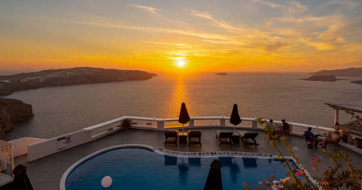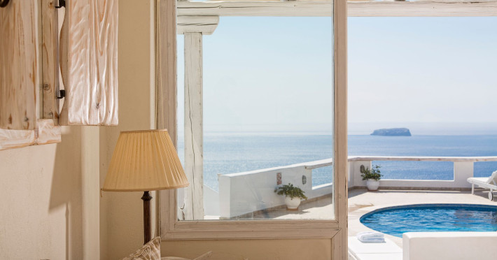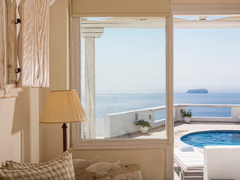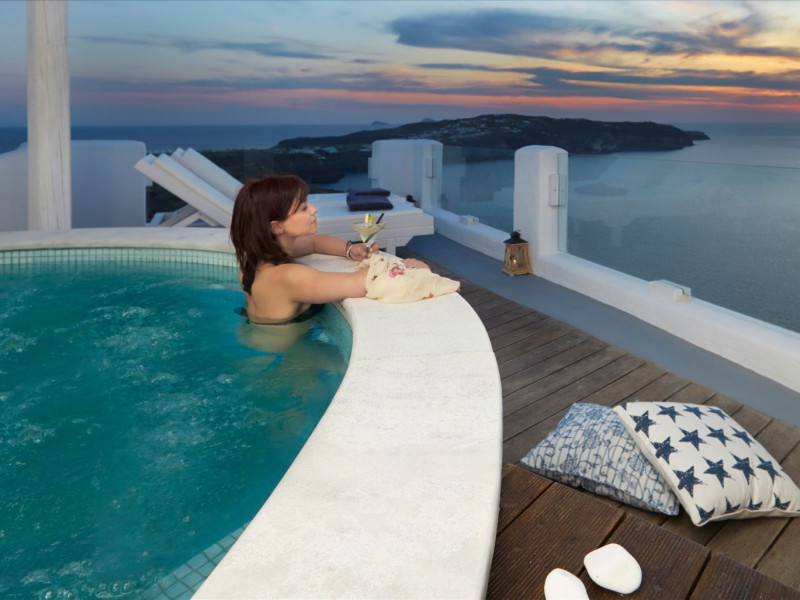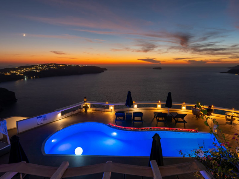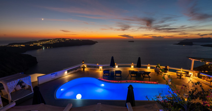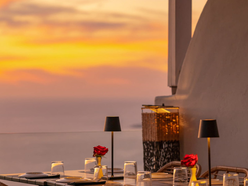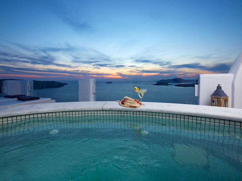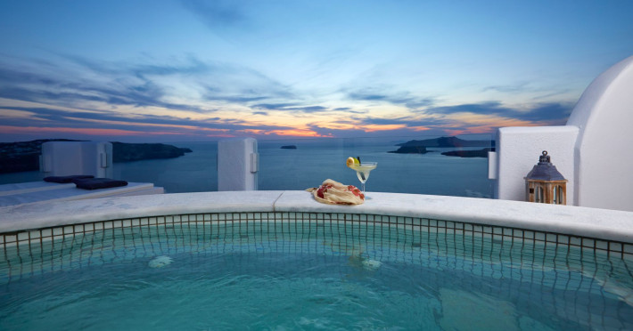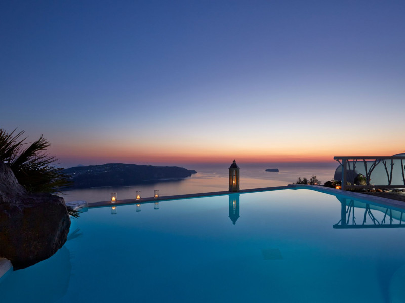 A compelling blend of unsurpassed location and legendary old-school hospitality, Athermi Suites invites you to experience Santorini at its purest and most overwhelming. Let the professional team welcome and pamper you at what is more than just a place to stay.As soon as you cross the picturesque wooden gates of Athermi Suites you will feel the embrace of its warm, personalised and discreet service that will make you feel right at home. The simple, elegant interiors in the internationally famous local Cycladic style complement the majestic views over the Aegean in absolute harmony, as all suites boast big verandas facing the sea.For a refreshing dip you may opt for the property’s sensational pool, one of the largest in the Caldera. But whatever you do, make sure you do not miss the opportunity to indulge in Maria’s special treats, prepared especially for you. In Santorini’s lesser known Megalohori village, couples and families will discover a slice of paradise!