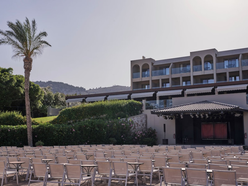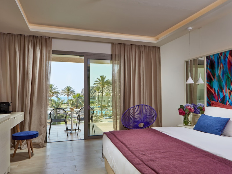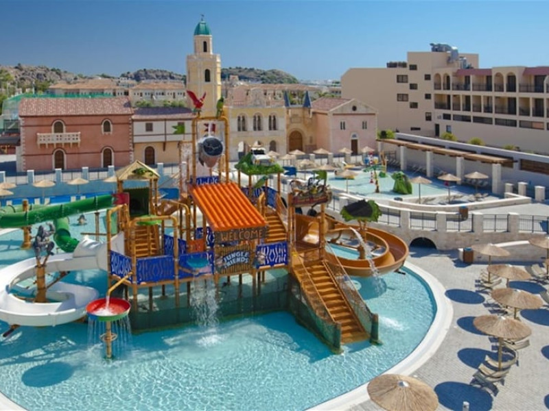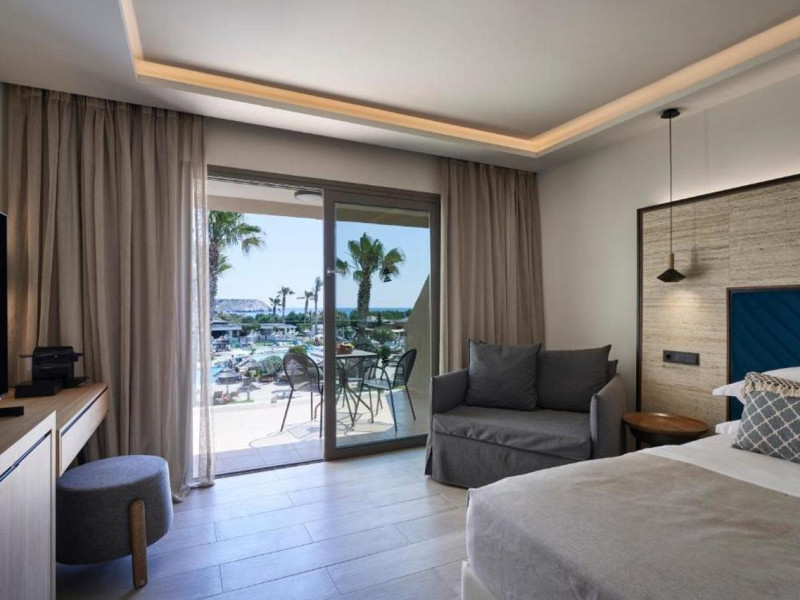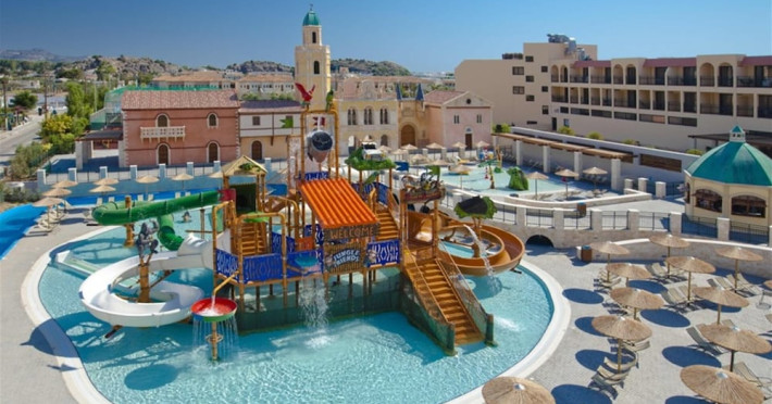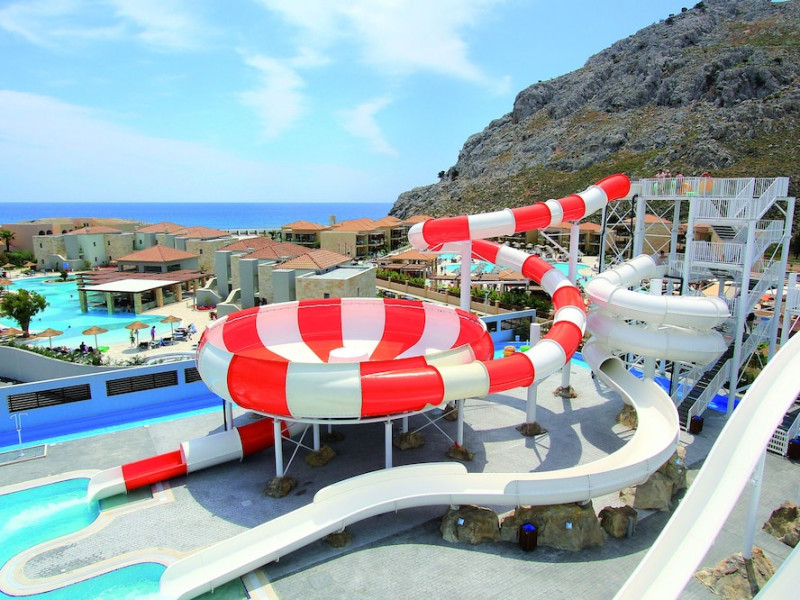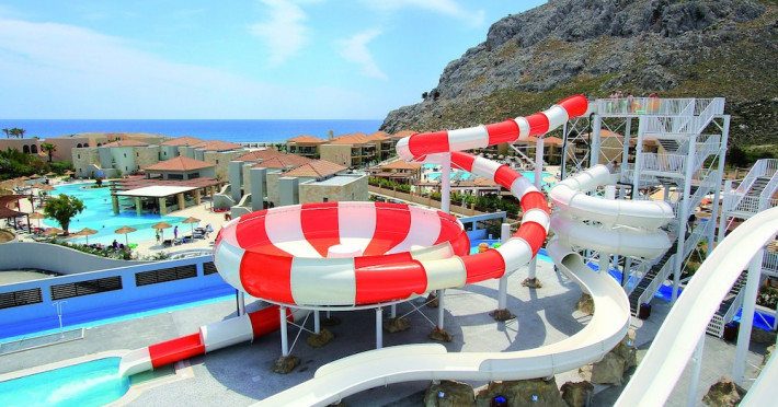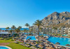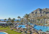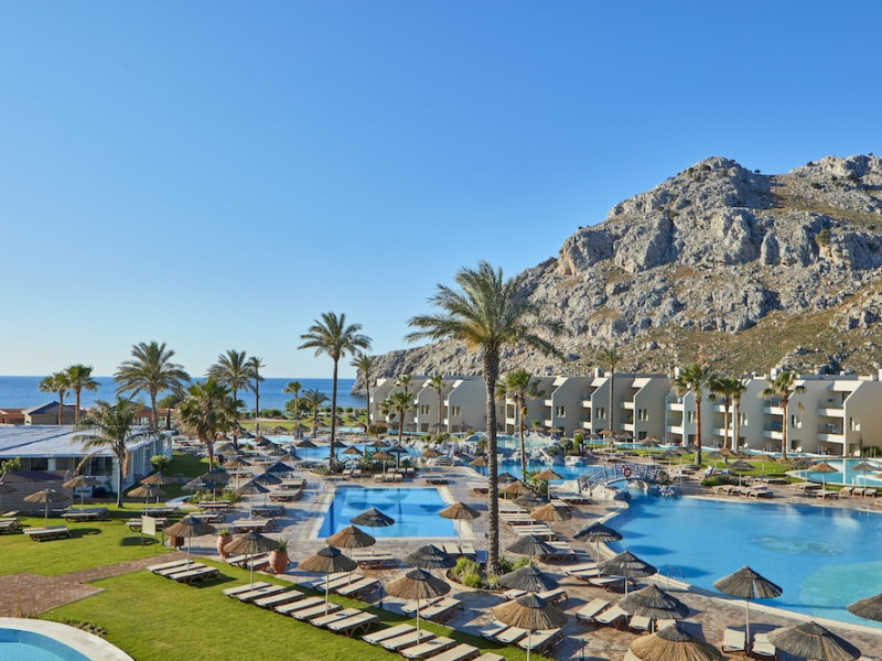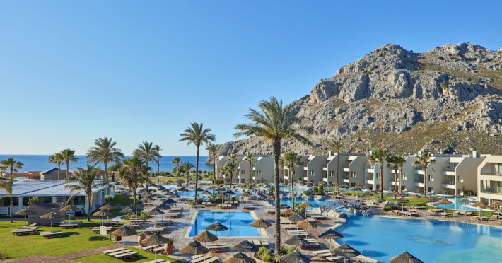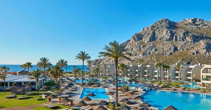 Atlantica Aegean Blue hotel consists of a main building and bungalows located in the quiet resort of Kolymbia, next to the beach and a short walk away from the centre of Kolymbia with its bars, restaurants and local shops (approximately 800 m). The nearest bus stop is just next to the hotel with regular connection to Rhodes Town (27 km), Lindos (35 km) and the lively tourist resort of Faliraki (8 km). The airport is approximately 36 km from the property.The hotel facilities and services include reception, lobby area with lifts and a lounge bar with terrace, internet corner (coin operated), TV/video room, mini market with souvenirs, restaurant with terrace, beach tavern, outdoor pools, open air Jacuzzi, separate children’s pool, playground, sun terraces and gardens. The hotel also features a fitness centre and a health club with sauna and massages service (on request and with extra charge).The rooms are equipped with A/C, telephone, mini fridge, TV, safe (with extra charge), balcony or terrace and bathroom with bathtub/shower and hair dryer. Linen and towel changed three times per week. Laundry service and ironing service are also available (with extra charge).**Air conditioning is working from June to September.****The All Inclusive-concept includes all meals (breakfast, lunch, dinner and snacks) and mealtime drinks such as soft drinks, beer, wine, water and alcoholic drinks, all of local brands. Drinks are served from morning until late evening (approx until 22.-24.00 hrs). Opening times vary between different hotels. In certain hotels the activities program is also included.**The hotel has parking facilities.Address: 85103 Kolymbia, Rhodes, Greece.