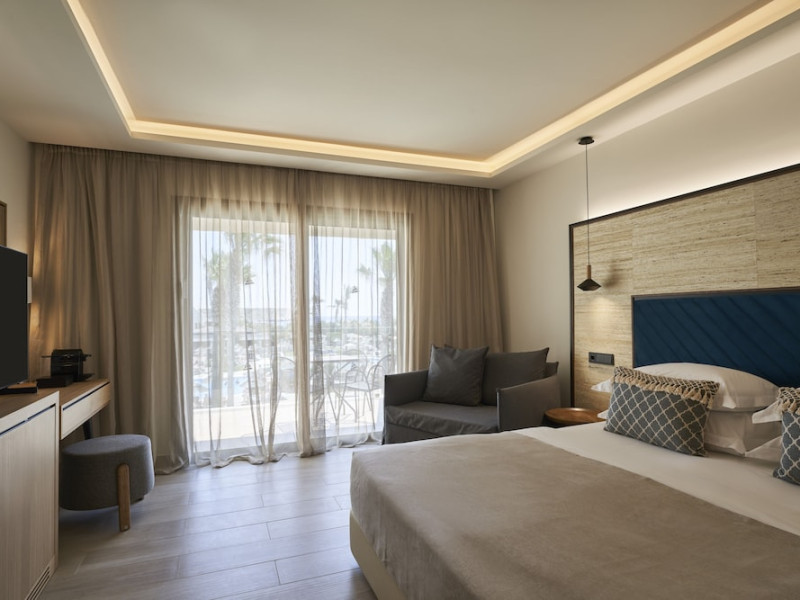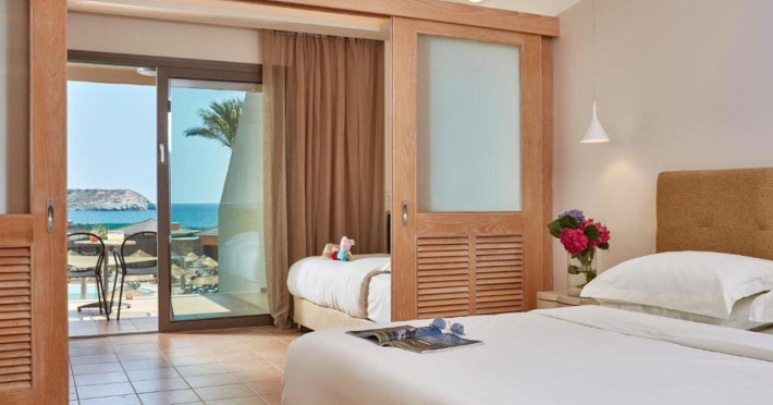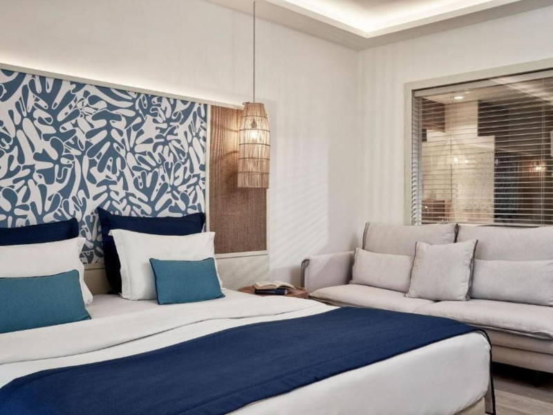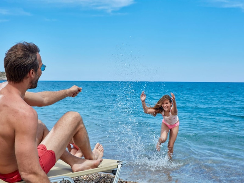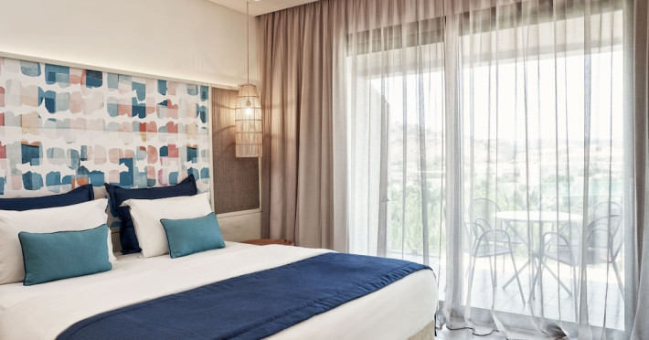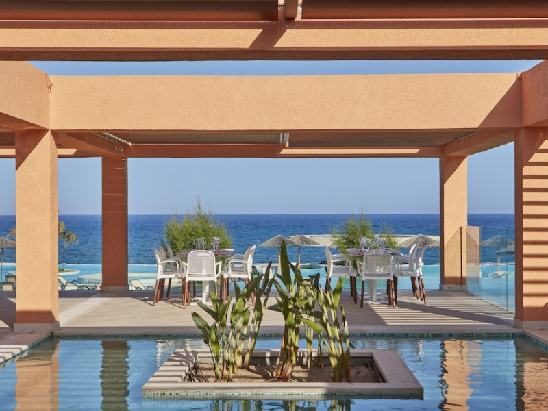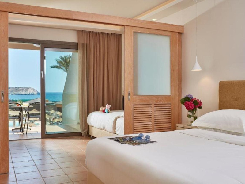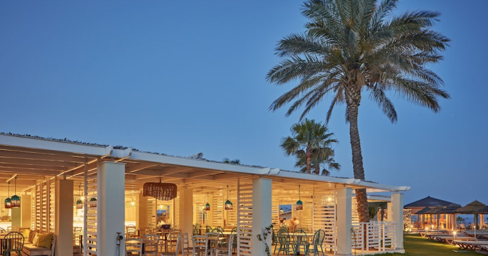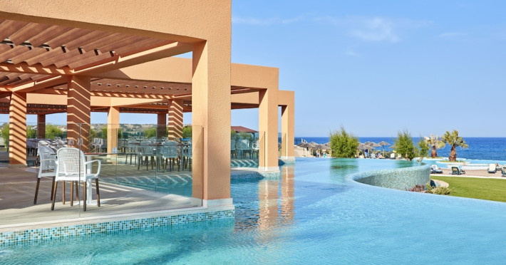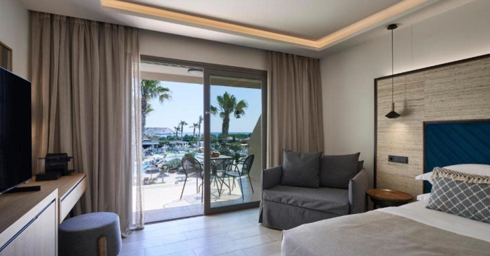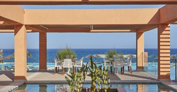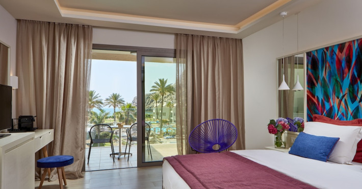 Atlantica Aegean Blue hotel consists of a main building and bungalows located in the quiet resort of Kolymbia, next to the beach and a short walk away from the centre of Kolymbia with its bars, restaurants and local shops (approximately 800 m). The nearest bus stop is just next to the hotel with regular connection to Rhodes Town (27 km), Lindos (35 km) and the lively tourist resort of Faliraki (8 km). The airport is approximately 36 km from the property.The hotel facilities and services include reception, lobby area with lifts and a lounge bar with terrace, internet corner (coin operated), TV/video room, mini market with souvenirs, restaurant with terrace, beach tavern, outdoor pools, open air Jacuzzi, separate children’s pool, playground, sun terraces and gardens. The hotel also features a fitness centre and a health club with sauna and massages service (on request and with extra charge).The rooms are equipped with A/C, telephone, mini fridge, TV, safe (with extra charge), balcony or terrace and bathroom with bathtub/shower and hair dryer. Linen and towel changed three times per week. Laundry service and ironing service are also available (with extra charge).**Air conditioning is working from June to September.****The All Inclusive-concept includes all meals (breakfast, lunch, dinner and snacks) and mealtime drinks such as soft drinks, beer, wine, water and alcoholic drinks, all of local brands. Drinks are served from morning until late evening (approx until 22.-24.00 hrs). Opening times vary between different hotels. In certain hotels the activities program is also included.**The hotel has parking facilities.Address: 85103 Kolymbia, Rhodes, Greece.