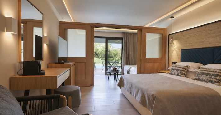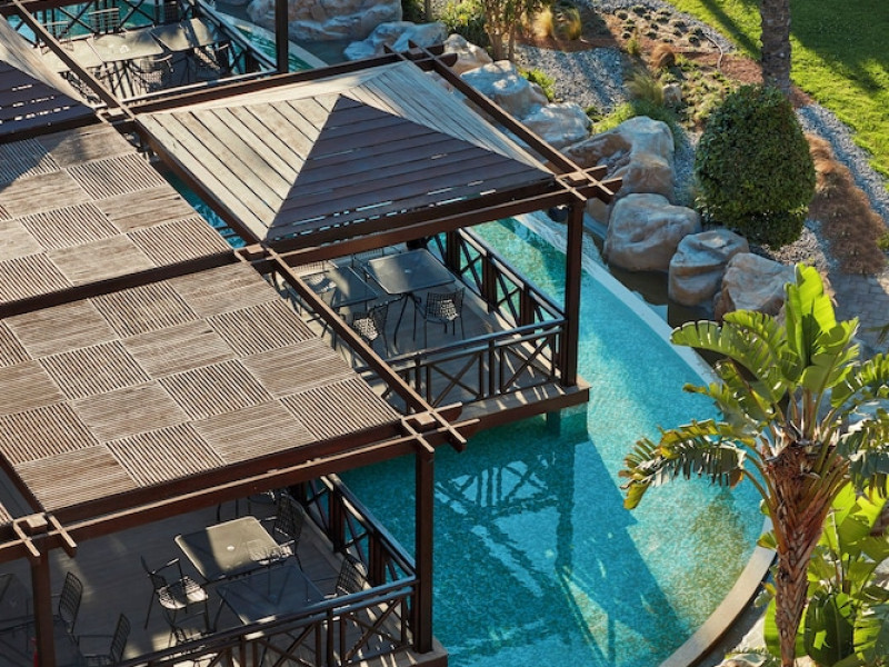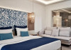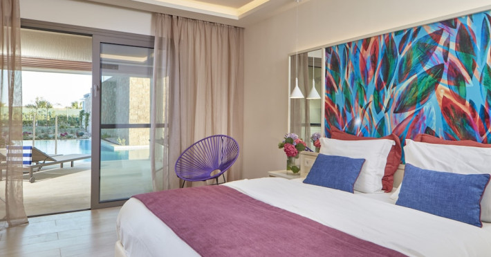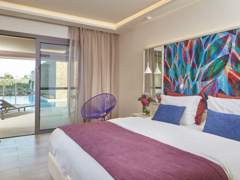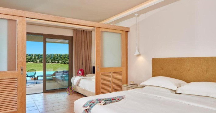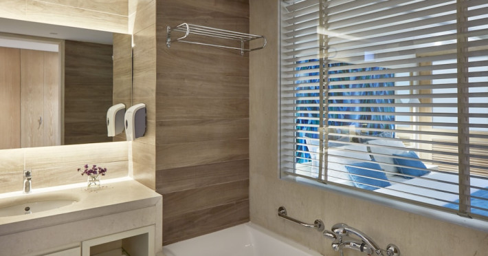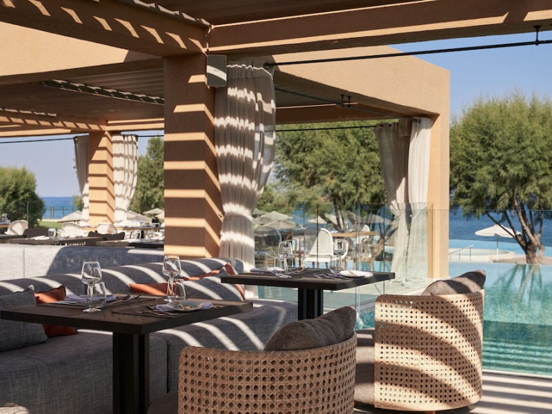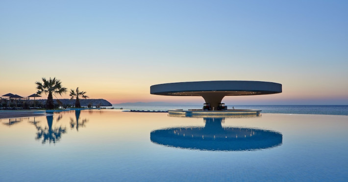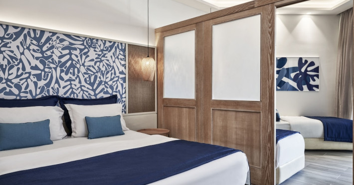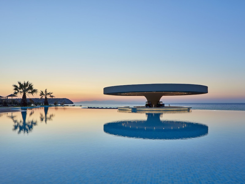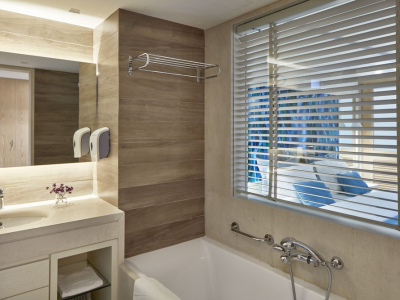Atlantica Aegean Blue hotel consists of a main building and bungalows located in the quiet resort of Kolymbia, next to the beach and a short walk away from the centre of Kolymbia with its bars, restaurants and local shops (approximately 800 m). The nearest bus stop is just next to the hotel with regular connection to Rhodes Town (27 km), Lindos (35 km) and the lively tourist resort of Faliraki (8 km). The airport is approximately 36 km from the property.The hotel facilities and services include reception, lobby area with lifts and a lounge bar with terrace, internet corner (coin operated), TV/video room, mini market with souvenirs, restaurant with terrace, beach tavern, outdoor pools, open air Jacuzzi, separate children’s pool, playground, sun terraces and gardens. The hotel also features a fitness centre and a health club with sauna and massages service (on request and with extra charge).The rooms are equipped with A/C, telephone, mini fridge, TV, safe (with extra charge), balcony or terrace and bathroom with bathtub/shower and hair dryer. Linen and towel changed three times per week. Laundry service and ironing service are also available (with extra charge).**Air conditioning is working from June to September.****The All Inclusive-concept includes all meals (breakfast, lunch, dinner and snacks) and mealtime drinks such as soft drinks, beer, wine, water and alcoholic drinks, all of local brands. Drinks are served from morning until late evening (approx until 22.-24.00 hrs). Opening times vary between different hotels. In certain hotels the activities program is also included.**The hotel has parking facilities.Address: 85103 Kolymbia, Rhodes, Greece.