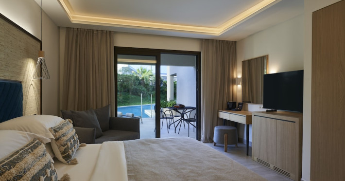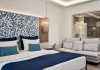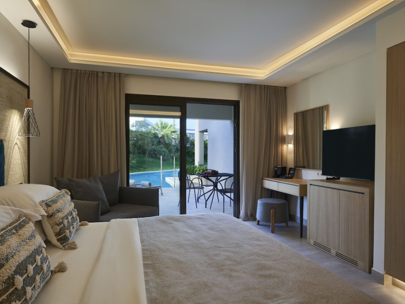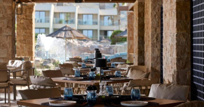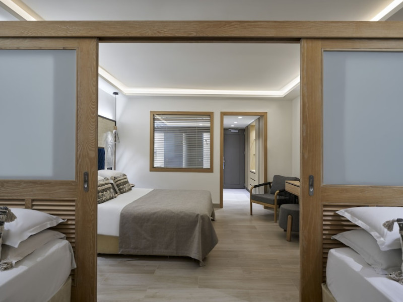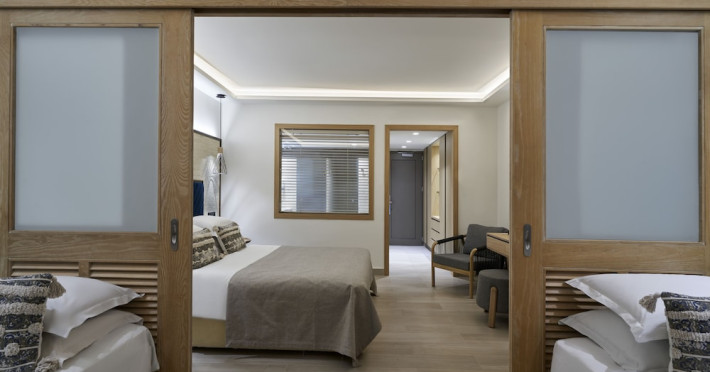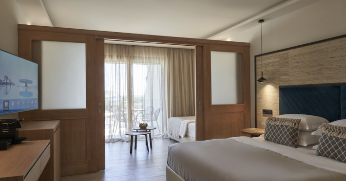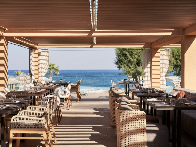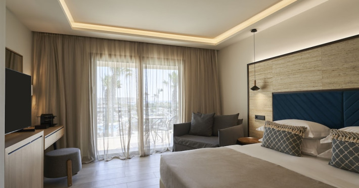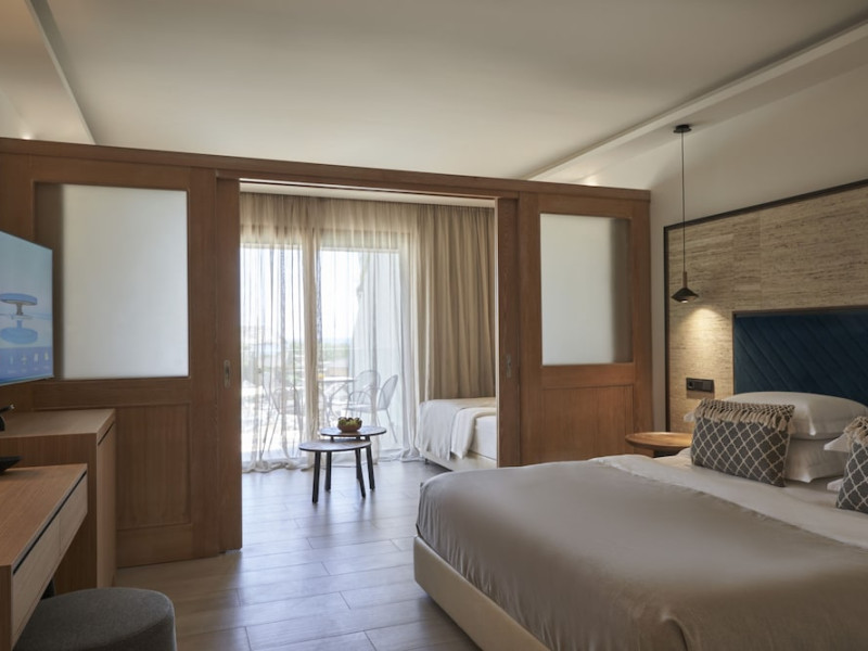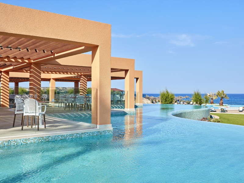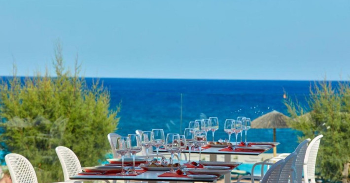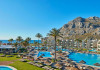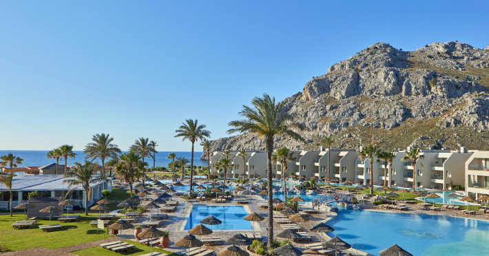 Located on the beachfront in Kolimbia, Rhodes, Atlantica Aegean Blue - All Inclusive offers an all-inclusive experience with access to multiple restaurants and bars, including poolside options. Guests can enjoy a complimentary local cuisine breakfast. The property features a water park, seasonal outdoor pool, sauna, fitness center, and an outdoor tennis court. Other amenities include complimentary wireless internet access, concierge services, an arcade/game room, a 24-hour front desk, dry cleaning/laundry services, and free self-parking. The air-conditioned rooms, totaling 397, are equipped with LCD televisions, complimentary wireless internet access, and private bathrooms with complimentary toiletries and hair dryers. Conveniences include blackout drapes/curtains. The hotel is closed between November 7 and March 27. It is located within a 15-minute drive of Tsambika Beach. The Atlantica Aegean Blue is a hotel.