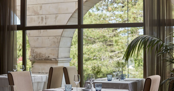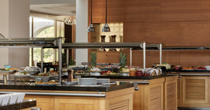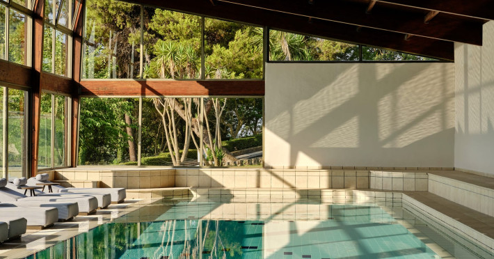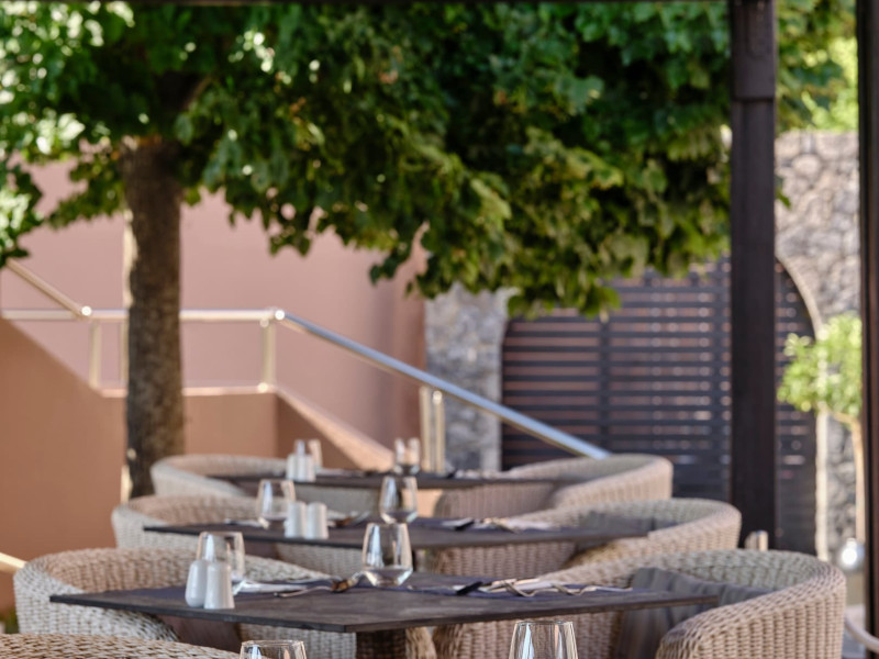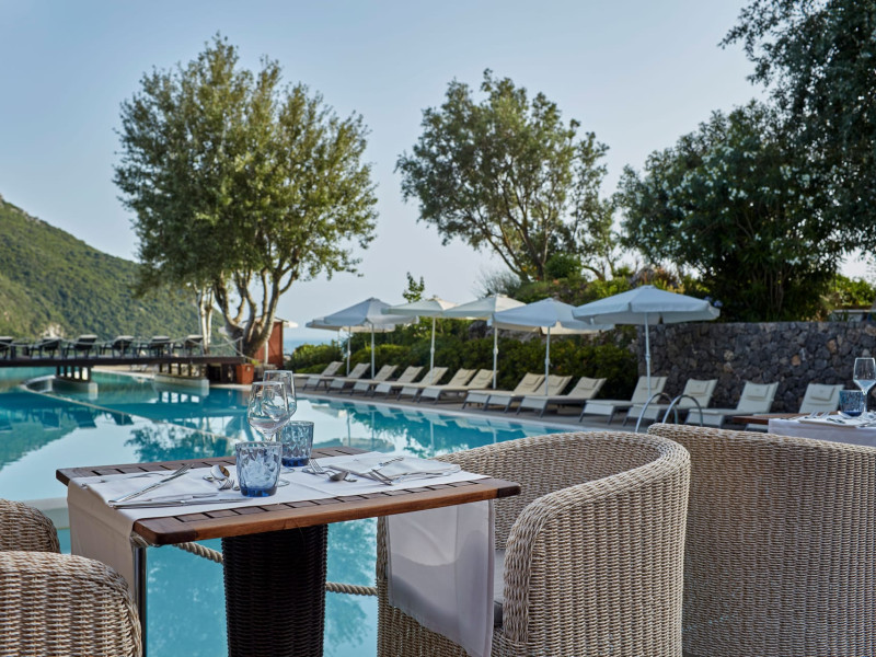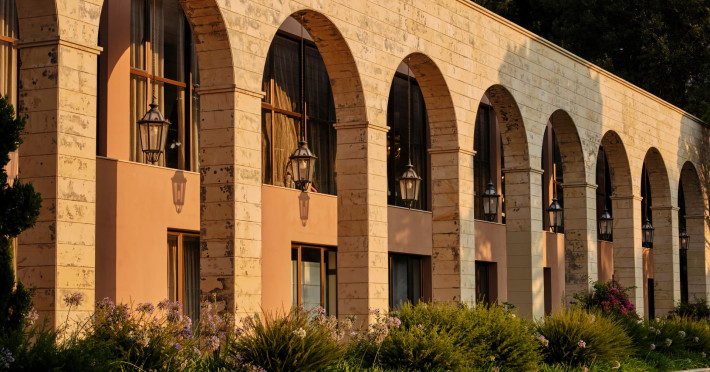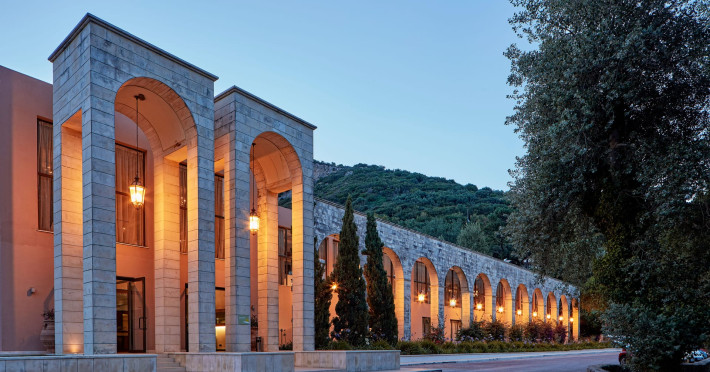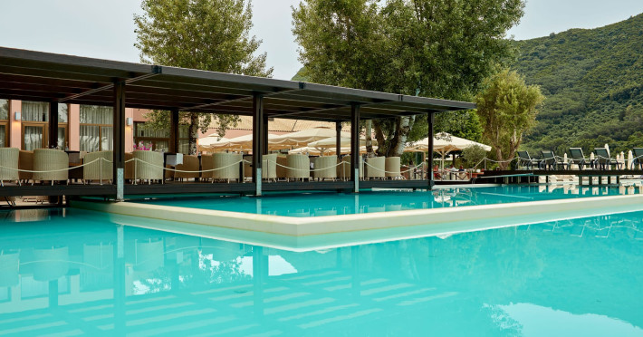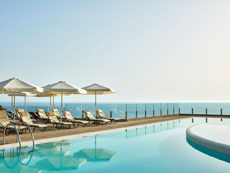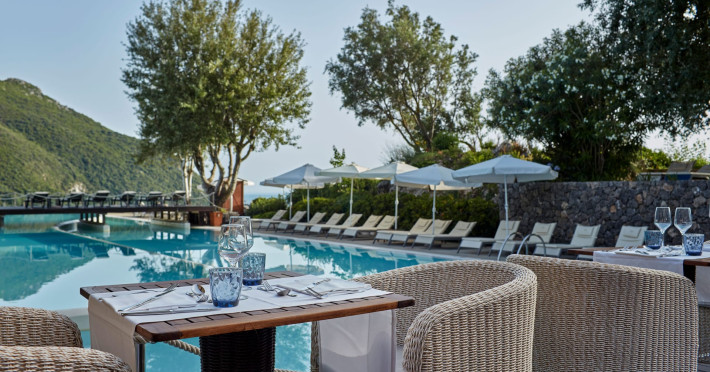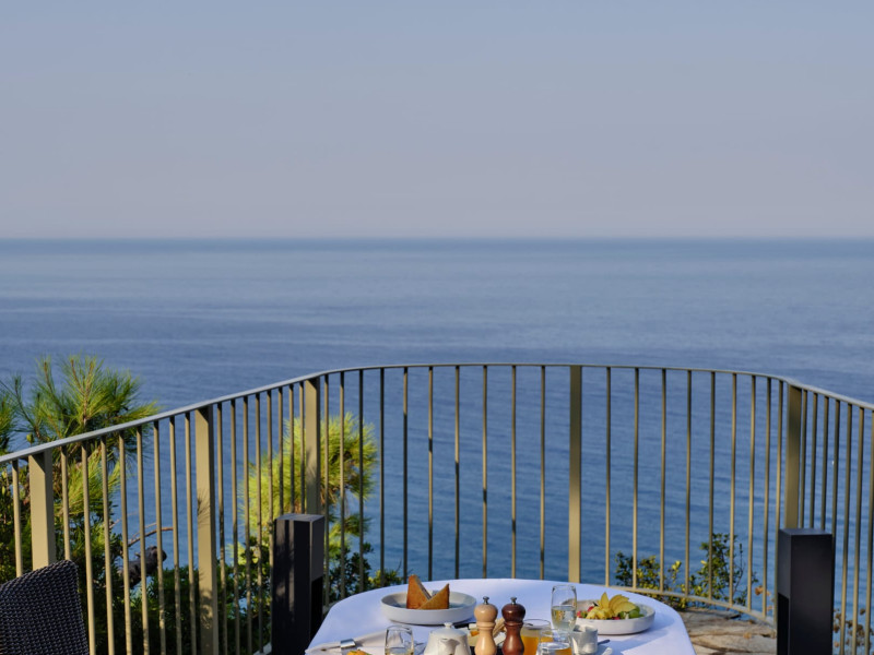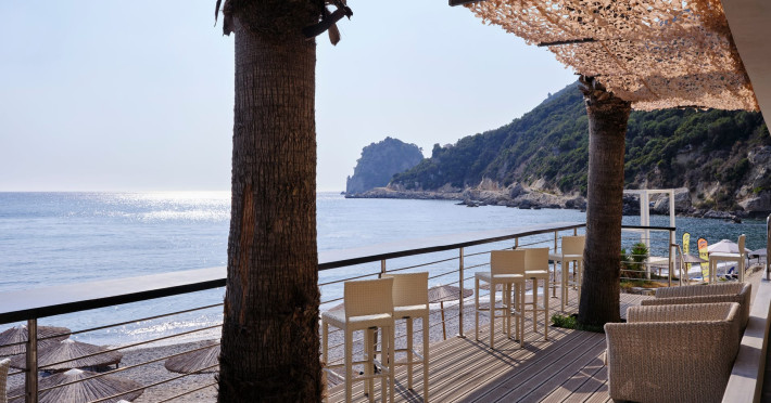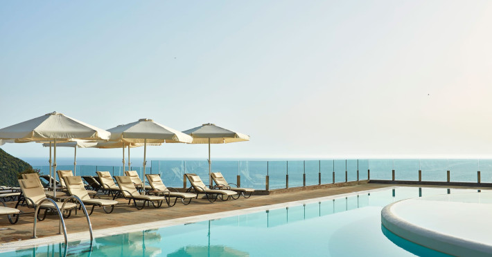 Overlooking the serene bay of western Corfu (Ermones Beach), about 25 minutes from Corfu airport and Corfu town and in very close proximity to Corfu’s Golf & Country Club, the island’s legendary resort and spa, comprises a series of intimate terraced buildings with double and deluxe rooms and suites, several with private pools. The resort spreads along 110 acres of cypress trees, eucalyptus trees and pine woods and cascades along breathtaking cliffs, offering spectacular views and dipping dramatically into the sparkling blue-turquoise Ionian Sea.