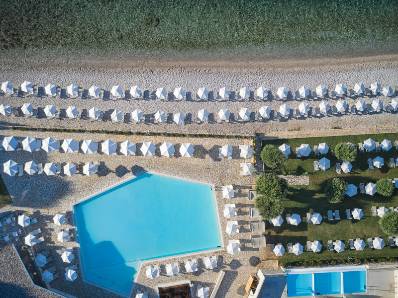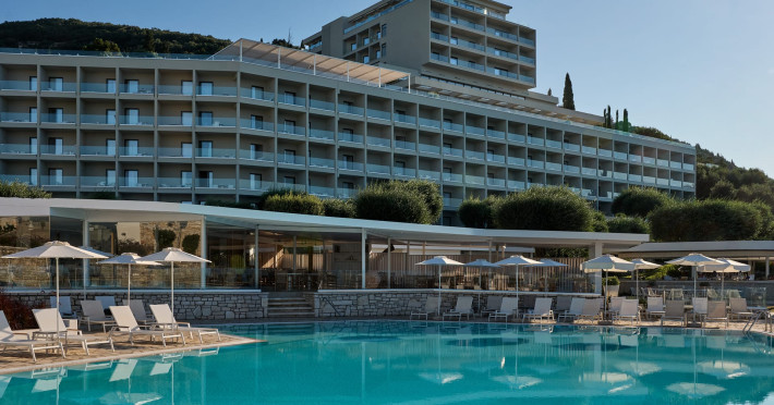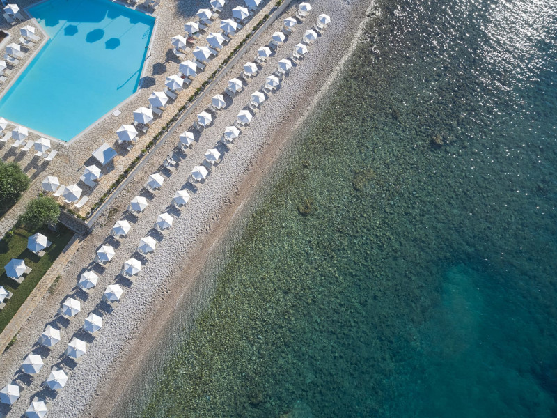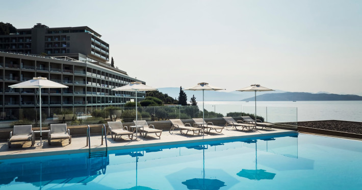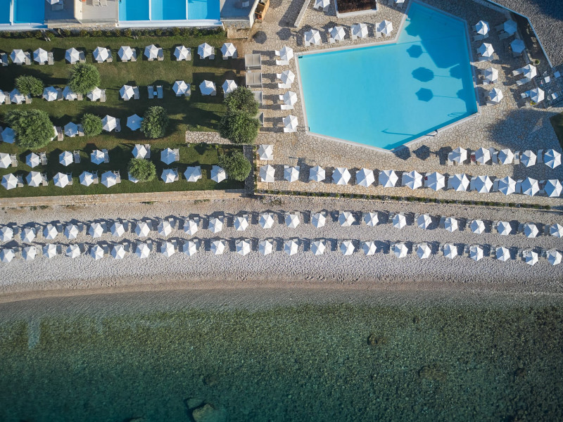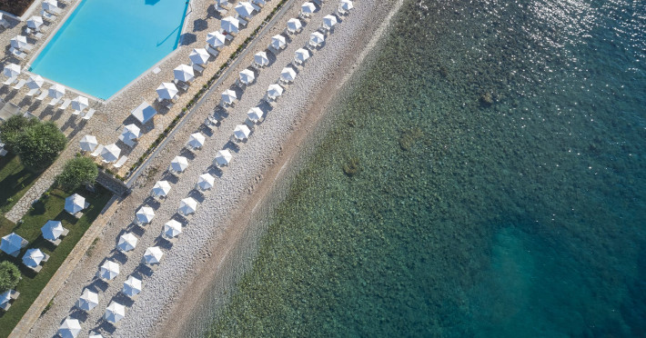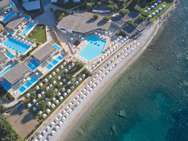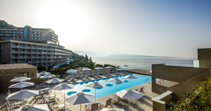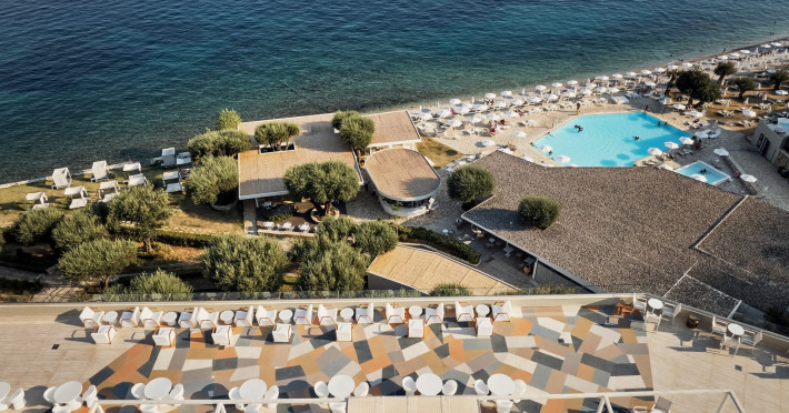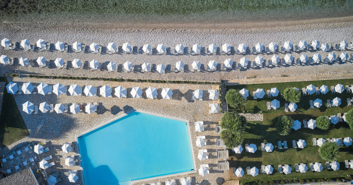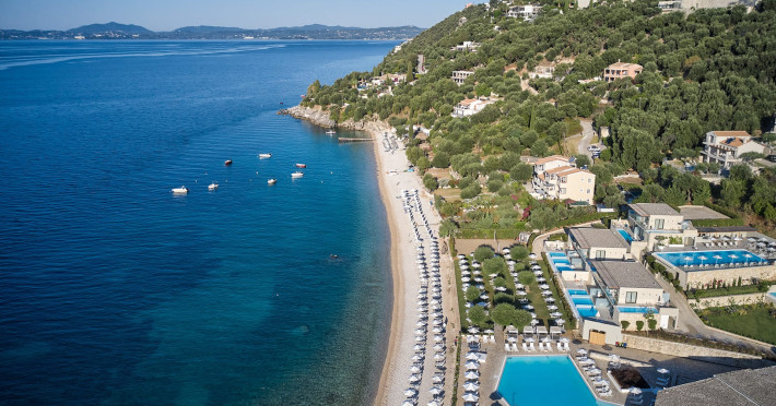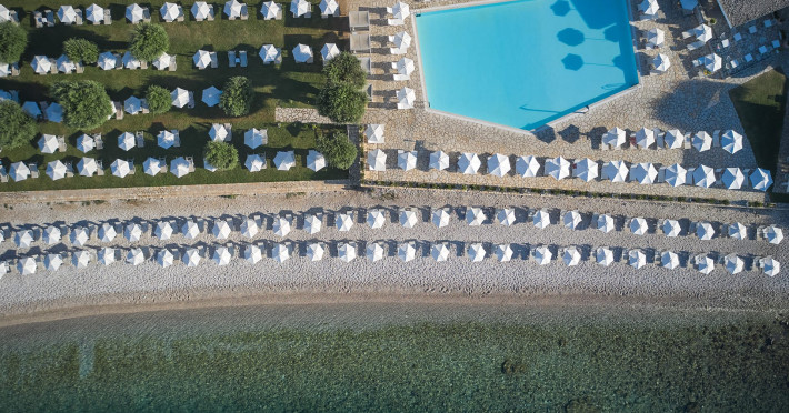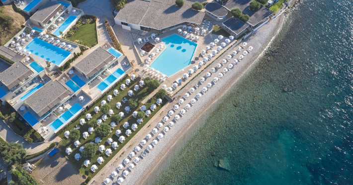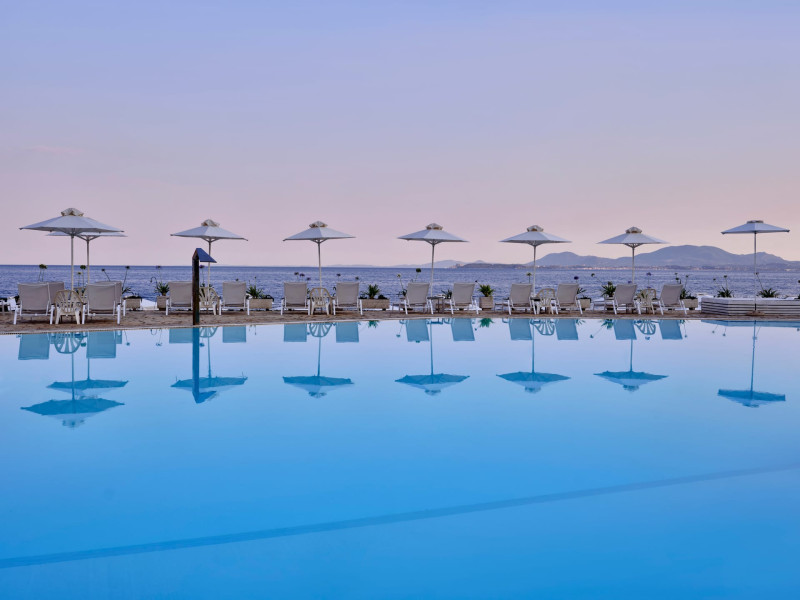 Located alongside the beach in a spectacular natural environment, the Atlantica Nissaki Beach stands a comfortable, spacious hotel on a superb position overlooking its own bay. The hotel is set on a long stretch of pebbly beach and is surrounded by olive groves. Its excellent facilities, cozy ambience and great location make it the ideal choice for the perfect beach holiday.