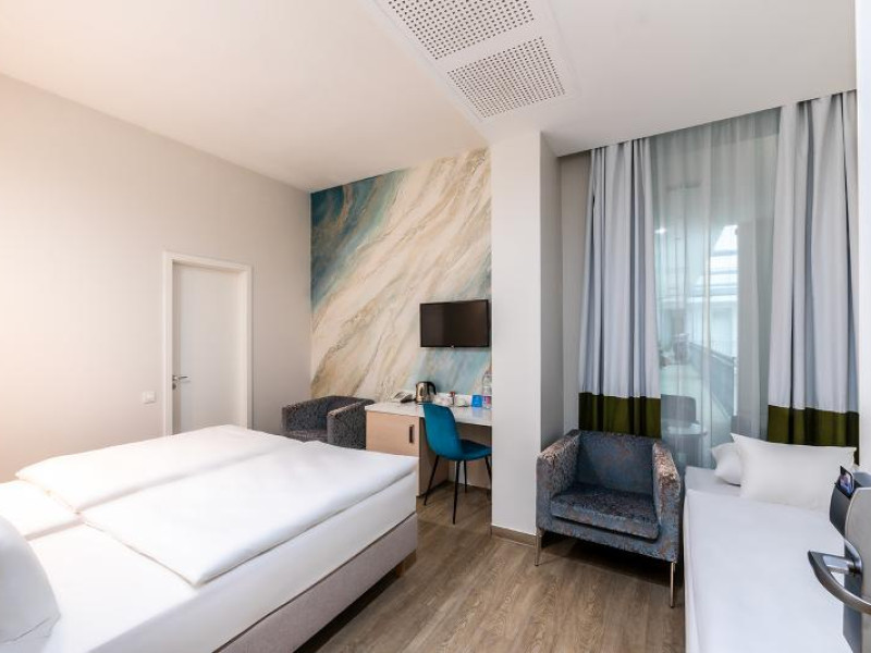 57 single rooms and 57 double rooms are located on 4 storeys and can be reached by lift. Guests are warmly welcomed by English- and German-speaking staff at the 24-hour reception desk in the lobby. Check-in/check-out service is available round the clock. Amenities include a baggage storage service, a safe and a cash machine. Wireless internet access is provided in public areas. The tour desk offers assistance with booking excursions. The hotel has a range of facilities for guests with disabilities. The hotel has wheelchair-accessible facilities. A fireplace creates a cosy atmosphere. There are a number of shops as well. Additional facilities include a TV room. Guests arriving by car can park their vehicles in the garage or in the car park. Further services and facilities include a babysitting service, a car hire service, medical assistance, a transfer service, room service, a laundry service, a coin-operated laundry and a hotel shuttle bus. A bicycle hire service provides all the necessary equipment for exploring the surrounding area. The business centre is on hand for guests business requirements and provides a fax machine.